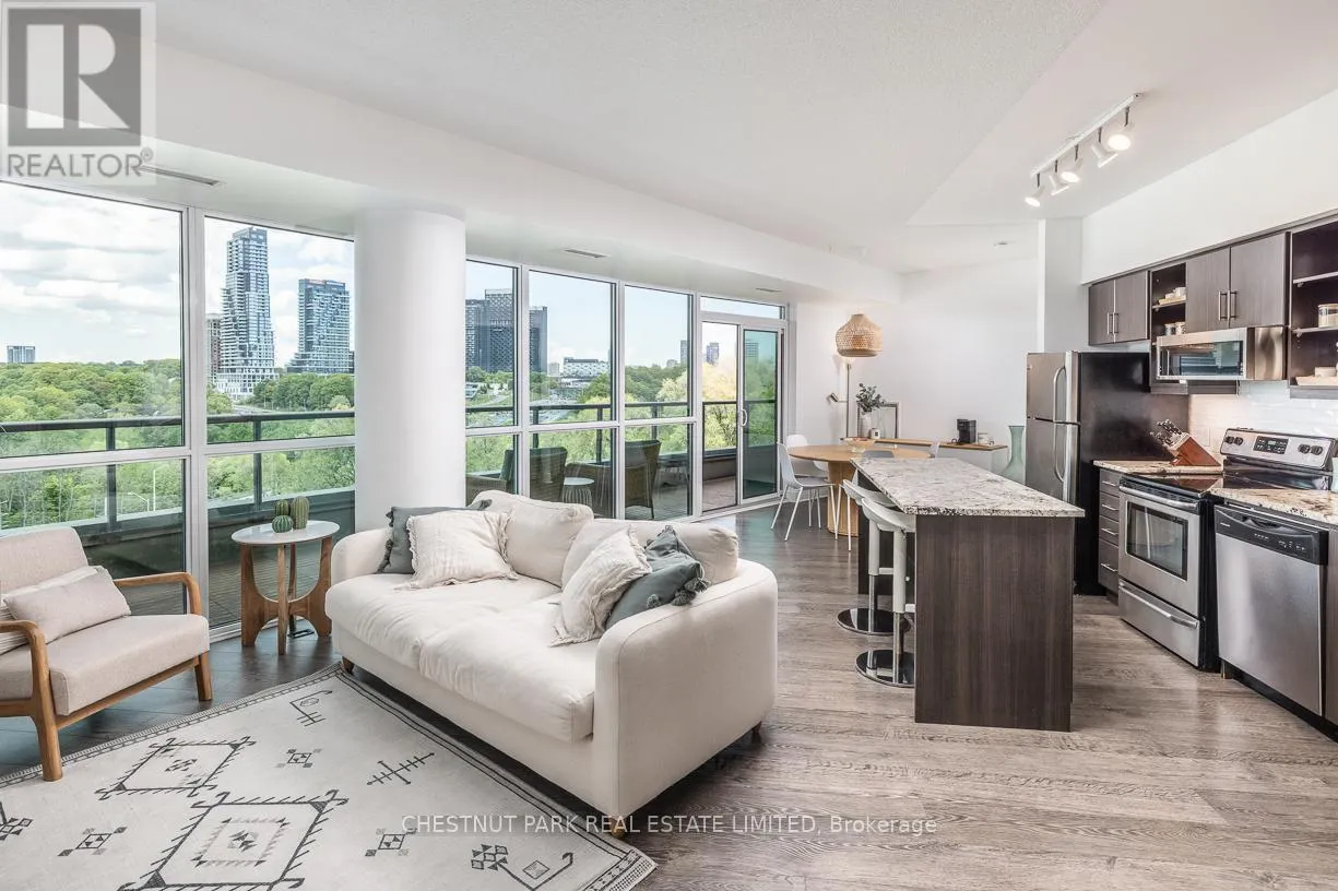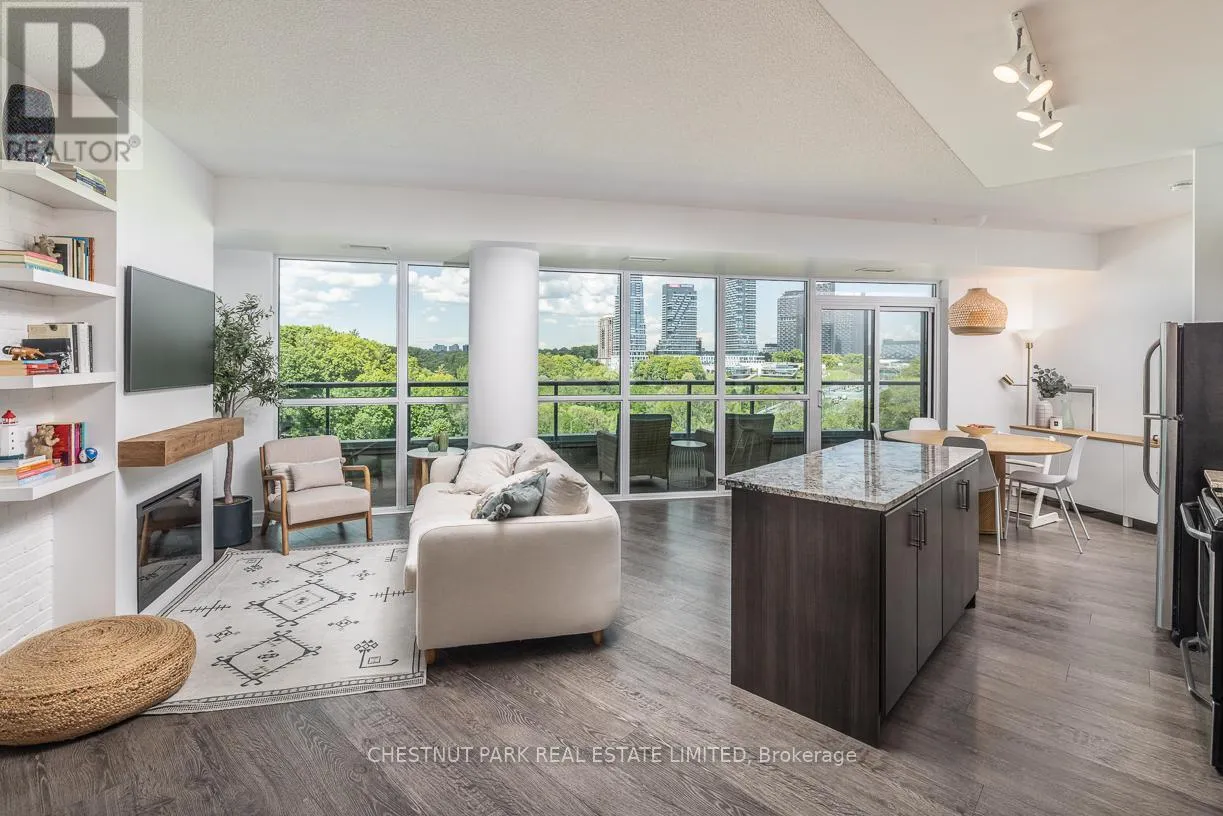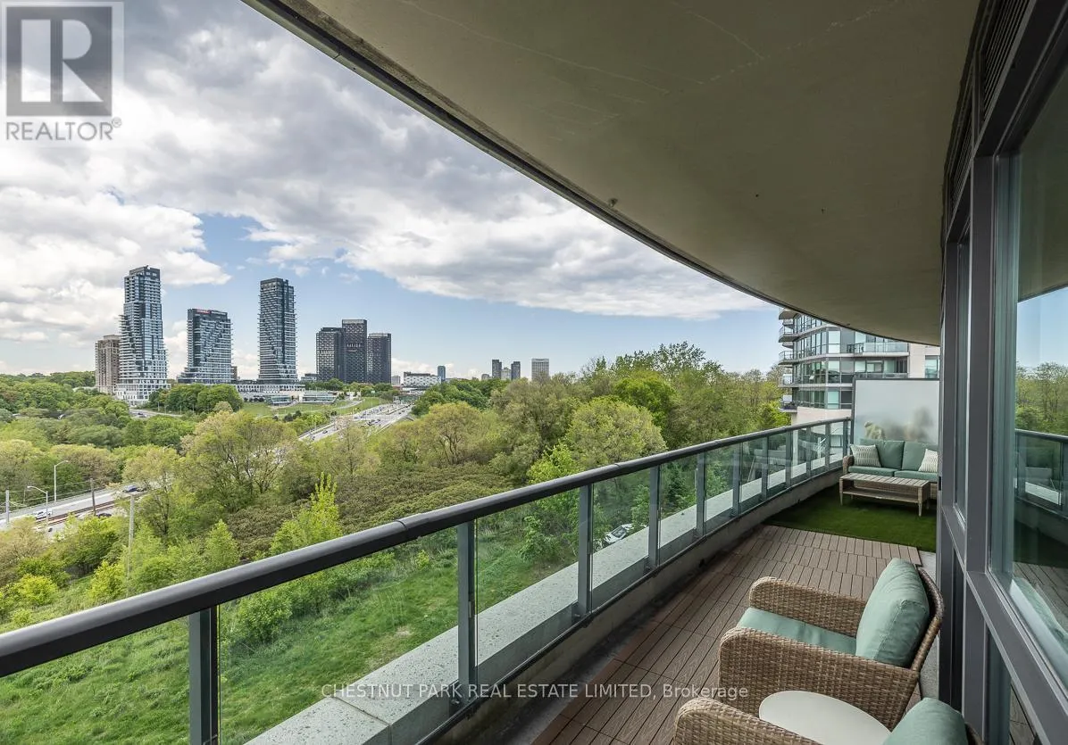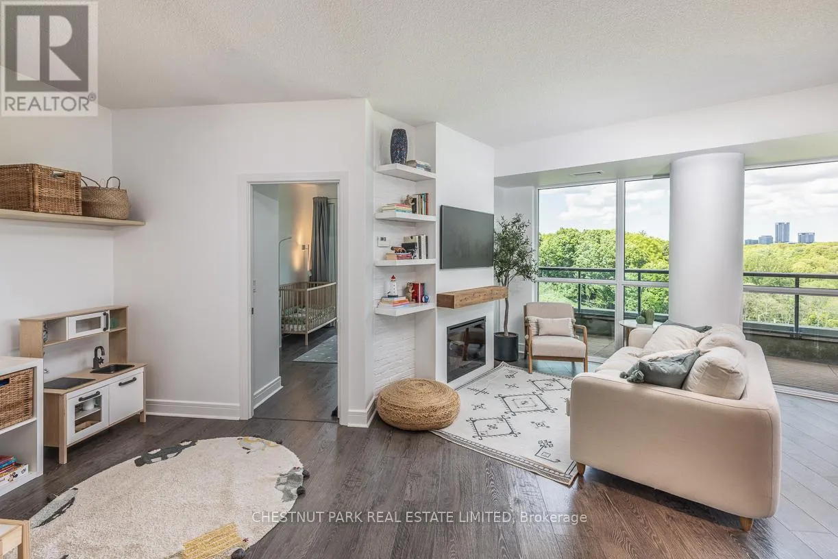 Brentcliffe Rd & Eglinton Ave East Experience Elevated Living in the Heart of Midtown Toronto. Step into sophistication with this beautifully appointed 2 bedroom + den suite, complete with 2 full bathrooms, premium custom upgrades including an electric fireplace, custom shelving, custom California Closets, custom kitchen backsplash and a sleek open-concept design that extends to an expansive wrap-around balcony with unobstructed views of Sunnybrook Park, perfect for entertaining or simply unwinding as the sun goes down at the end of the day. This suite includes two parking spots and two storage lockers, perfect for those looking to upsize from a smaller condo or downsize from a larger home. Enjoy luxury amenities such as 24- hour concierge, first-class fitness centre, indoor pool, sauna, guest suites, community BBQ and visitor parking, all within a modern building. Perfectly situated just moments from Leaside's vibrant shops and dining, with seamless access to the Eglinton LRT and DVP, this is ultimate urban living. (id:27476)