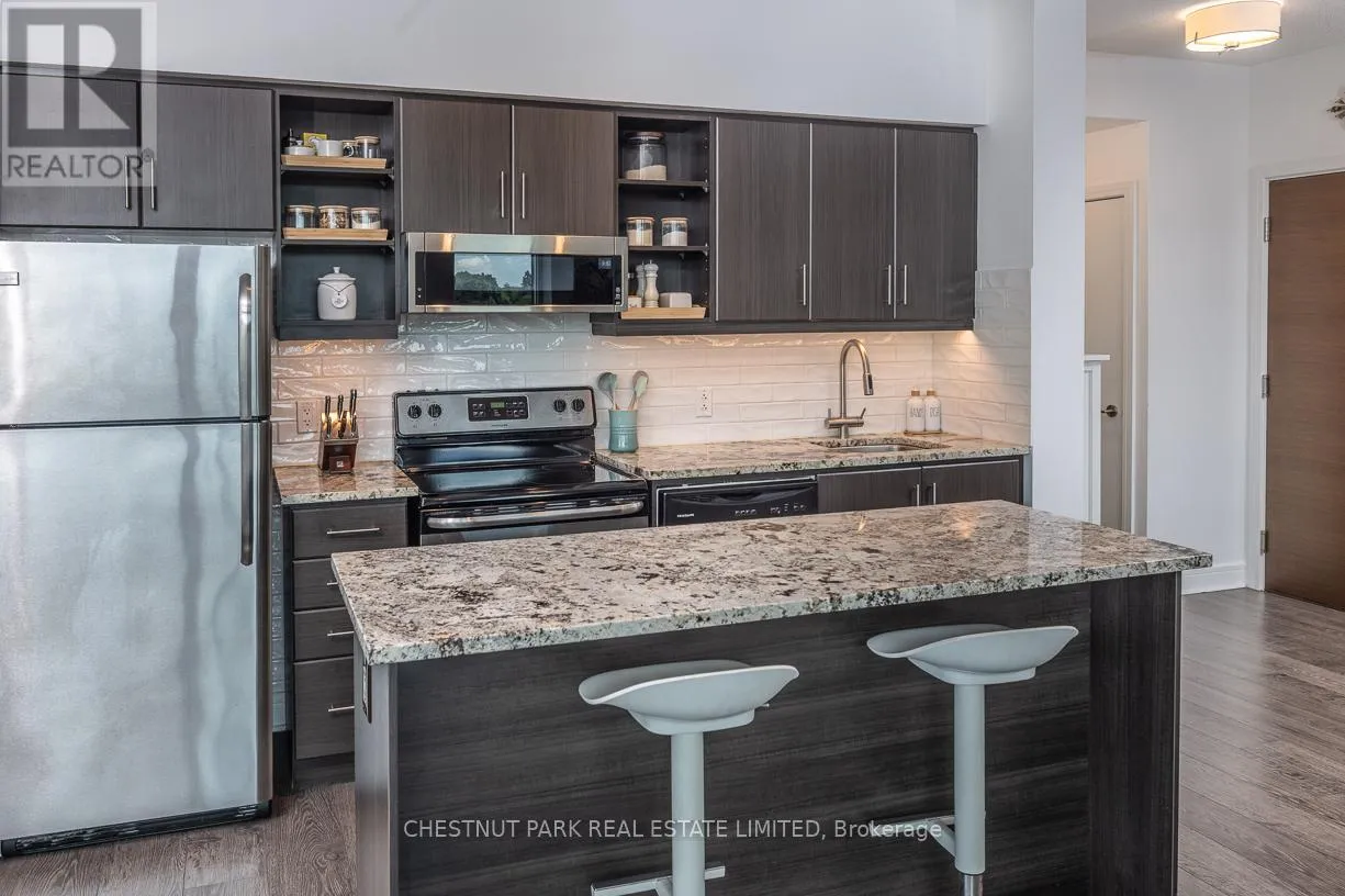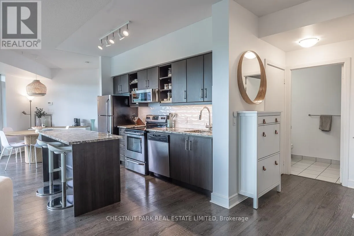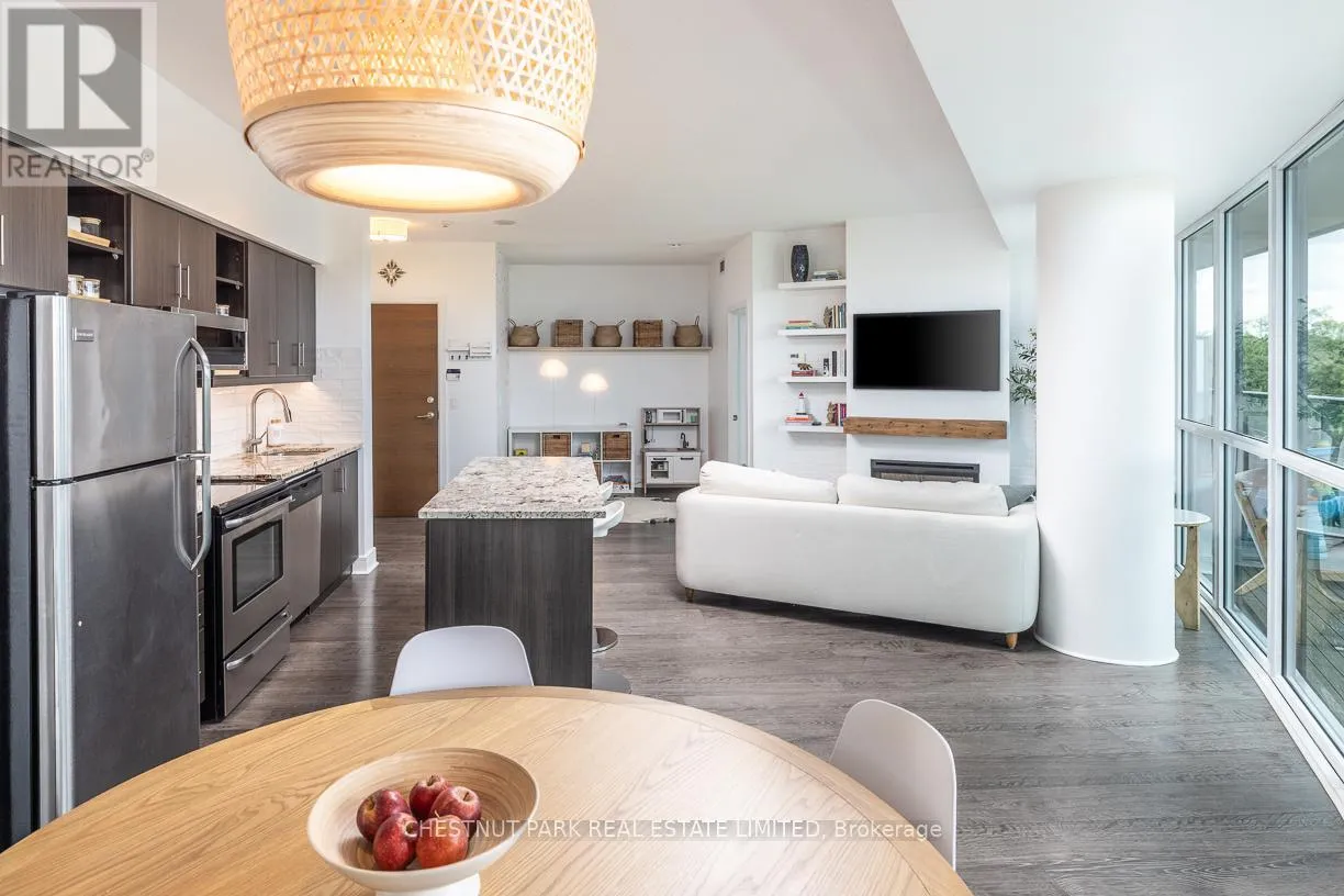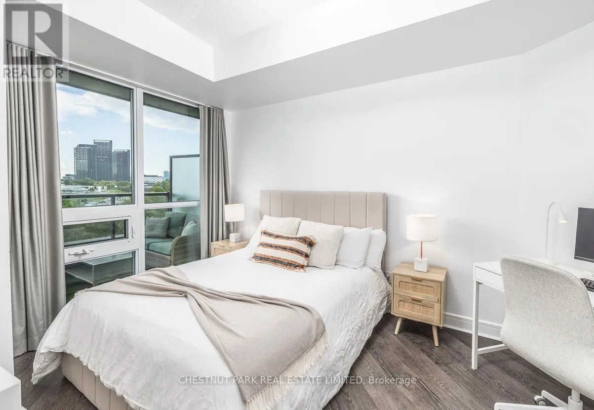 Brentcliffe Rd & Eglinton Ave East Experience Elevated Living in the Heart of Midtown Toronto. Step into sophistication with this beautifully appointed 2 bedroom + den suite, complete with 2 full bathrooms, premium custom upgrades including an electric fireplace, custom shelving, custom California Closets, custom kitchen backsplash and a sleek open-concept design that extends to an expansive wrap-around balcony with unobstructed views of Sunnybrook Park, perfect for entertaining or simply unwinding as the sun goes down at the end of the day. This suite includes two parking spots and two storage lockers, perfect for those looking to upsize from a smaller condo or downsize from a larger home. Enjoy luxury amenities such as 24- hour concierge, first-class fitness centre, indoor pool, sauna, guest suites, community BBQ and visitor parking, all within a modern building. Perfectly situated just moments from Leaside's vibrant shops and dining, with seamless access to the Eglinton LRT and DVP, this is ultimate urban living. (id:27476)