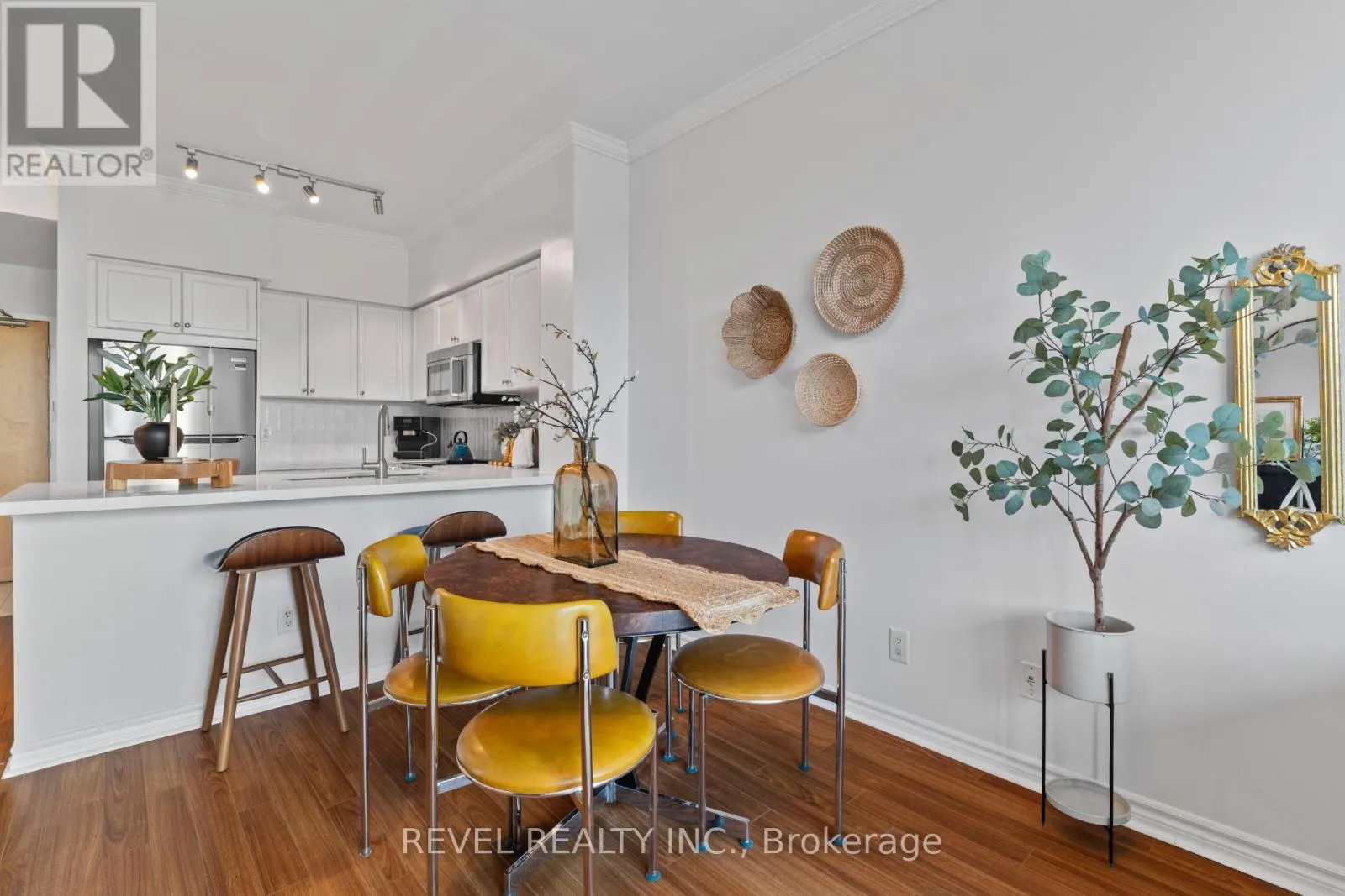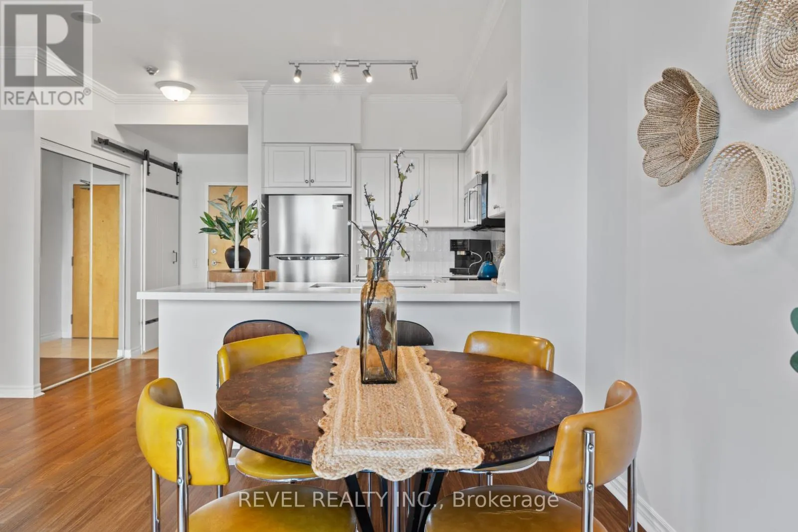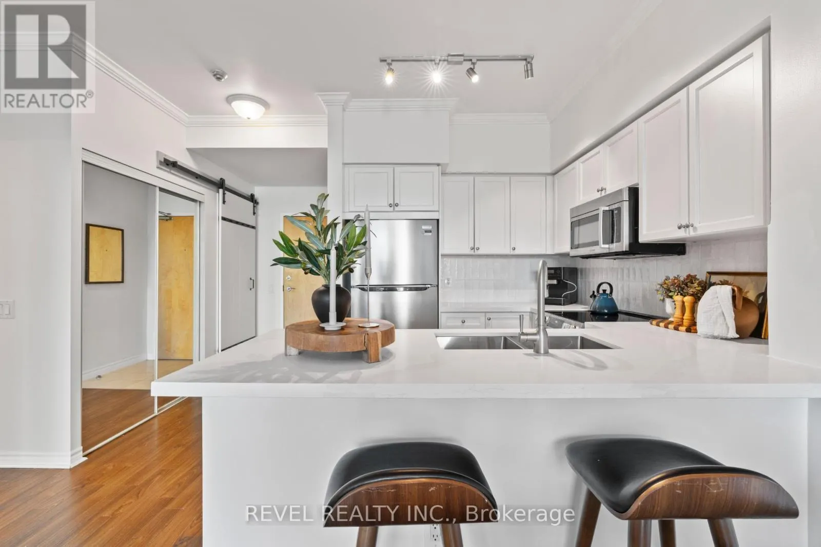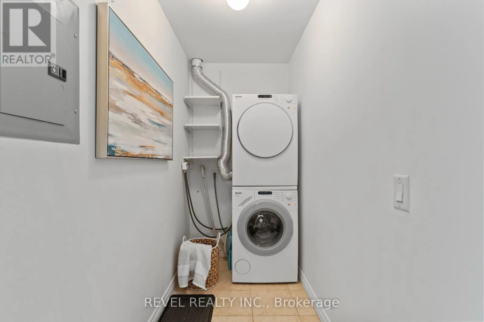 Cross Streets: Lakeshore/South Kingsway. ** Directions: West on Lakeshore, south on Marine Parade Dr. Welcome to #303-5 Marine Parade Drive, a rare opportunity to own in the highly sought-after Grenadier Landing at Humber Bay Shores in Mimico, where waterfront living meets urban convenience. This beautifully maintained lakefront condo offers stunning views of Lake Ontario and the Toronto skyline, creating a serene backdrop to everyday living. Featuring an open-concept layout, the suite boasts a full-size kitchen with a sit-up peninsula overlooking the combined living and dining area, perfect for both relaxing and entertaining. Expansive windows fill the space with natural light, while dual walkouts lead to a private balcony with peaceful views of both the lake and landscaped courtyard-an ideal setting to unwind and enjoy the sounds of nature. The spacious primary bedroom also features direct balcony access and lake views, enhancing the sense of retreat. Complete with in-suite laundry, this unit offers both comfort and functionality. Residents enjoy premium amenities including a gym, rooftop terrace, concierge service, and a beautifully maintained courtyard with a community BBQ area. Ideally located steps to the waterfront, scenic trails, parks, and public transit, with quick access to major highways and downtown Toronto, this is an exceptional lifestyle opportunity in a well-managed building that showcases true pride of ownership. **Utilities Included in Maintenance Fee** Only Pay Internet (id:27476)