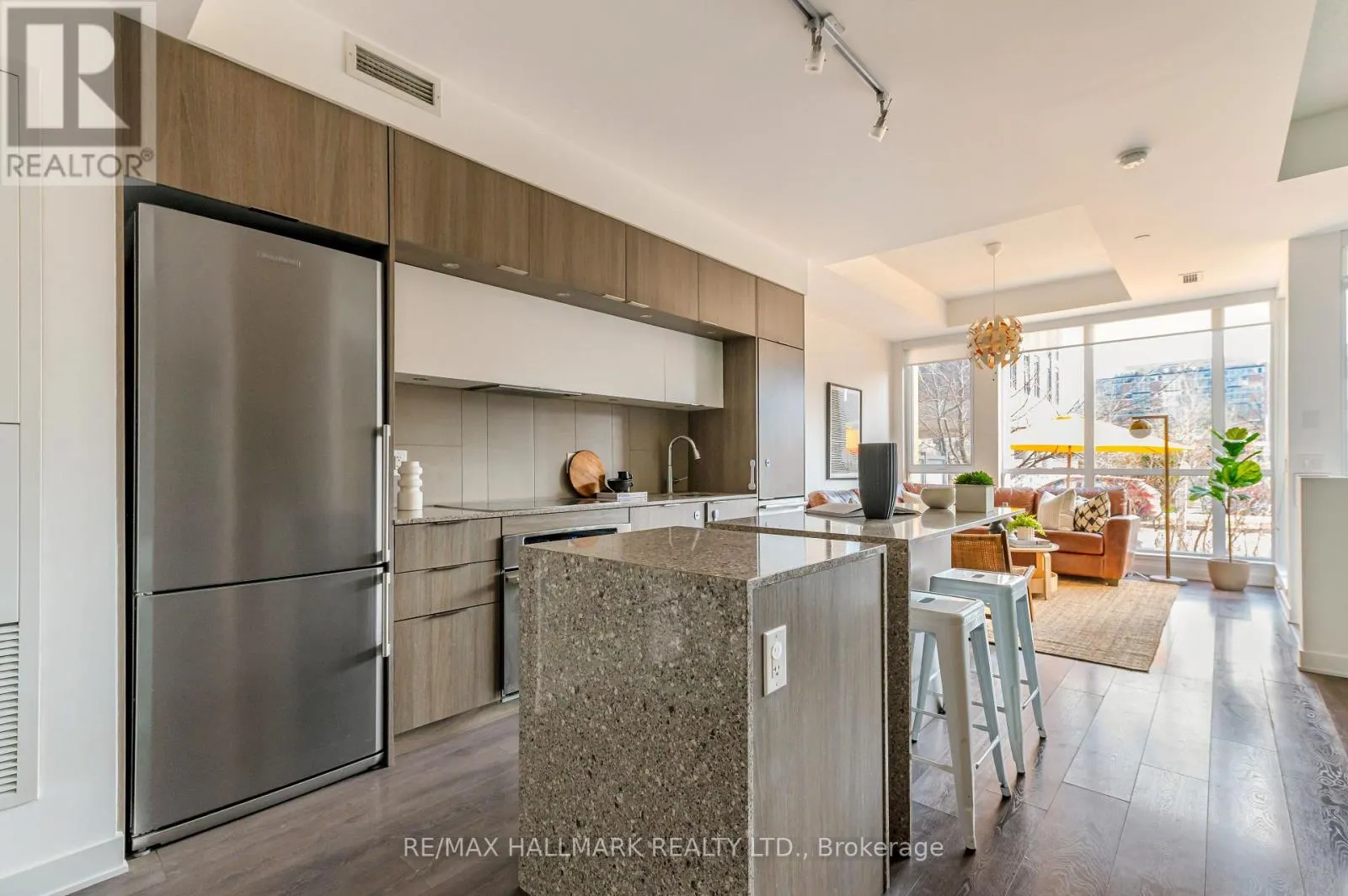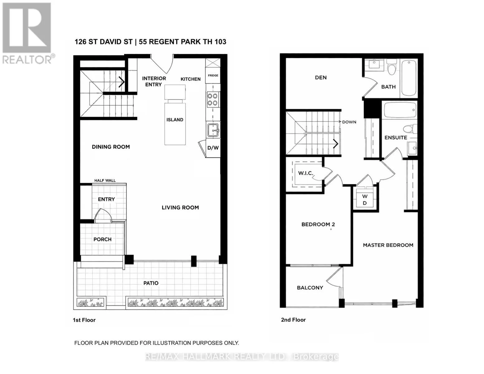 Cross Streets: Dundas St E & Sumach St. ** Directions: On St David St between Sumach St and Sackville St. Welcome to this thoughtfully designed condo townhouse offering approximately 1,226 sq ft of functional living space in the heart of vibrant Regent Park. Spanning two levels, this home combines comfort, practicality, and urban convenience in a layout that truly works for everyday living.The main level features a bright, open concept design with a well-proportioned living and dining area that connects seamlessly to a modern kitchen with a centre island, ideal for both daily use and entertaining. An additional under-stair storage area offers generous in-unit space, ideal for use as a pantry, seasonal storage, or everyday organization. Large windows fill the space with natural light, while the direct walkout to a private patio creates an easy indoor-outdoor flow, perfect for morning coffee or summer evenings. A welcoming porch and a defined foyer welcome you inside and provide a sense of separation and privacy from the main living space. Upstairs, the home offers two bedrooms and a spacious den, providing flexibility for a variety of needs. The primary bedroom is generously sized and includes its own ensuite bathroom, creating a comfortable retreat. The second bedroom is a comfortable space featuring also a walk-in closet. The den adds valuable additional space, ideal for work, study, or an extra sleeping area. Two full bathrooms and ensuite laundry complete the upper level, enhancing both convenience and functionality. Located in one of Toronto's most dynamic and family-friendly communities, this home is steps to parks, community centres, restaurants, cafes, transit, and everyday amenities, with easy access to the downtown core. Includes one parking space, one locker (separate from the in-unite storage). A well-balanced home offering space, flexibility, and a connected urban lifestyle. ***Physical address 126 St David St and legal address 103 - 55 Regent Park Blvd are one of the same*** (id:27476)