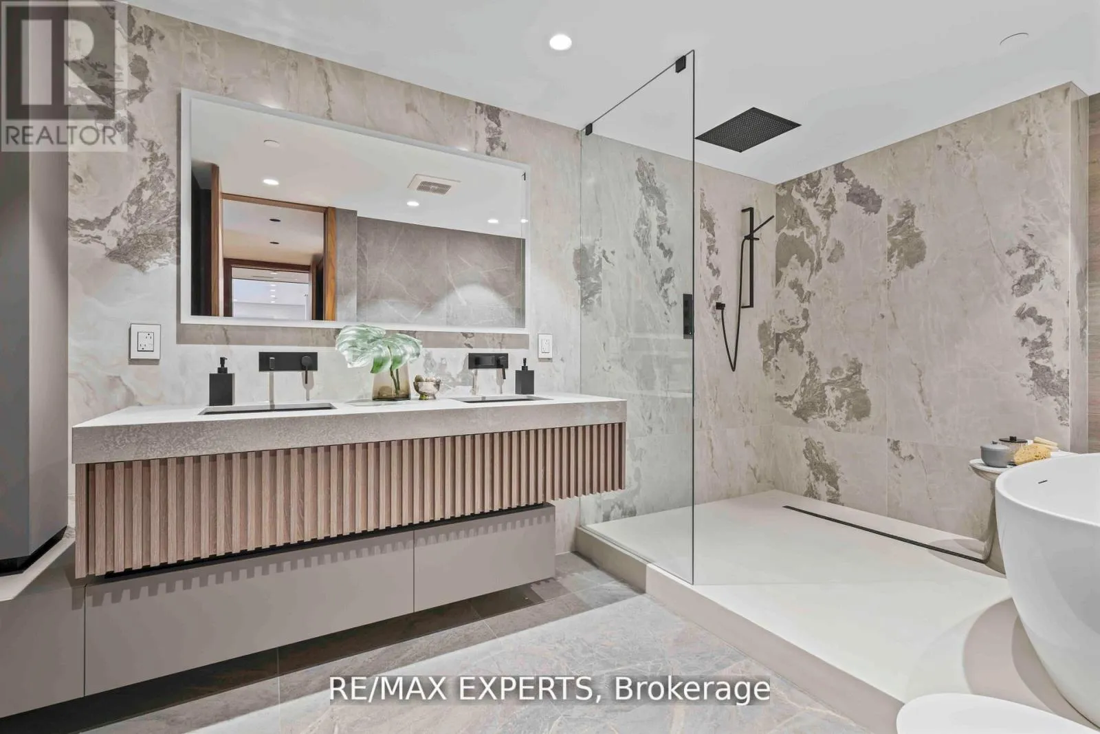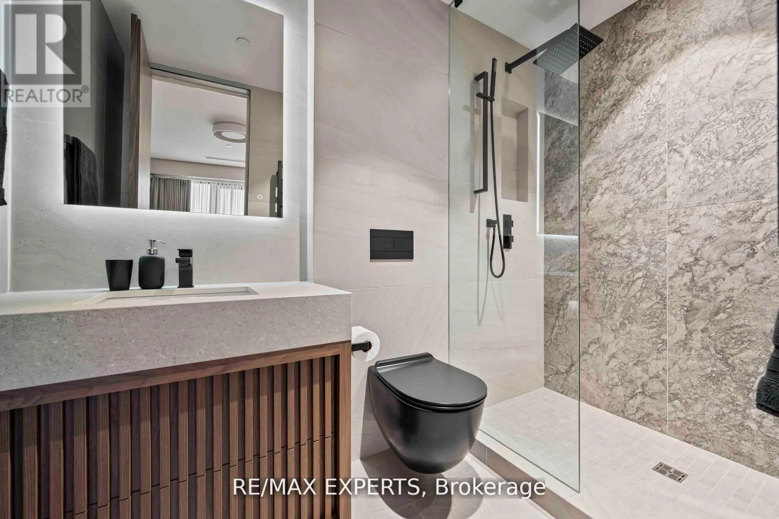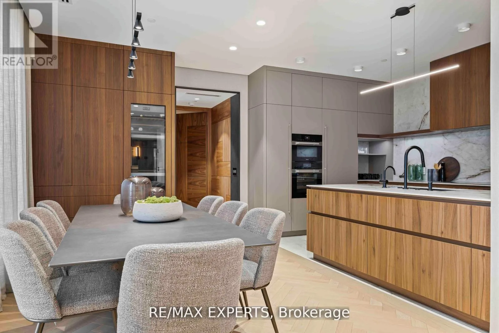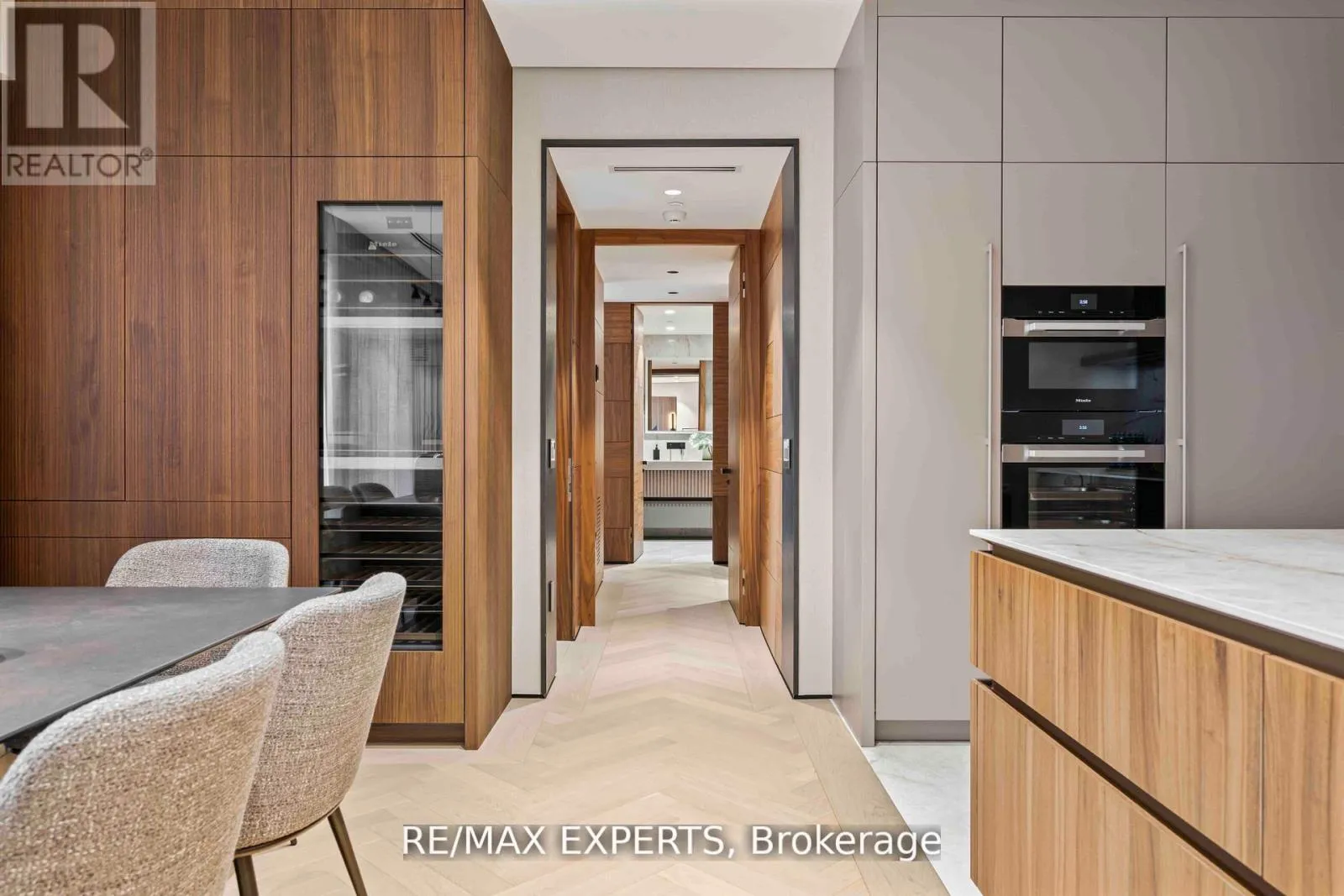 Avenue & Lawrence Boutique Luxury Living In One Of The Most Affluent Neighborhoods In Toronto! This extaordinarily designed 3 Bedroom + Den, 3 Bathroom Penthouse Suite is truly a show stopper! The property boasts a luxurious, modern design with standout features like a smart dimmable lighting system, motorized curtains, and a monitored smart security system with cameras and sensors, ensuring convenience and safety. The custom Leicht kitchen shines with high-end Gaggenau and Miele appliances, a Neolith Himalaya Crystal backsplash, and a water filtration system, while heated floors in all three bathrooms, the kitchen, and foyer elevate comfort. Custom 120 Sq ft dream walk-in closet. Spa-like ensuite featuring a free standing bath, rainshower and intelligent toilet. Custom wood paneling, engineered hardwood floors, and solid wood doors throughout add elegance, complemented by a primary bedroom with a Sangiacomo custom headboard, condensation-preventing heated floor cables and a walk out to balcony. The diningroom's convertible bar cabinet and terrace walk-out, plus pre-wired built-in speakers, make this home perfect for sophisticated living and entertaining. Additionally, the expansive 590-square-foot terrace, equipped with snow-melting heated floors by Warmly Yours, gas and water hookups, and levelled concrete tiles, offers an exceptional outdoor space for year-round enjoyment. No detail was overlooked or expense spared during design and renovation! You too can call this masterpiece your home! (id:27476)