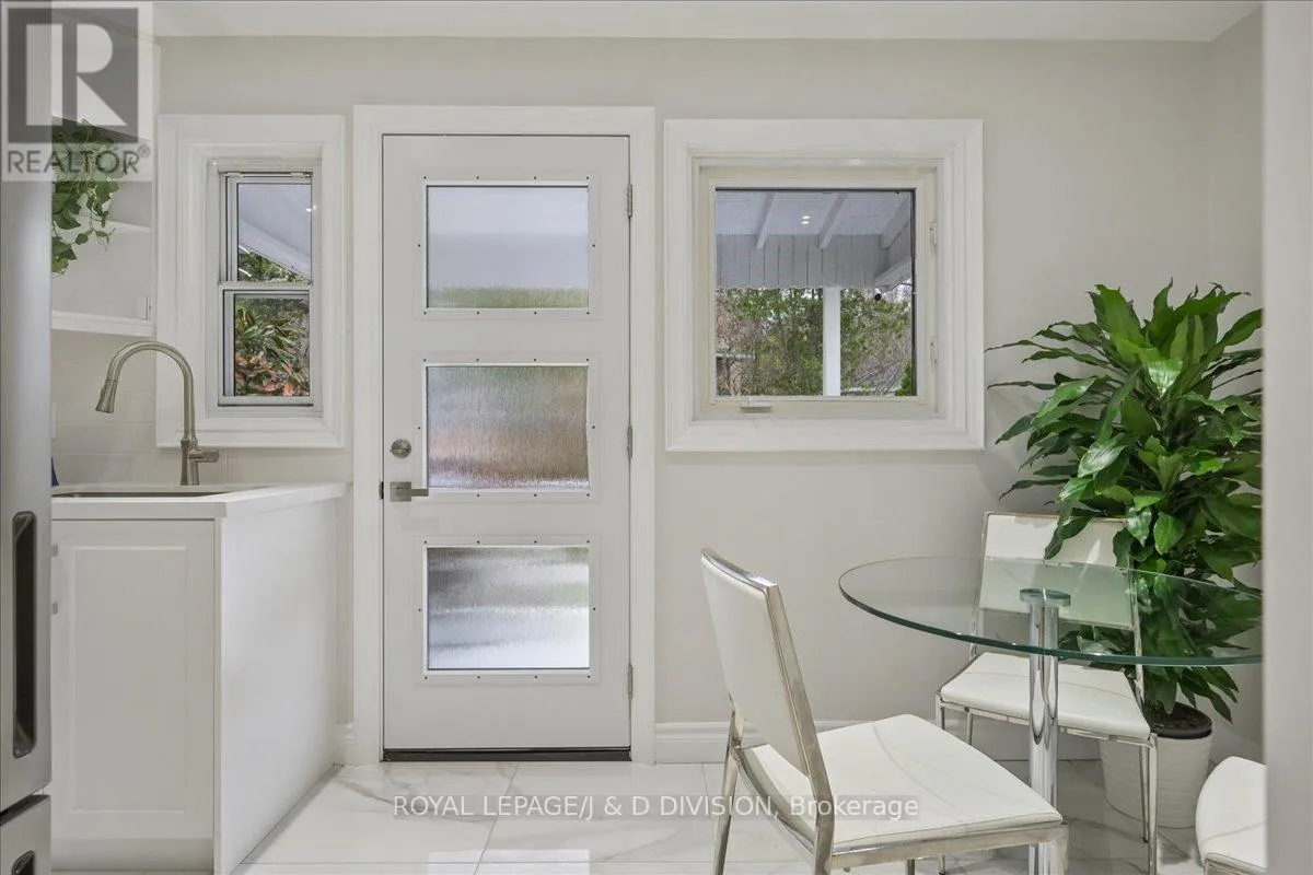 Cross Streets: Dundas St W & Jane St. ** Directions: south of Dundas St W, west of Jane Street. Bask in nature! This pretty renovated mid-century semi is surrounded with a beautiful leafy garden, perfect outdoor entertaining space with room for your family to grow. Enjoy the brand new kitchen that walks out to the garden. The interior has an airy open concept living room and dining room with a huge wall to wall west window. The entire interior was completely repainted with neutral tones. The upper floor features three bedrooms with hardwood flooring and a sleek new white and gray four piece washroom. Also new front porch and railing and other recent new air conditioning and a new roof. The lower level music room has above ground window, a new 2024 washroom on the lower level and a home gym. The kitchen walks out to covered porch. Enjoy BBQing, and the treed private garden. New fencing provides privacy. Mature gardens in front and backyard are filled with perennials. Low maintenance front yard is a perfect nature habitat. Large shed on private driveway and attached garden shed next to porch. Immaculate interior waiting for the next lucky family. Great neighbours and friendly community. Close to shopping, Loblaws, Summerhill Gardens and local restaurants. (id:27476)