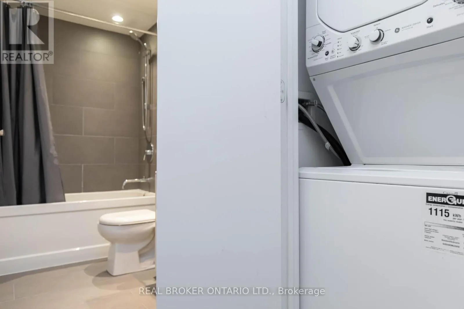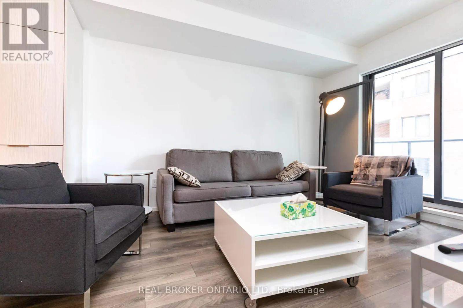 Dundas And Jarvis 1+1 (Large) furnished suite at Pace Condos, offering a spacious and highly functional layout in the heart of downtown. The generous den is thoughtfully designed and can easily be used as a second bedroom, providing exceptional flexibility. Featuring granite countertops, integrated appliances, and sleek laminate flooring throughout, the suite is complemented by floor-to-ceiling windows and 9 ft ceilings that opens the space. The open-concept design flows seamlessly to a private balcony, while ensuite laundry adds everyday convenience. Perfectly located just minutes to Toronto Metropolitan University and steps to the Financial District, CF Toronto Eaton Centre, and Dundas subway station. With a 24-hour streetcar at your doorstep and unbeatable walkability, this is elevated urban living at its finest. (id:27476)