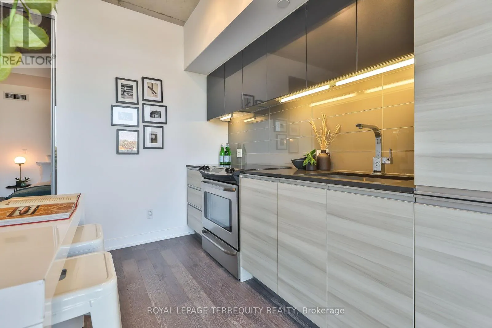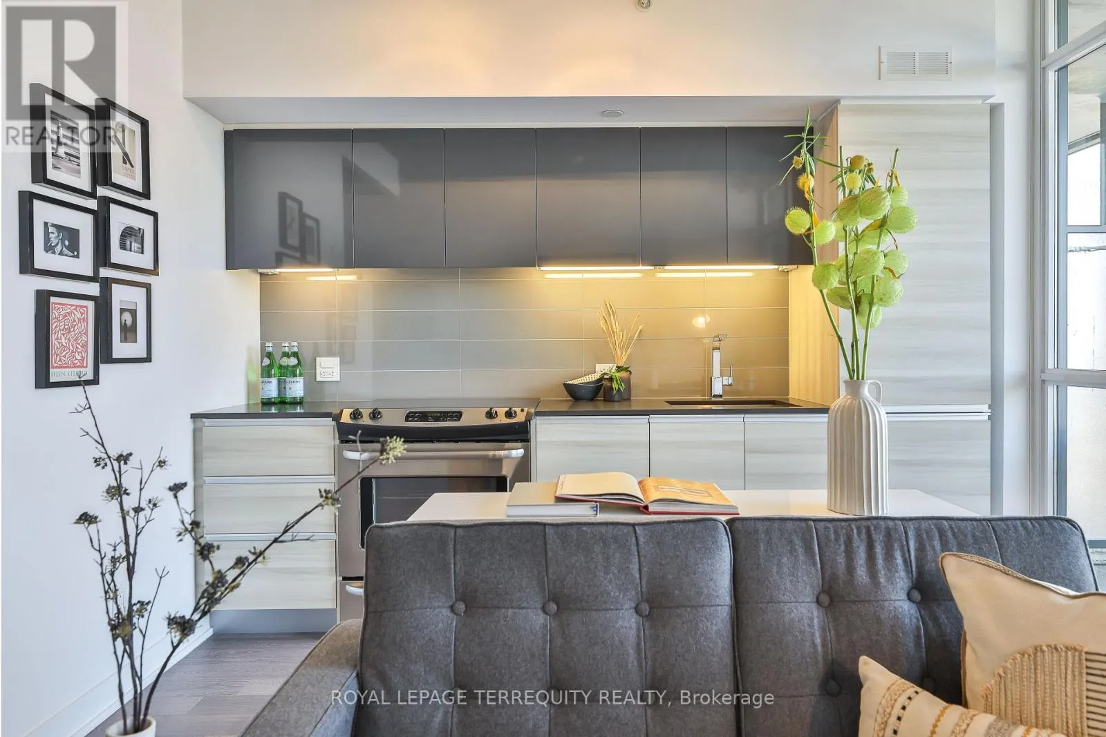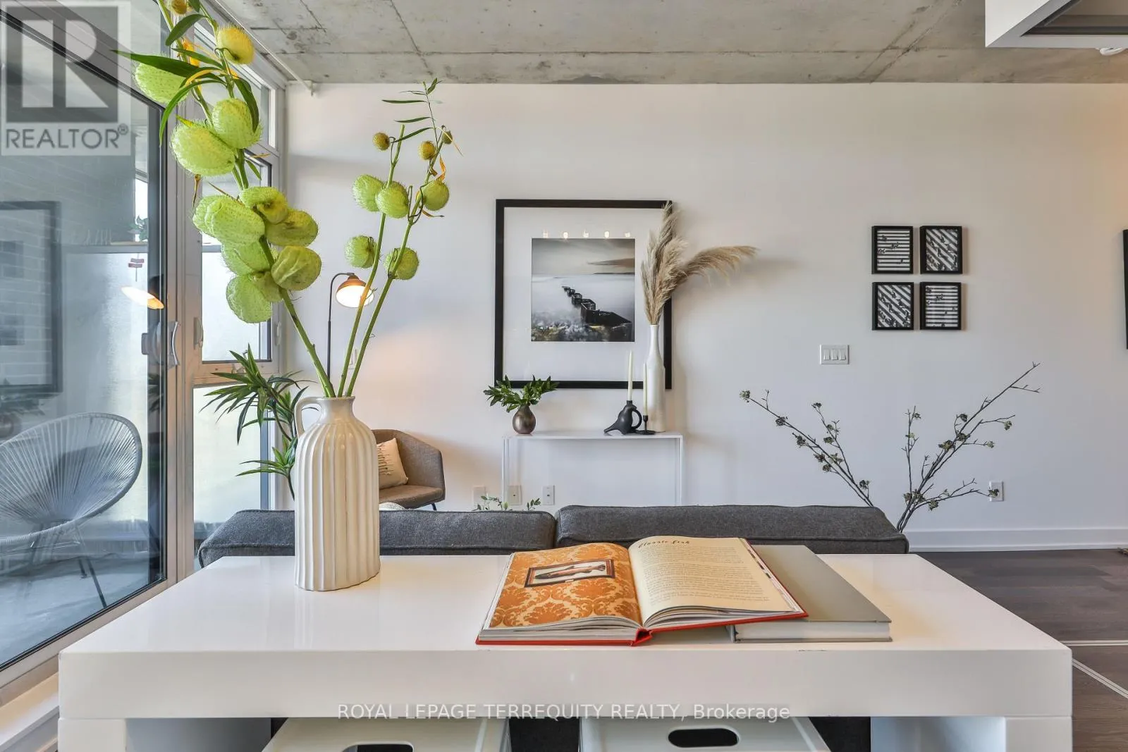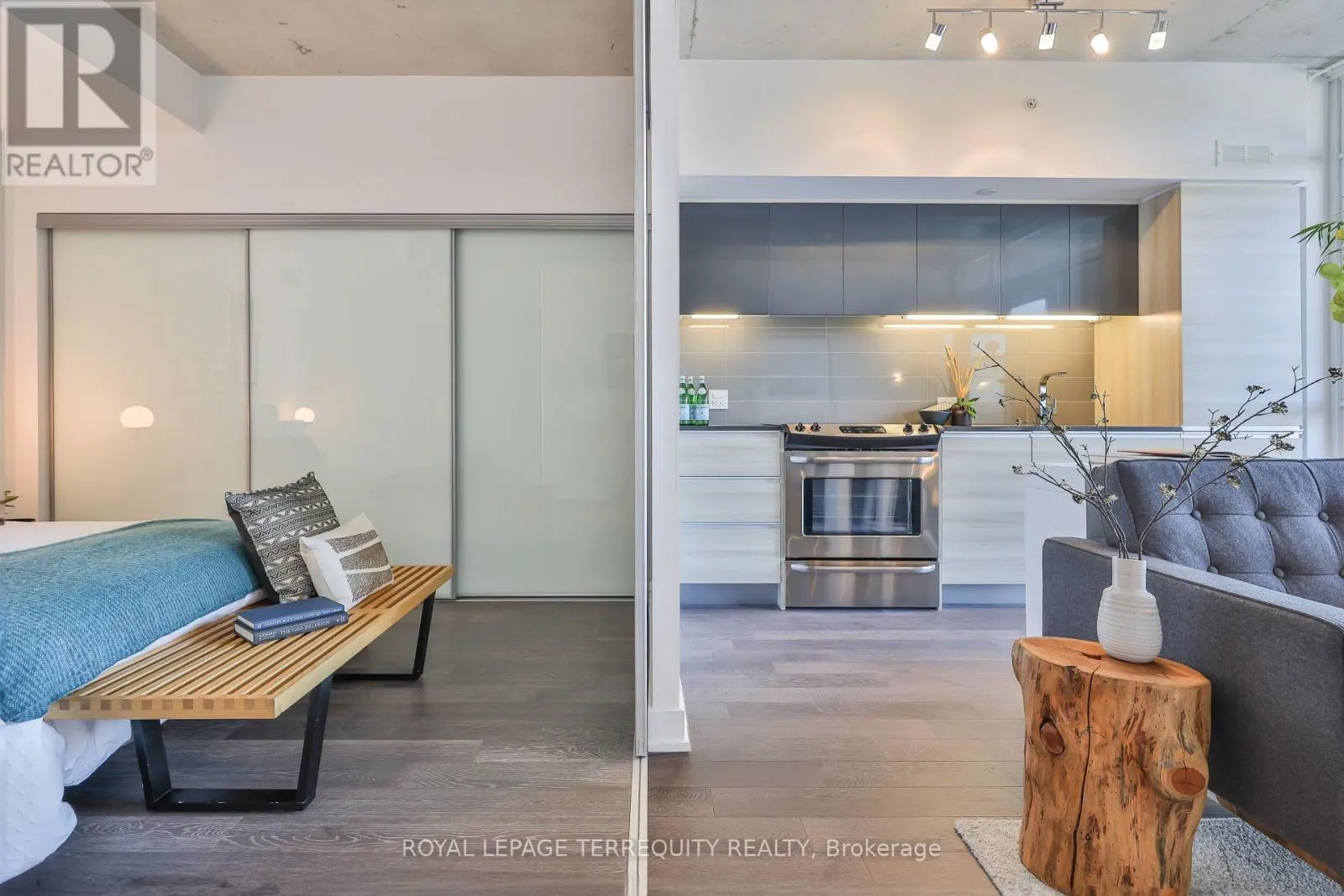 Cross Streets: Carlaw Ave & Dundas St E. ** Directions: S of Carlaw Ave. Amazing Opportunity & Value @ The Carlaw, a small, boutique, 12 story, 311 unit building in the heart of Leslieville! Bright, airy, and impeccably styled loft, this turn-key suite delivers smart design with a cool, confident edge! Ideal for the first time buyer who wants to capitalize on appreciation on buying at the right time, or perfect pied-a-terre for someone who needs a pad in the city. This is your chance to get into the market with confidence-own a space that looks good, lives well, and positions you for future growth. Small but mighty, the layout is clean and intentional - a contemporary integrated kitchen, private bedroom, exposed concrete ceilings, crisp white walls, and floor-to-ceiling windows that flood the space with natural light. Add outdoor space and clever storage, and you have a home that looks good, lives well, and feels easy. Maintenance fees include all utilities except Hydro! Enjoy top-tier amenities including a full gym, guest suites, 24-hour concierge, and a rooftop terrace with communal BBQs and lounge space made for al fresco nights. Transit is seamless with streetcar access at your doorstep and a quick ride downtown, while easy connections to the Gardiner and DVP make getting in and out of the city effortless. Set in prime Leslieville, a former industrial pocket turned East End cultural hotspot, you're surrounded by the city's best everyday rituals. Morning coffee at Te Aro, brunch at Maha's or Lady Marmalade, dinner at Descendant Pizza or MARU Japanese Bistro, and rooftop drinks at The Broadview Hotel - all just steps from your door. Ideal for first-time buyers, pied-a-terre seekers, or savvy investors. First time buyers save on the LTT! Speak to your mortgage specialist for your own personal financing plan. Carries at $2240.53 w/ 20% down, @3.65% rate, 30 yr amortization maintenance and taxes included - rates are subject to change, speak to your mortgage specialist STOP- RENTING & START PACKING! (id:27476)