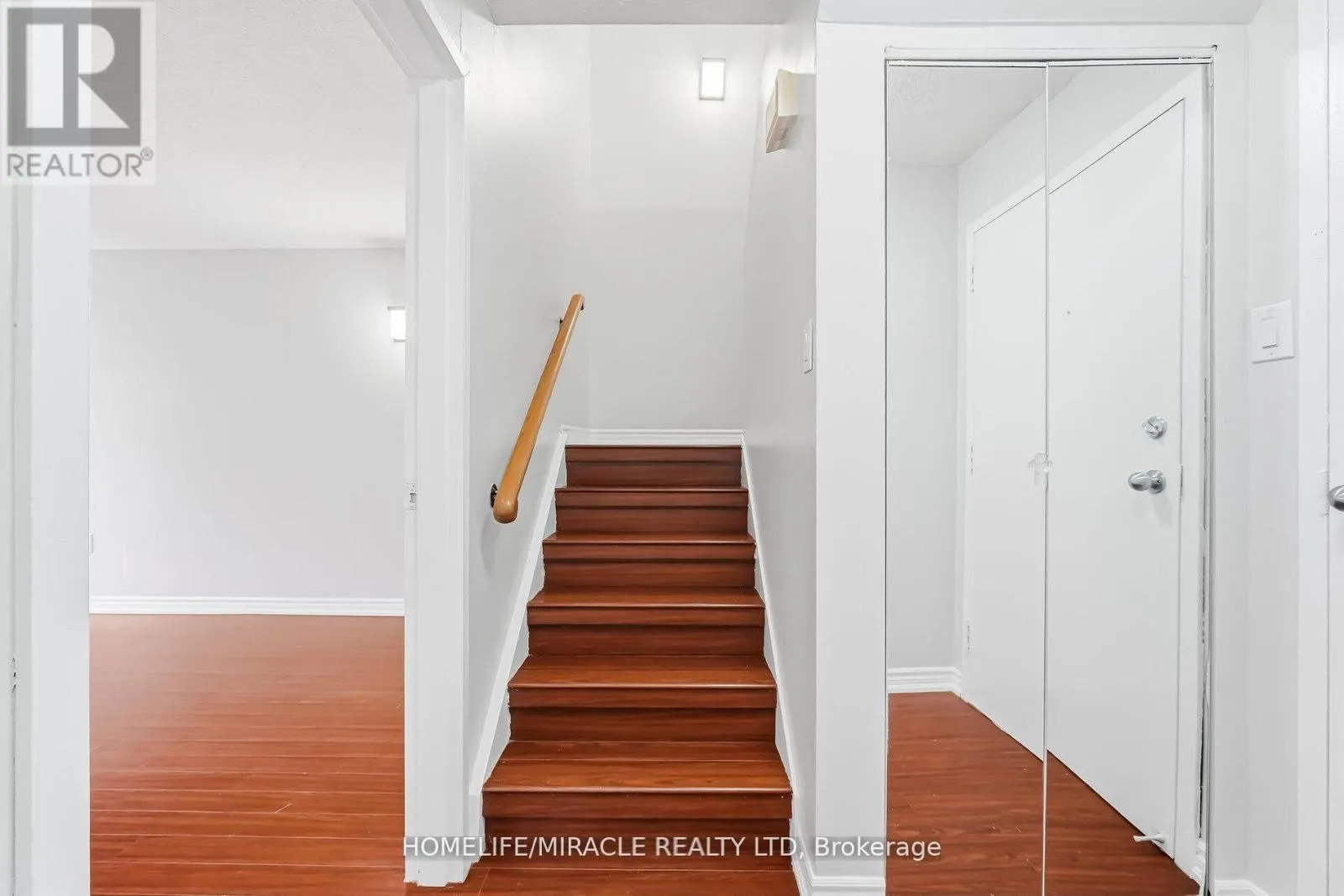 Morningside & Lawrence VILLAS OF MORNINGSIDE. Featuring 2 storey stacked townhouse have been beautifully upgraded using the quality finishings throughout offering bright and elegant space for living and entertaining, with 2 spacious bedrooms, and a perfect little den with door to use for an office/storage/pet center/etc.1 upgraded washroom with new bathtub, toilet and flooring. The townhouse itself boasts spacious living areas sun filled with natural light, and a large private balcony for outdoor relaxation. Corner Townhome with Extra Privacy. This unit is close to everything you could ask for in this Westhill vibrant community. GO train 5 mins away! Shops, great schools, colleges, parks, Heron Park Community Centre (pool etc.), transit, place of worship and so much more! One parking spot included underground. All common areas currently undergoing renovations including hallways bringing beautifully refreshed, modern results. MUST SEE (id:27476)