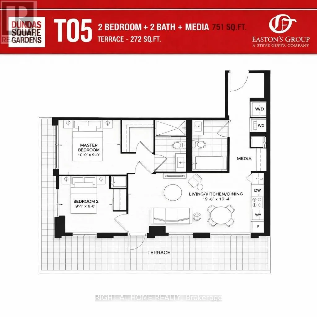 Dundas/Jarvis Spectacular corner unit at Dundas Square Gardens offering 2 bedrooms plus media and 2 full baths, 1 Locker, Located on a high floor, this bright and functional 751 sq ft suite is complemented by a rare 272 sq ft private terrace, ideal for outdoor living and entertaining. Prime downtown location within walking distance to Toronto Metropolitan University (Ryerson), George Brown College, Eaton Centre, Yonge-Dundas Square, and subway access, with easy access to TTC, public transit, and shopping. Enjoy exceptional building amenities including a rooftop sky lounge, outdoor gardens, 24/7 concierge, elegant lobby with party room and bar, fully equipped gym, and swimming pool. A great place to call home; students are welcome. (id:27476)