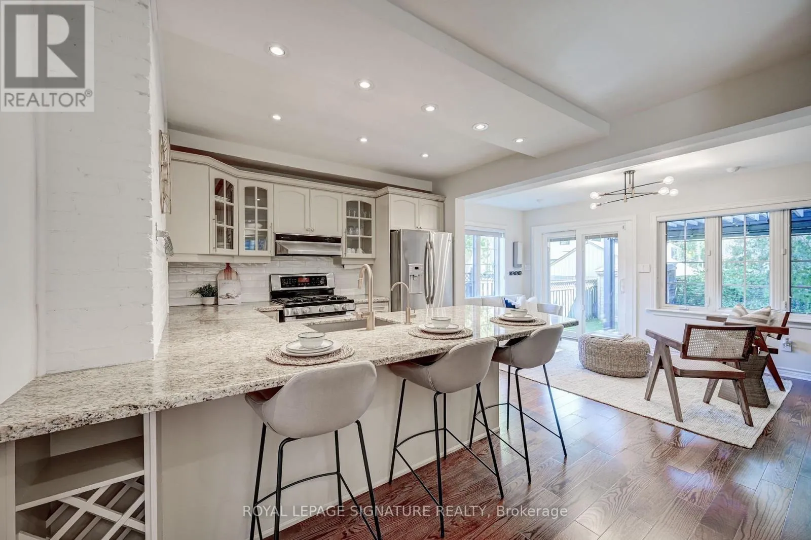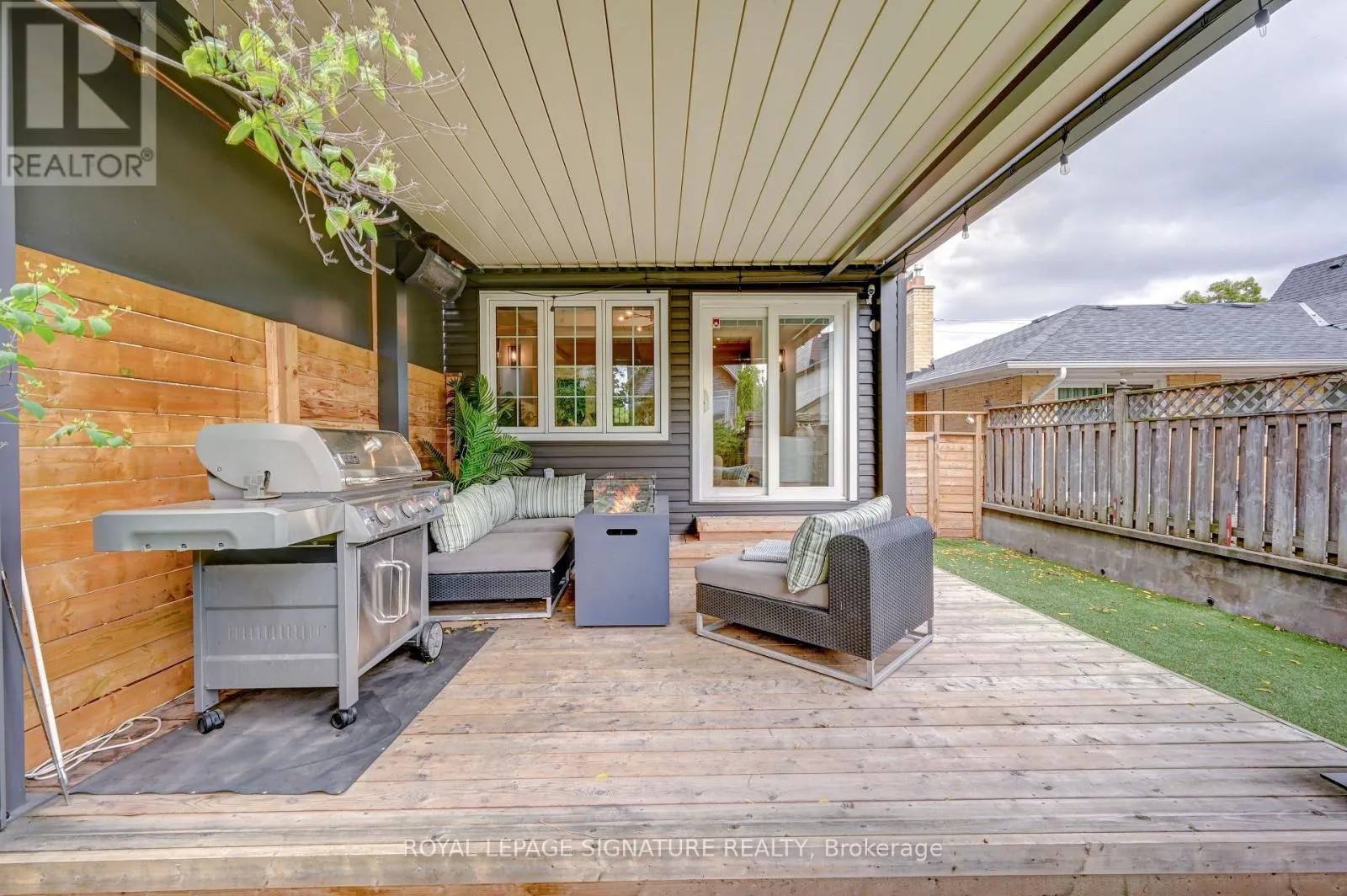 Prince Edward and Dundas 61 Government is the perfect sized family home located right in The Kingsway. Located steps from the top rated Lambton Kingsway Public School yet Located On A Low Traffic Part Of Government. The home offers 3 Bedrooms, Newly Renovated Bathrooms including an Ensuite in the Primary Bedroom. Spacious, Family-Oriented Open Concept Floor Plan. Separate Living/Dining Room with gas fireplace. Kitchen/Family Room Features New Hardwood Floors And Large Kitchen Island That Seats 5. New All Season Heated Backyard Deck w/turf-Low maintenance! The backyard porch includes a privacy screen, space heater, and louvered water proof roof, that can be adjusted to let the sun shine in! Freshly painted and cleaned. 3 outdoor sheds for storage, plus under porch storage. Plenty of parking space. Outdoor Furniture/BBQ/Fire Table/Space Heater Included in lease, as well as family room TV and console. Private Covered Front Porch with lots of seating room. Bonus Kids Space In Basement. Longer Lease avail. (id:27476)