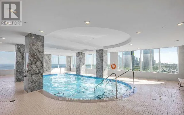 Lakeshore Blvd W & Windermere Stunning & Spectacular Lakeview South Facing Oversized 1 + 1 Bedroom, 2 Bath Unit. Luxury Enhanced With Upgraded High End Fixtures Thru-Out, Large Den could be used as 2nd Bedroom. Walkout To Oversized Sun-Filled Balcony Overlooking Unobstructed Stunning Cityscape Skyline And Full South Panoramic View Of Lake Ontario. Enjoy Unobstructed Panoramic Beauty on your Private Balcony. Suite Includes Transitionally Upgraded Kitchen Cabinets W/Chic Gold Handles, Custom Bianco Drift Counters, Stainless Appliances & Pot Lights Throughout. Porcelain Bathroom Tiles & Quartz Countertops, Glass Shower And Tons Of Natural Light. 10,000 Sq.Ft. Of Indoor Amenities +18,000 Sq.Ft. Of Outdoor Amenities (State Of The Art). Constructed By Award Winning Builder. Highly sought after HIGH PARK/ SWANSEA Neighborhood. Steps to the lake, Mins to all Hi-ways, Downtown, Airport, Walking/BikeTrails, Parks, & TTC at your doorstep. Close To Subway, Transit, High Park, Shops At Roncy Village & Marine Parade, Humber Bay Shores Park! Waterfront Living its Best! (id:27476)