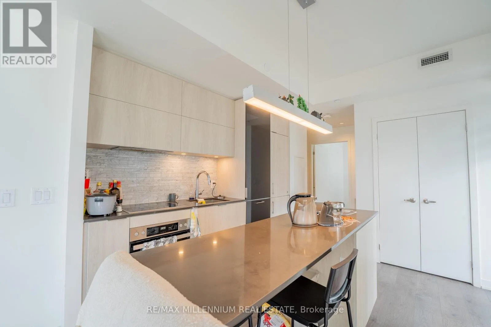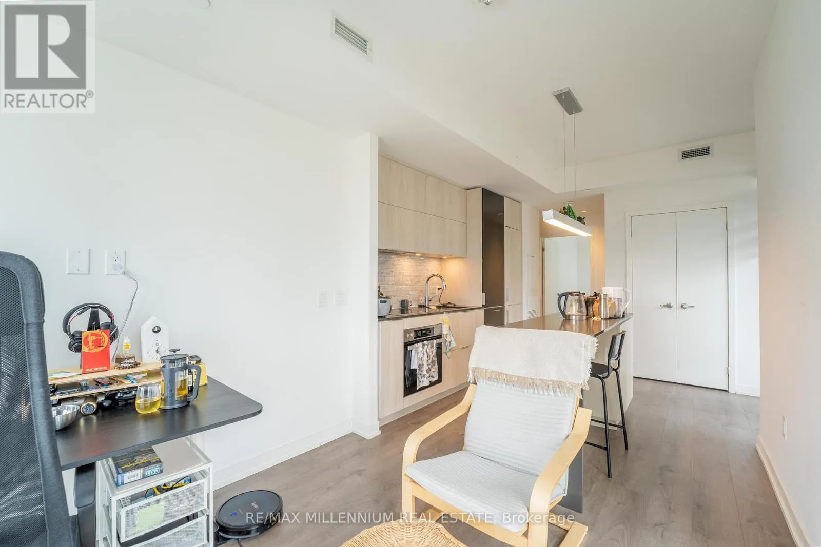 Lake Shore / Lower Jarvis Experience elevated urban living in this stylish 1-bedroom plus den, 1-bathroom suite in Toronto's sought-after waterfront community. Built by The Daniels Corporation, this residence offers quality craftsmanship and modern design throughout. The open-concept layout features Miele built-in appliances, sleek cabinetry, and an upgraded centre island with added prep space and storage. The den provides a versatile area ideal for a home office or guest space, while the spacious four-piece bathroom delivers a spa-like feel.Floor-to-ceiling windows fill the unit with natural light and offer unobstructed views, including glimpses of the water. High ceilings and an efficient layout create a bright, open atmosphere. An owned locker adds everyday convenience.Residents enjoy premium amenities including concierge, fitness centre, sports courts, rooftop lounge, party room, and guest suites. Located in the South Core, just steps to the waterfront, Financial District, transit, and George Brown College-this is modern city living at its best.Don't miss this opportunity-schedule your private viewing today. (id:27476)