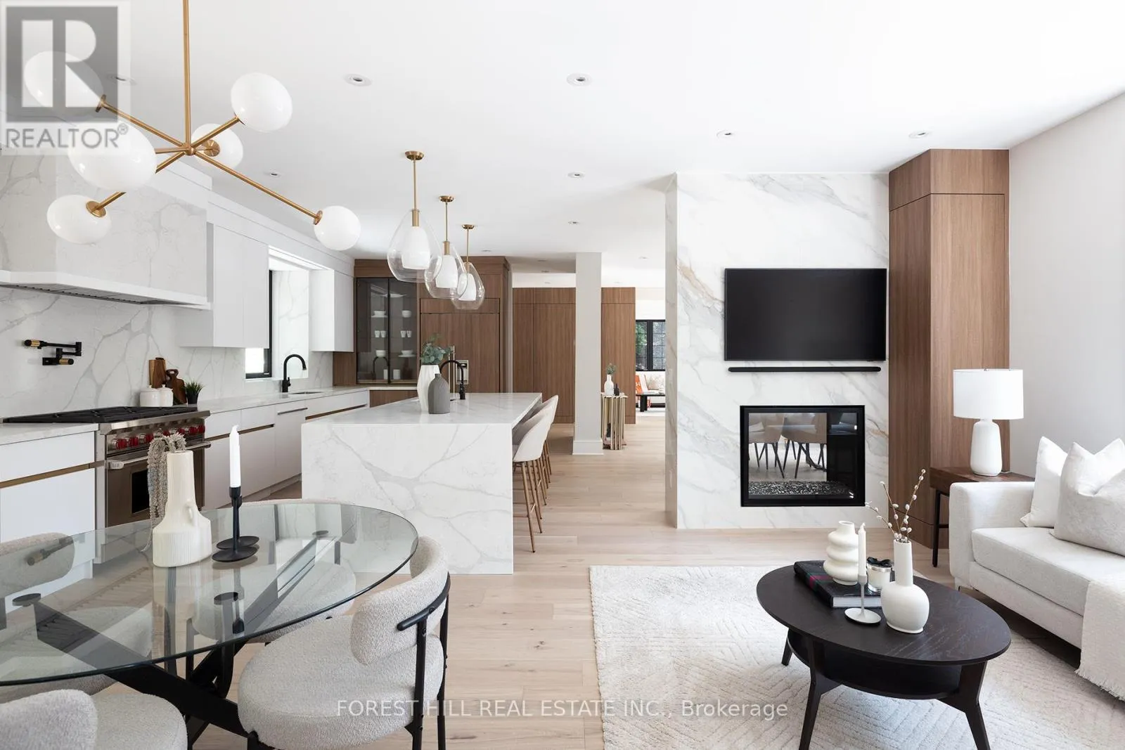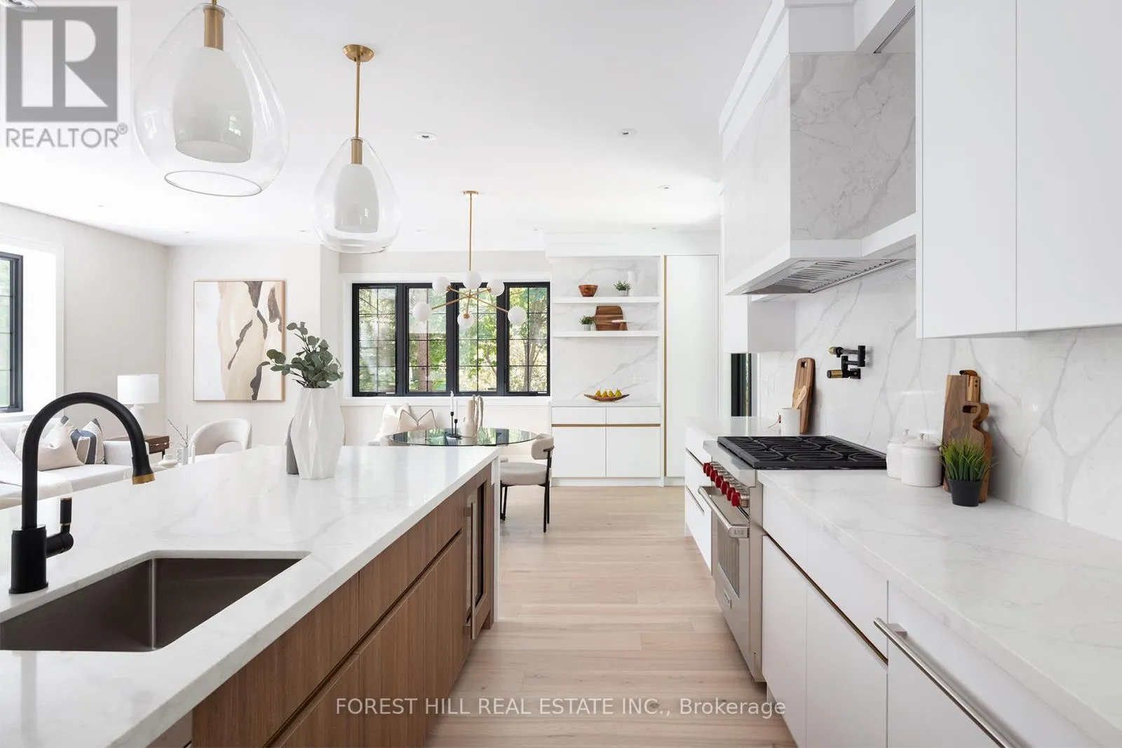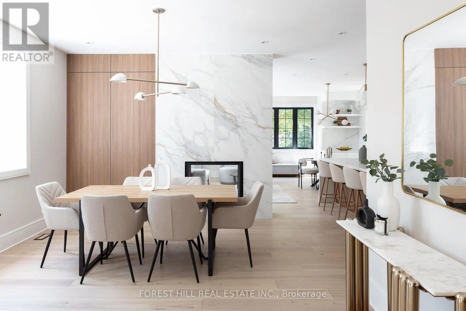 Mt Pleasant Rd & Roxborough Dr Set on one of North Rosedale's most established, tree-lined streets, this home is fully finished, meticulously redesigned, and nearly impossible to replicate within a heritage-protected neighbourhood where complete transformations of this calibre are exceptionally rare. With its 128-foot frontage, the property commands an impressive street presence and an estate-like sense of scale. Natural light floods the main level, where the principal rooms overlook a tranquil, green backdrop. The open-concept kitchen and family area connect seamlessly to a private, ravine-like outdoor retreat, perfect for families who travel often or value low-maintenance living. Chefs kitchen with Sub-Zero refrigeration, a Wolf six-burner gas range and microwave drawer, Miele integrated dishwasher, and quartz waterfall countertops anchored by a double-sided porcelain fireplace. Upstairs, four spacious bedrooms offer privacy and flexibility. The primary suite is tucked away, featuring a generous walk-in closet and a spa-inspired en-suite. A secondary suite with its own balcony provides comfort for guests or extended family, while two additional bedrooms share a well-appointed Jack-and-Jill bath. Designer lighting from Union Lighting and wide-plank engineered hardwood flooring add warmth and refinement throughout. The bright, above-grade lower level extends everyday living with a spacious laundry room featuring Electrolux appliances, direct garage access, and a versatile open layout ideal for a home gym, media lounge, or office. Heated driveway and radiant in-floor heating to the NTI high-efficiency boiler, Siemens safety system, and front and rear irrigation for effortless upkeep. A short walk to Chorley Park, Summerhill Market, and the Evergreen Brick Works, and within close proximity to Toronto's top public and private schools, this is a rare turnkey residence that blends Rosedale charm with uncompromising modern luxury. (id:27476)