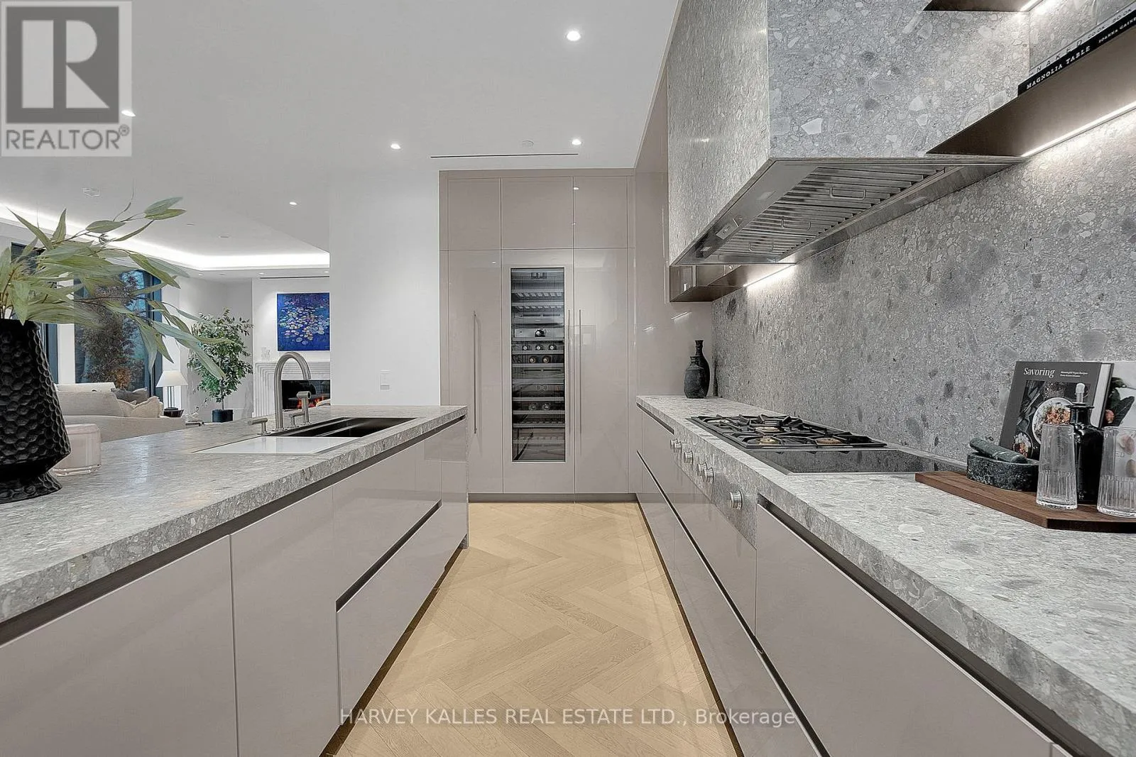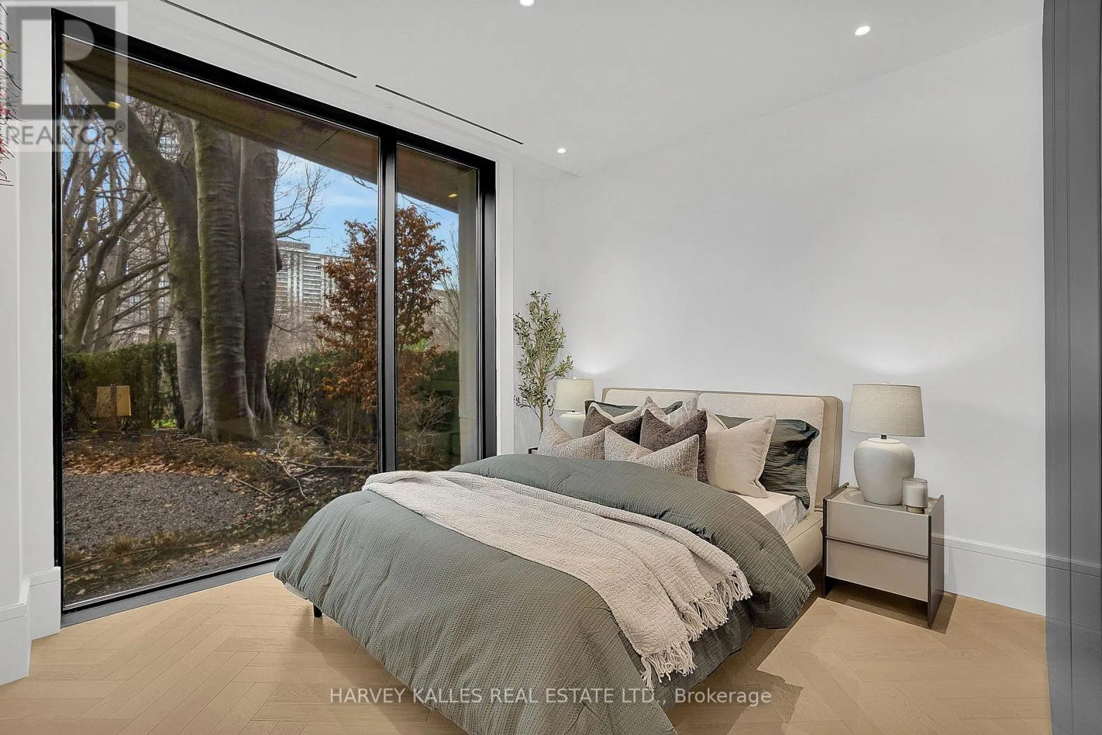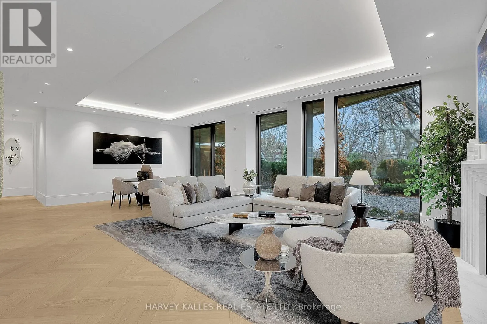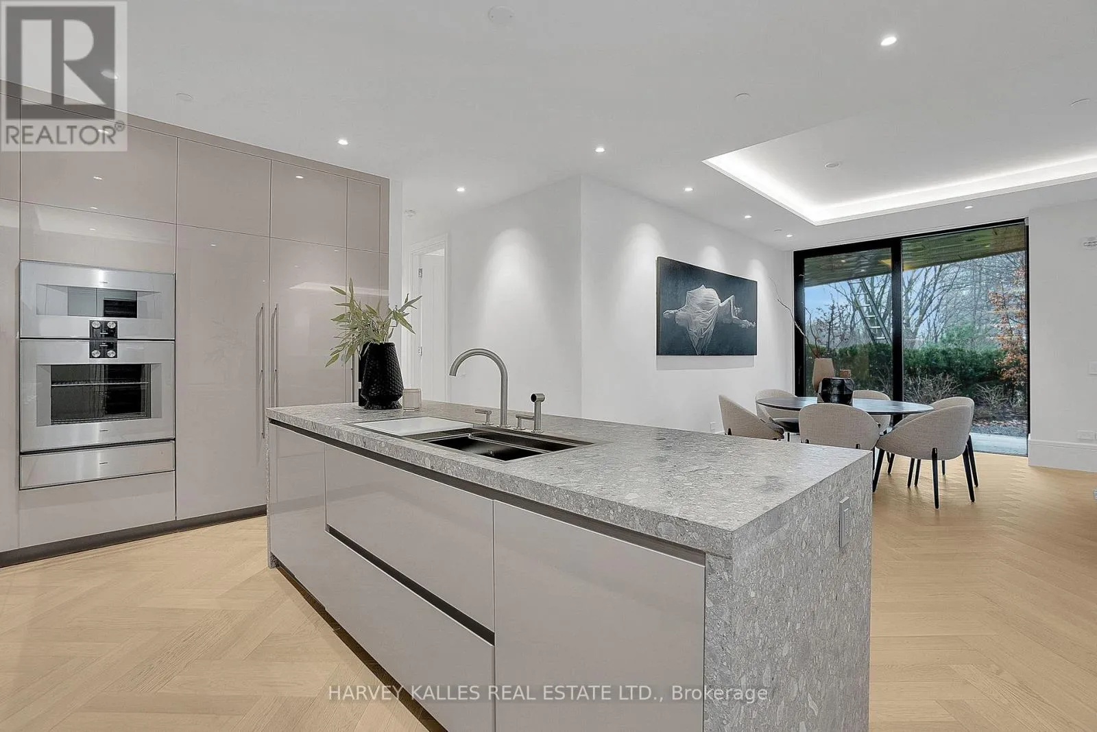 Rosedale Valley/Glen/ Castle Frank/Bloor Welcome to Suite 104! Beautifully set along the Rosedale valley, this 2,204 sqft. split plan 2 bed, 3 bath residence offers direct walk-out access to a private terrace and garden with ravine views; providing a seamless connection between indoor and outdoor living. The main living space is open and expansive, with high ceilings, herringbone wood flooring, and a marble surround gas fireplace anchoring the room. Floor-to-ceiling windows draw in the surrounding greenery, while the gallery-worthy wall space is perfectly suited for the art lover! The kitchen is designed for both everyday use and entertaining - crafted by Dada (Molteni&C), and equipped with integrated Gaggenau appliances and it features a large central island with seating for 4! South garden-facing rooms are filled with natural light throughout the day, while evenings offer a quiet, private backdrop. A in-suite elevator provides direct access to parking. No. 7 Dale is a boutique residence by renowned Hariri Pontarini Architects, landscaping by Janet Rosenberg. With only 26 residences, limited inventory available, it lives more like a private home - quiet, discreet, and connected to the Rosedale Valley. (id:27476)