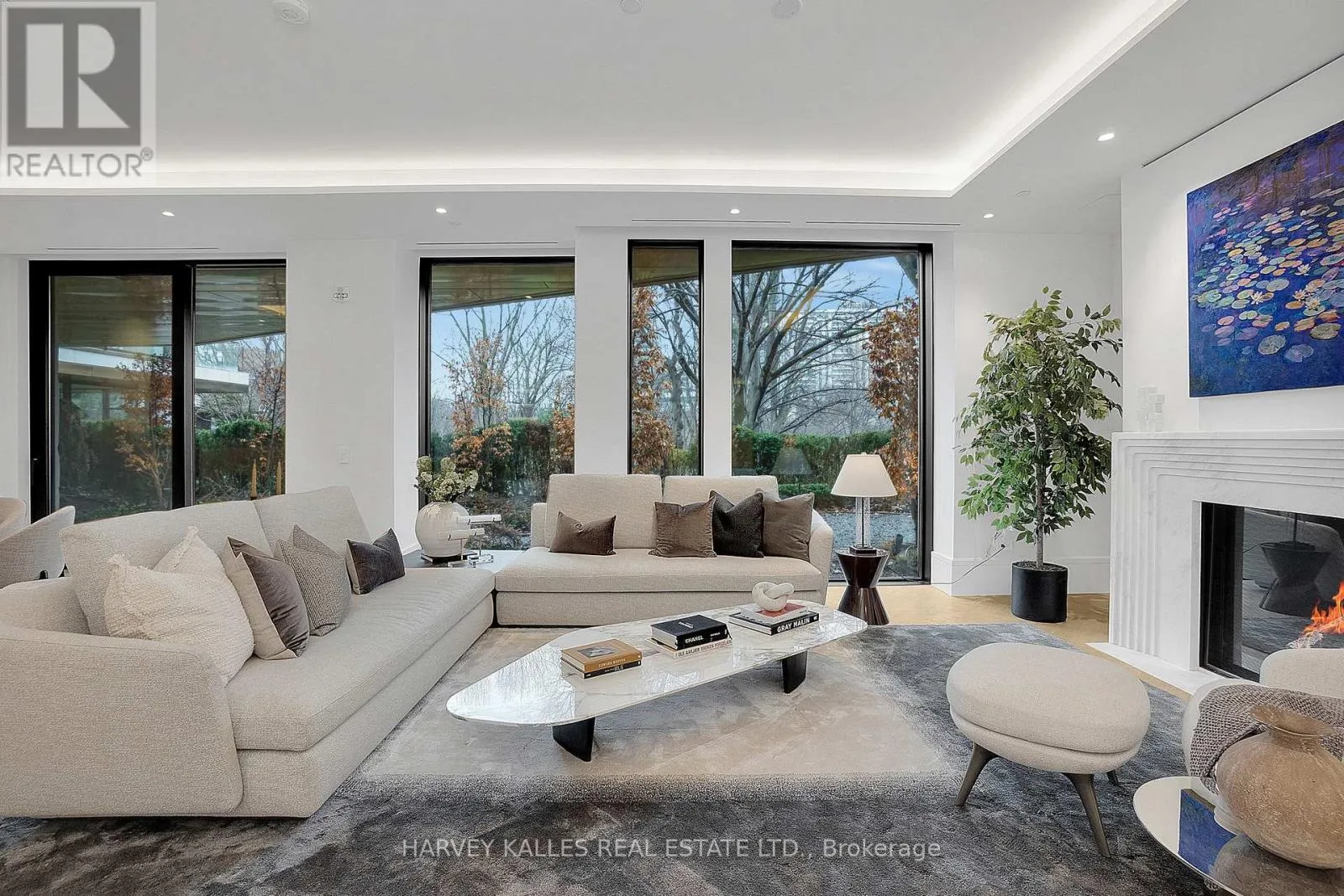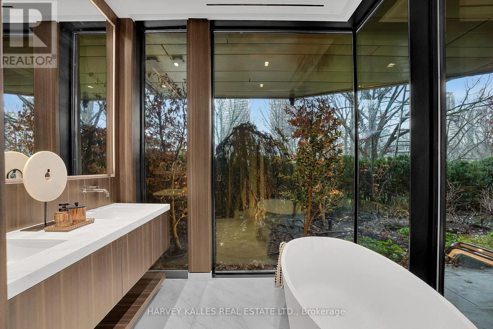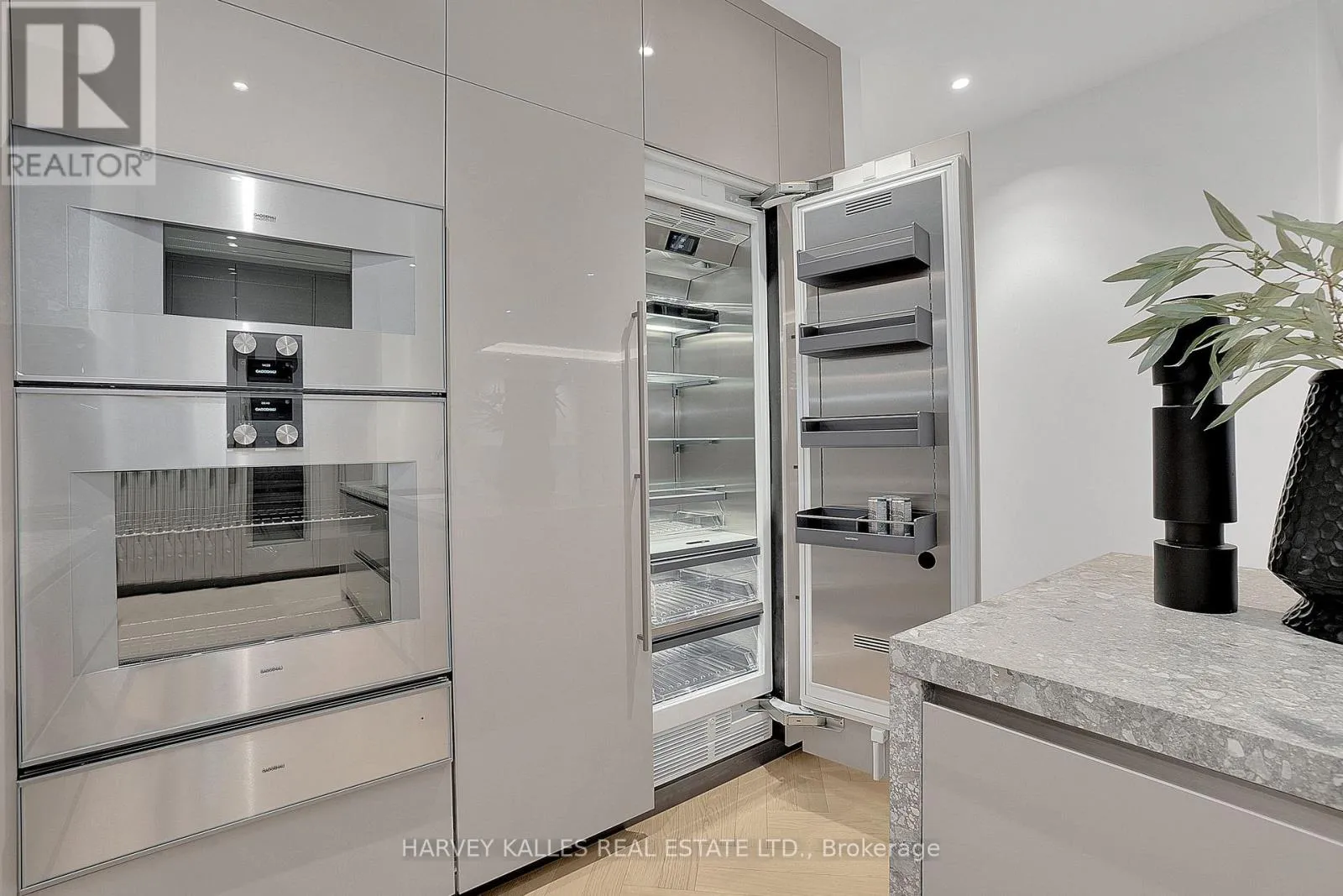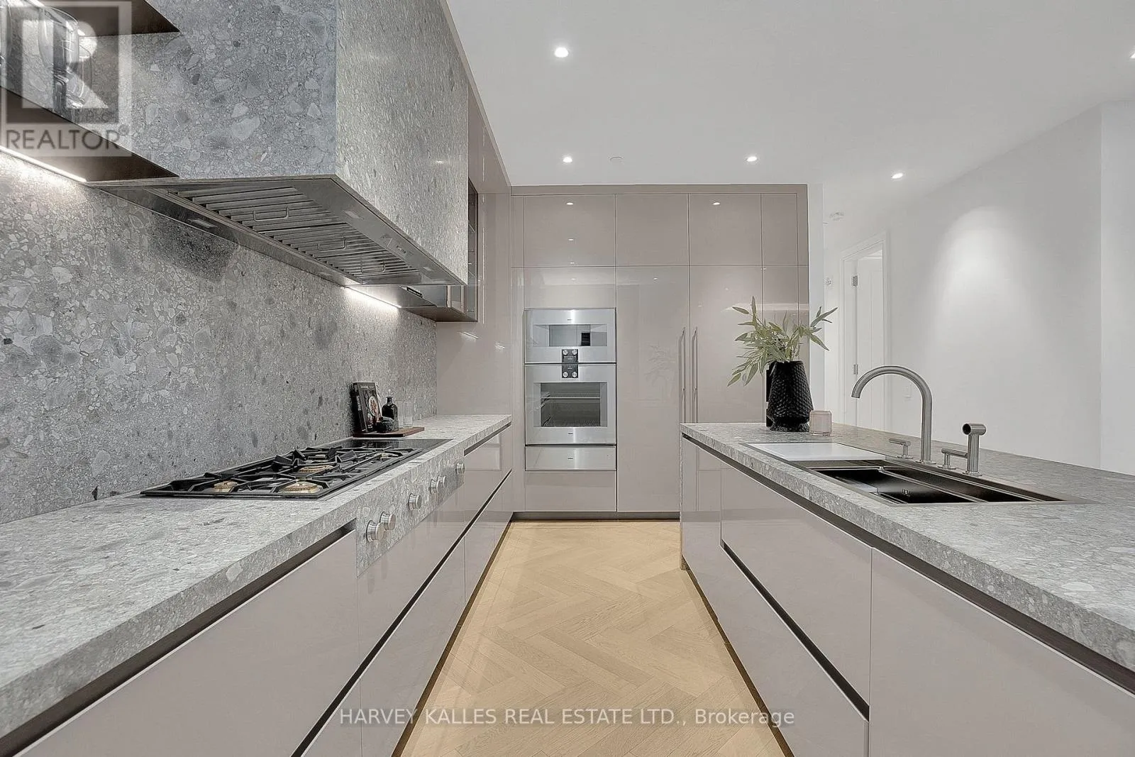 Rosedale Valley/Glen/ Castle Frank/Bloor Welcome to Suite 104! Beautifully set along the Rosedale valley, this 2,204 sqft. split plan 2 bed, 3 bath residence offers direct walk-out access to a private terrace and garden with ravine views; providing a seamless connection between indoor and outdoor living. The main living space is open and expansive, with high ceilings, herringbone wood flooring, and a marble surround gas fireplace anchoring the room. Floor-to-ceiling windows draw in the surrounding greenery, while the gallery-worthy wall space is perfectly suited for the art lover! The kitchen is designed for both everyday use and entertaining - crafted by Dada (Molteni&C), and equipped with integrated Gaggenau appliances and it features a large central island with seating for 4! South garden-facing rooms are filled with natural light throughout the day, while evenings offer a quiet, private backdrop. A in-suite elevator provides direct access to parking. No. 7 Dale is a boutique residence by renowned Hariri Pontarini Architects, landscaping by Janet Rosenberg. With only 26 residences, limited inventory available, it lives more like a private home - quiet, discreet, and connected to the Rosedale Valley. (id:27476)