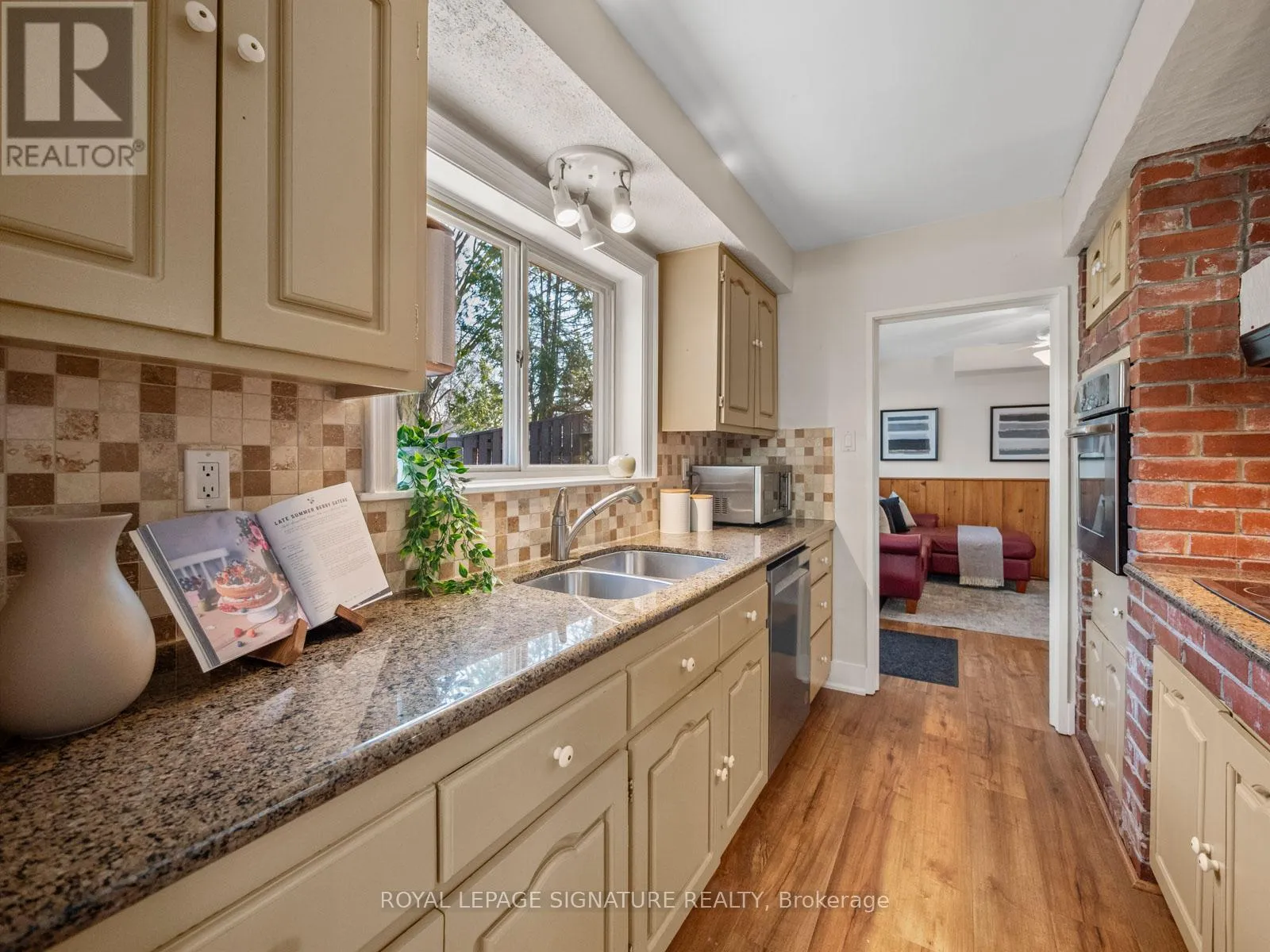 Cross Streets: Orton Park Rd & Ellesmere Rd. ** Directions: S of Ellesmere Rd, East of Orton Park. Welcome to this charming 4-bedroom 2 storey home, tucked away on a quiet, tree-lined street at 27 Madras Crescent in the heart of Scarborough. Full of character and meticulously maintained, this home offers a fresh, move-in-ready space for its next owner to enjoy. The bright and inviting living and dining area, just a few steps down from the entryway, features a large picture window that fills the space with natural light. The kitchen is thoughtfully updated with stainless steel appliances and stone countertops and flows seamlessly into the cozy family room with a convenient walkout to the fully fenced backyard, perfect for relaxing or entertaining. A 2-piece powder room and a separate laundry room complete this level. Upstairs, you'll find 4 comfortable bedrooms, all with hardwood flooring, along with an updated 4-piece bathroom. The upper level is full of charm, highlighted by sloped ceilings and a large skylight that enhances the home's warm, inviting feel. Ideal for downsizers who still want to enjoy gardening and outdoor living, or first-time buyers seeking a detached home with a connection to nature. 27 Madras offers its lucky new owners a wonderful opportunity to live and grow in a family-friendly setting. (id:27476)