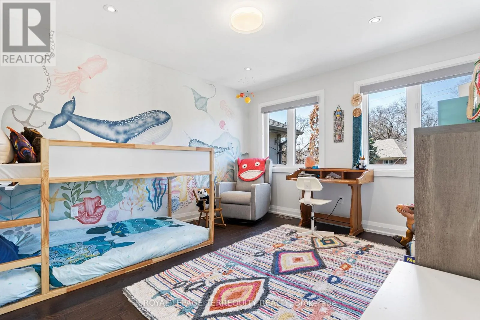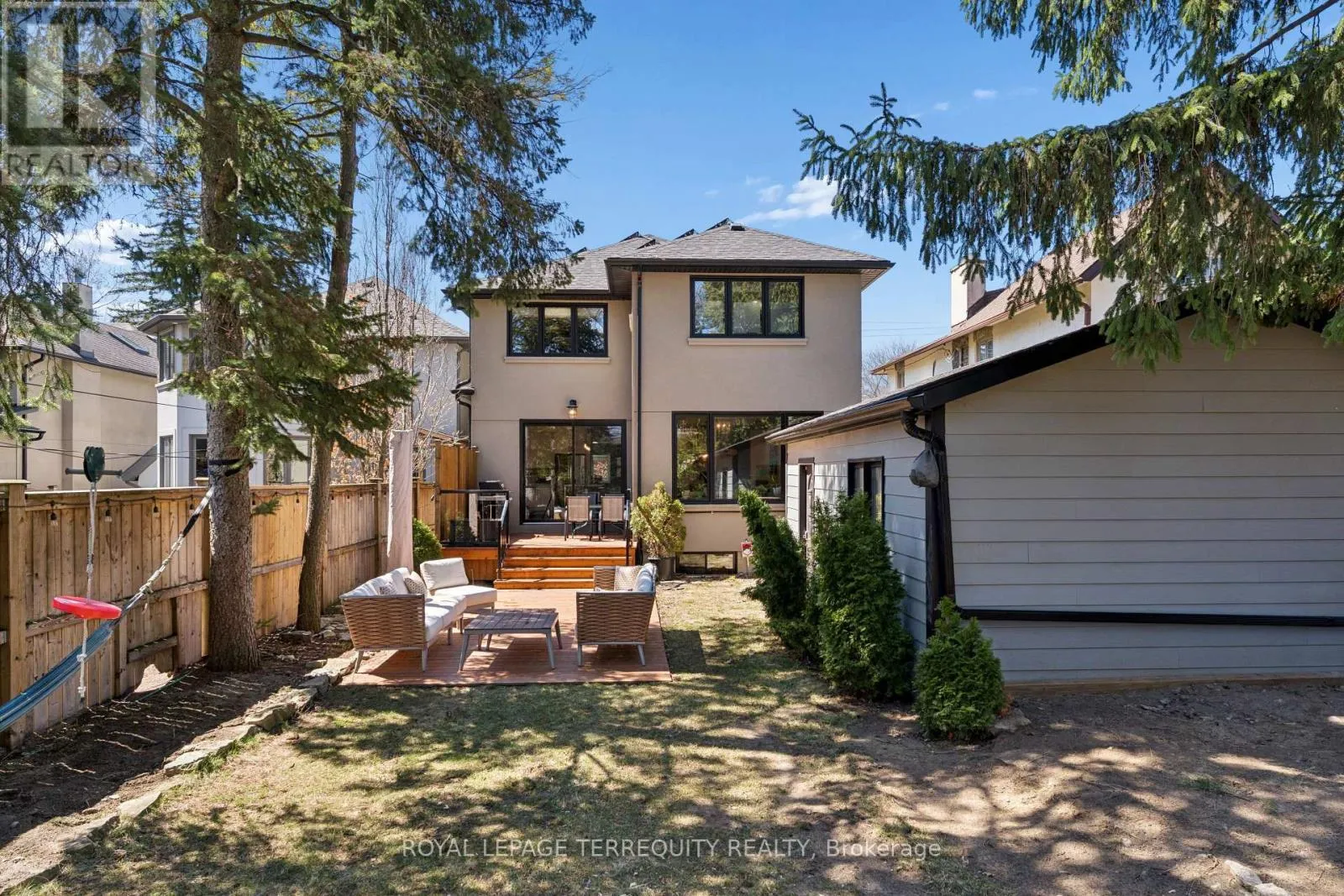 Cross Streets: Baby Point / Jane. ** Directions: Baby Point Rd, turn right at roundabout. A beautiful, modern home on an exceptional 40 x 187 ft lot with a backyard that feels like your own private park. Nearly two dozen trees, including a dozen mature specimens, lawn, full fencing, and a depth rarely found in the city - private, expansive, and ideal for kids, entertaining, or simply having space to breathe. A move-in ready 4-bedroom home with a bright, open main floor that walks out to the deck and garden. Thoughtful storage throughout, a family room overlooking the yard, and a second living space at the front. Finished basement with excellent flexibility: currently set up as a home theatre, gym, play area, and a 5th bedroom with full bath. Located in Baby Point, a quiet and highly sought-after neighbourhood, steps to the Humber River, parks, playgrounds, and schools (including French immersion), with easy access to TTC, shops, and restaurants. Solar panels under the micro FIT program (through 2038) generate monthly revenue to cover electricity usage, complemented by a Mitsubishi Zuba cold-climate heat pump for efficient year-round comfort, plus an EV charger. A truly rare backyard in the city, paired with a home that's ready to enjoy from day one. Fl plans, inspection, Feature sheet, virtual tour att. (id:27476)
