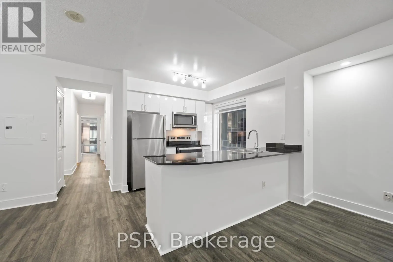 John St & King St W This spacious Two-Bedroom corner suite offers 970 square feet of thoughtfully designed living space. The open-concept kitchen features a breakfast bar that seamlessly connects to the living and dining areas. Additional highlights include an ensuite bathroom, two closets in the primary bedroom, and vinyl flooring throughout. Residents can enjoy a variety of amenities, including a concierge, gym, and a rooftop terrace with BBQs, along with a party room and lounge, movie theatre, and golf simulator for added entertainment. Situated in the heart of the city, this property offers unmatched proximity to the subway, Financial District, Entertainment District, and the lively neighbourhoods of King and Queen West, with easy access to the Gardiner Expressway. Experience Toronto's finest restaurants, theatre, shopping, and vibrant city life right at your doorstep! (id:27476)