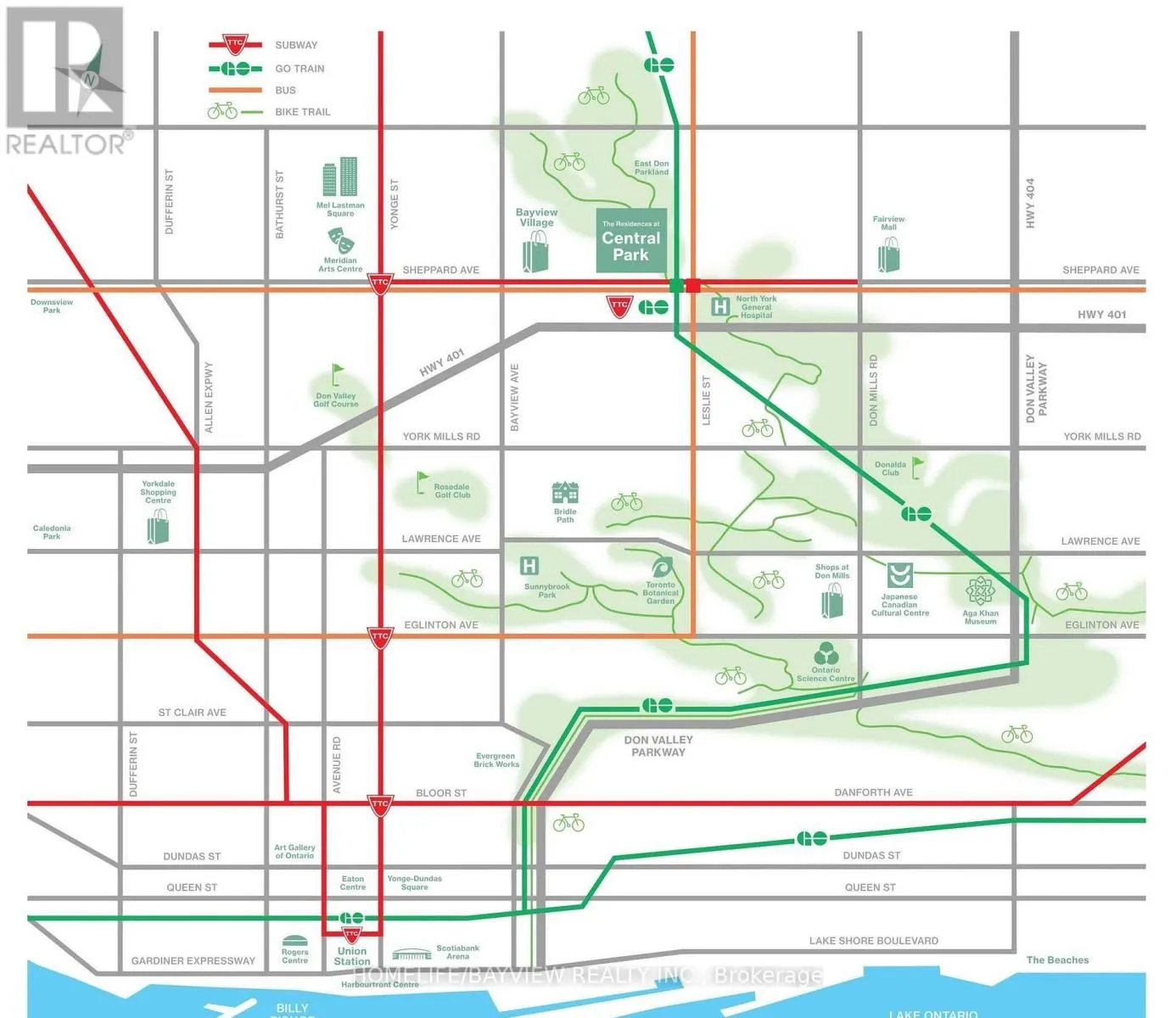 Cross Streets: Sheppard Ave E/ Leslie. ** Directions: north of sheppard ave. Brand new, never lived-in 2-bedroom + den, 2-bathroom suite at the sought-after Residences at Central Park in Bayview Village. one of the biggest floor plans in the building, 862sf +126sf balcony, ideal for comfortable living or working from home, with a versatile den that can be used as a home office or 3rd bedroom. Bright and open-concept living and dining area with large windows bringing in abundant natural light, complemented by modern finishes and quality builtin appliances. Enjoy a rare combination of urban convenience and natural surroundings, with direct access to the East Don Parkland, scenic walking and biking trails just steps from the building. Residents will have access to exceptional "Park Club" amenities (approx. 55,000 sqft currently under construction) including fitness facilities, pools, and premium recreational spaces. Located in the highly desirable Bayview Village community, steps to Leslie Subway Station, Oriole GO Station, and minutes to Hwy 401, Bayview Village Shopping Centre, Fairview Mall, restaurants, and everyday conveniences. Includes 1 parking space. A perfect opportunity to live in a brand new, master-planned community offering a balanced lifestyle of nature, transit, and modern luxury. (id:27476)