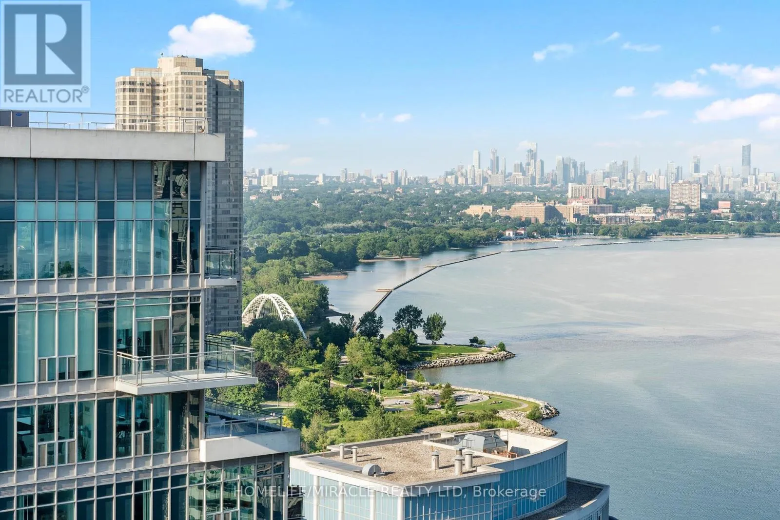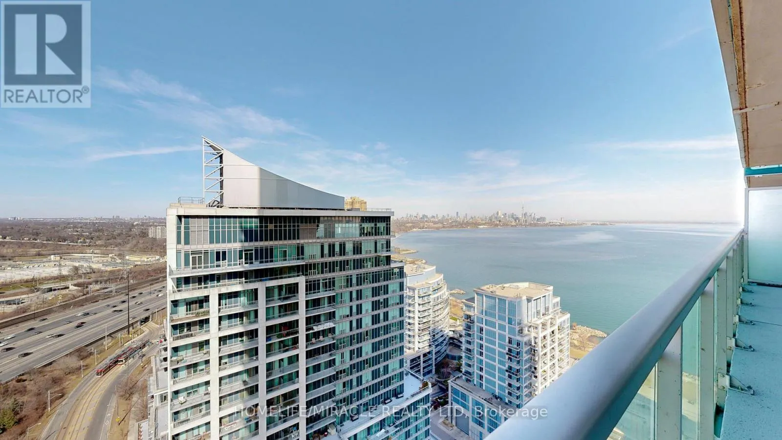 Lake Shore Blvd/ Park Lawn Experience elevated waterfront living in this exceptional 2-bedroom, 2-bathroom residence at Nautilus at Waterview, perfectly positioned in Toronto's vibrant Mimico community. Perched on the 26th floor, this beautifully designed 802 sq. ft. suite delivers a rare combination of style, comfort, and truly breathtaking southeast views stretching across Lake Ontario and the iconic CN Tower. From the moment you step inside, you're welcomed by a bright, open-concept layout with soaring 9-foot ceilings and dramatic floor-to-ceiling windows that flood the space with natural light. The contemporary kitchen is thoughtfully upgraded with sleek stone countertops, s/s appliances, and ample cabinetry-perfectly flowing into the living and dining area, making it ideal for both relaxed everyday living and effortless entertaining. The spacious primary bedroom offers a private retreat, complete with a walk-in closet and a modern 3-piece ensuite. The second bedroom stands out with direct balcony access-perfect for morning coffee or evening unwinding with skyline views. Step outside to your large private balcony and take in uninterrupted lake and city vistas that truly set this home apart from anything else on the market. Includes 1 parking & locker, adding practicality to its luxurious appeal. Residents enjoy resort-style amenities including a 24-hr concierge, fitness center, indoor pool, hot tub, sauna, yoga studio, party and media rooms, rooftop terrace with BBQs, guest suites, and more-everything designed to enhance your lifestyle. Located just steps from the waterfront, scenic trails, parks, and transit, with seamless access to the Gardiner Expressway, this condo offers unmatched connectivity. Whether commuting downtown or enjoying lakeside leisure, everything is at your doorstep. (id:27476)