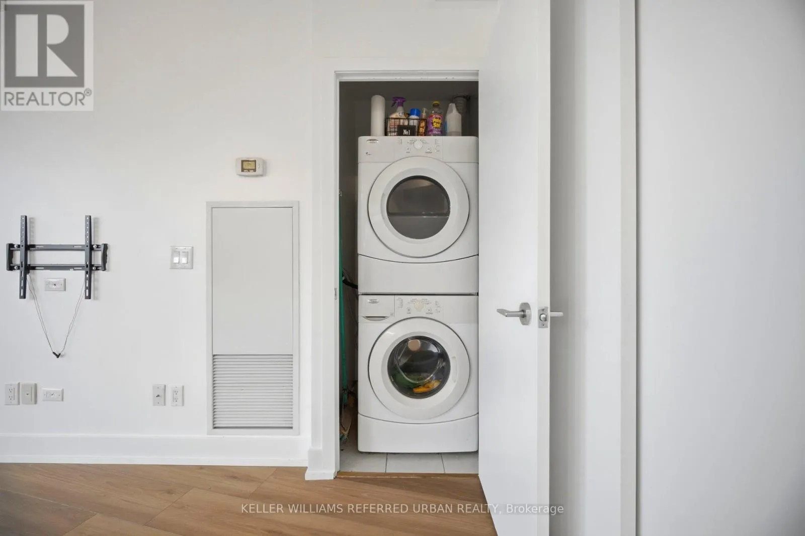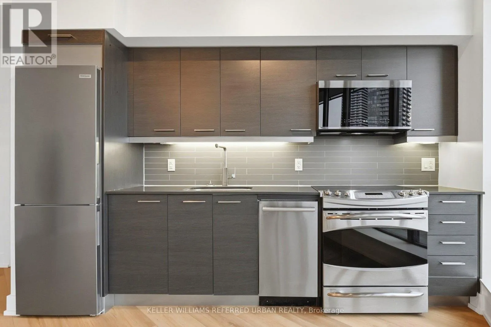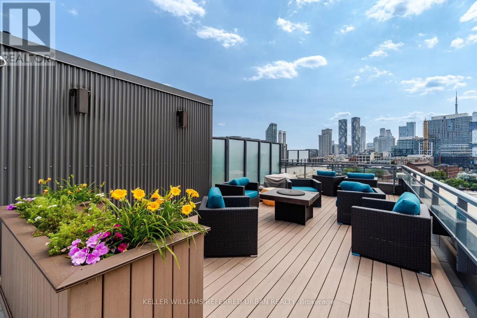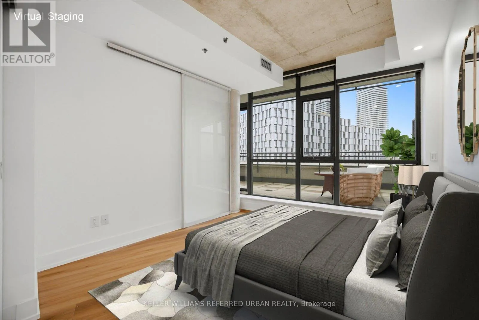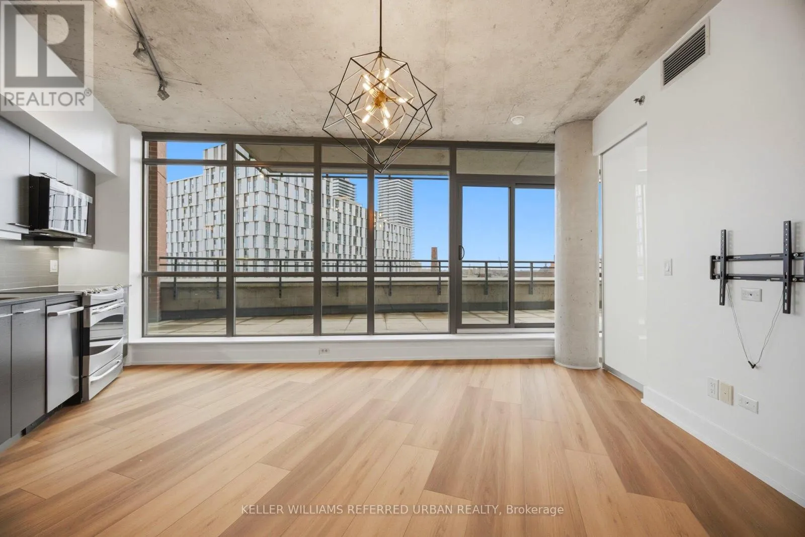 Cross Streets: Eastern/Parliament. ** Directions: Front And Parliament. Experience refined urban living at Trinity Lofts, a boutique residence in Toronto's vibrant King East Design District. This beautifully updated one-bedroom suite offers a fresh, modern aesthetic complemented by 9-foot concrete ceilings that deliver an authentic loft feel. The open-concept layout is thoughtfully designed for both comfort and functionality, extending seamlessly to an expansive south-facing terrace-perfect for outdoor lounging, entertaining, BBQ'ing or soaking in all-day sunlight. Enjoy the convenience of an ensuite laundry and a sleek 4-piece renovated bath, all within a well-managed building that also features a stunning rooftop terrace with BBQ facilities and panoramic city views. Set in a dynamic and walkable neighbourhood, you're just moments from the iconic Distillery District and the renowned St. Lawrence Market. Daily essentials are easily accessible with nearby options like No Frills, Rabba, Aisle 24, and Marche. For outdoor enthusiasts, enjoy quick access to the Don Valley trail system and a scenic ride to Cherry Beach. With excellent transit options and convenient connections to the Gardiner Expressway and DVP, commuting throughout the city. (id:27476)
