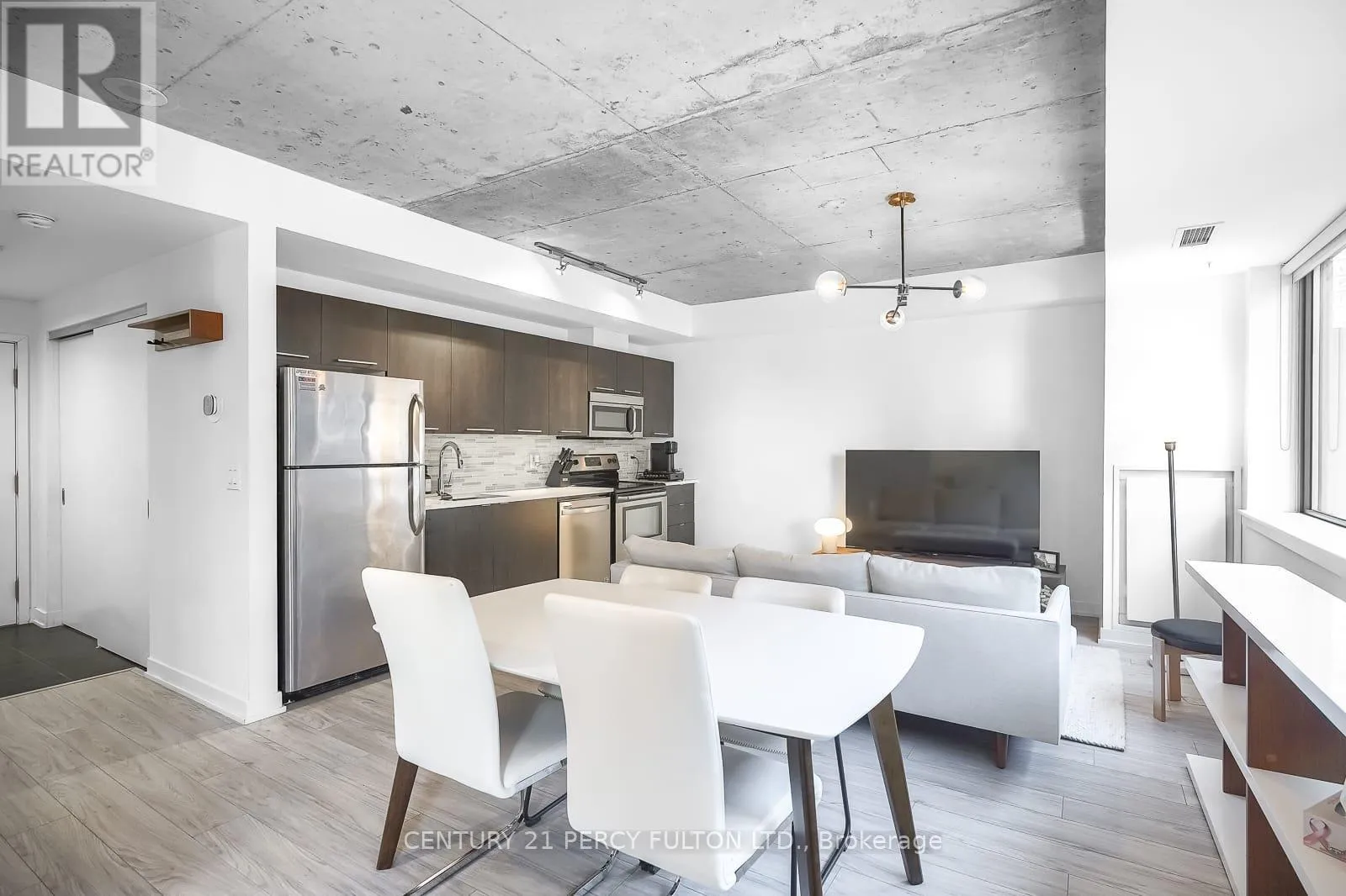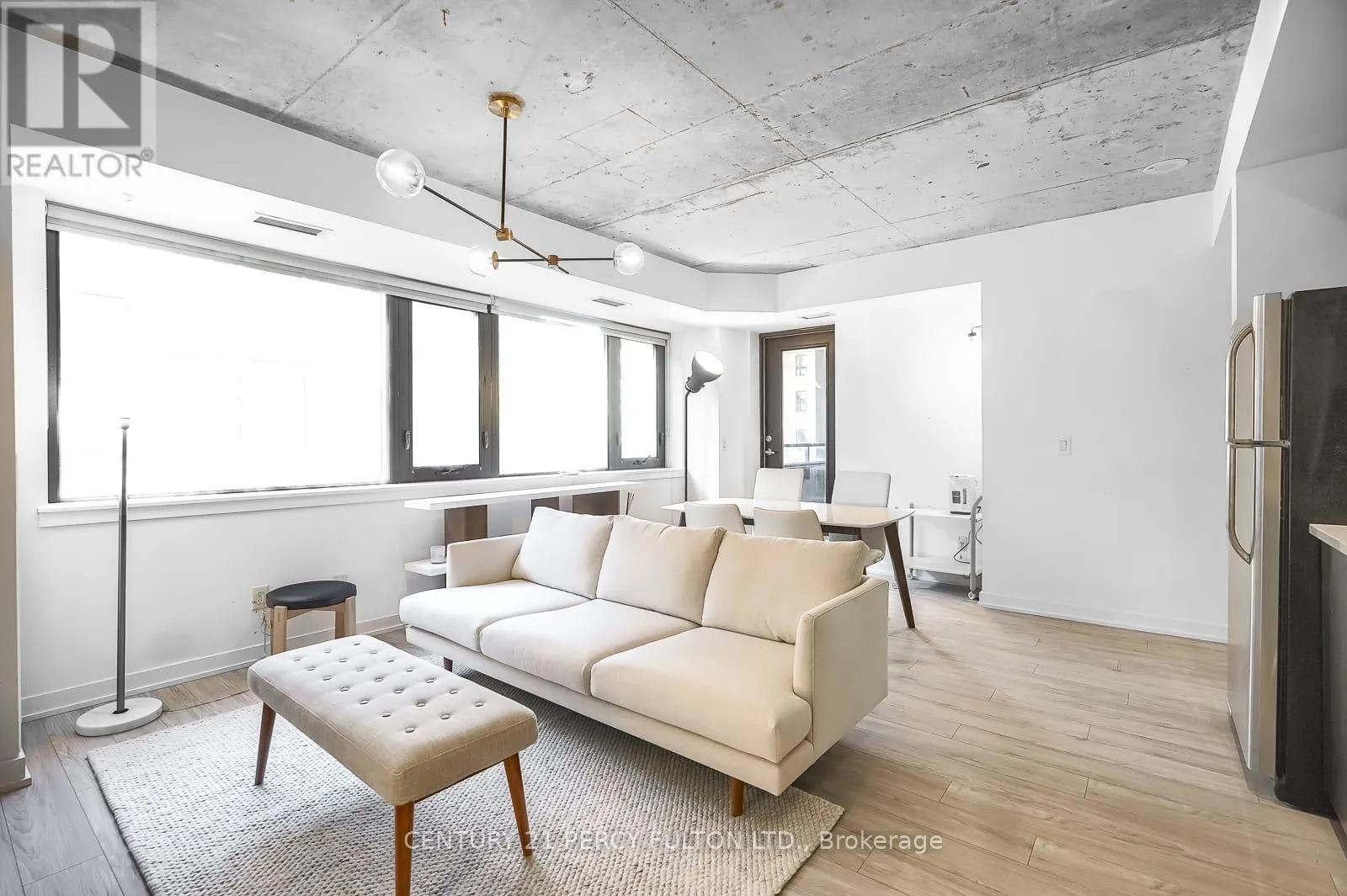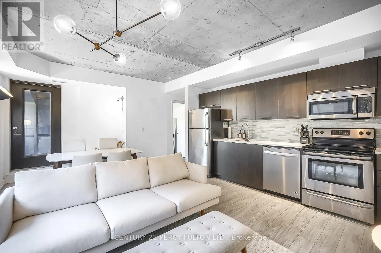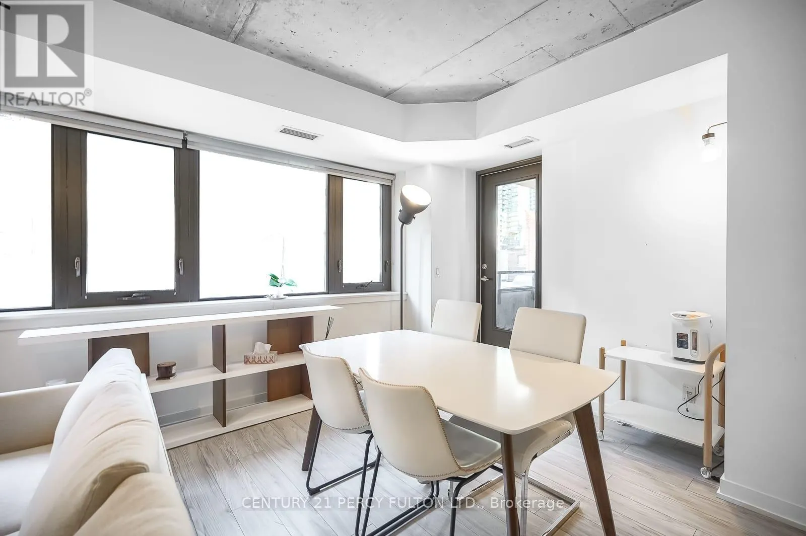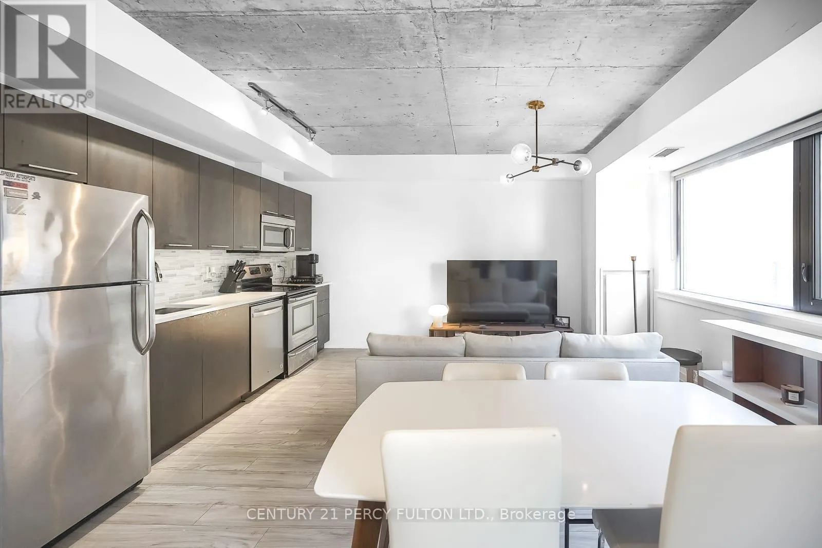 Cross Streets: King & Spadina. ** Directions: Google Search \"Great botique condo in DT Toronto\". Rarely does a unit become available in this exclusive boutique residence. Welcome to 400 Wellington, quietly tucked away in one of downtown Toronto's most coveted pockets, yet just steps from the city's finest dining, entertainment, and lifestyle amenities. Offering over 600 sq ft of bright, open-concept living space, this suite features exposed concrete ceilings, expansive windows, stainless steel appliances, and vinyl flooring, blending modern design with comfort. Offered fully furnished, this move-in-ready residence is ideal for professionals seeking a seamless downtown lifestyle without compromise. Residents also benefit from an exceptional security team known for their attentive service, personal approach, and commitment to the building's strong sense of community and safety. With the introduction of The Well, Wellington St W has evolved into an even more dynamic destination for upscale dining, retail, and everyday convenience, while nearby King St W continues to define the city's vibrant urban energy. With everything at your doorstep, #302 presents a perfect opportunity to enjoy refined boutique living in the heart of Toronto. (id:27476)