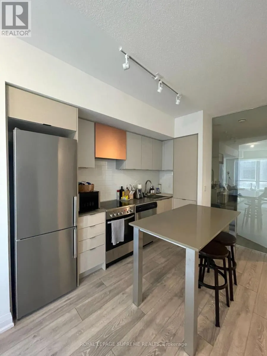 Cross Streets: Bloor St W & The East Mall. ** Directions: West of The East Mall, & North of Bloor St W. Welcome to this 2-bedroom, 2-bathroom suite offering over 700+ sq ft of thoughtfully designed living space. Featuring 9 foot high ceilings and floor-to-ceiling windows, the unit is filled with natural light and showcases contemporary finishes throughout. The open-concept living and dining area flows seamlessly to a southeast-facing private balcony, perfect for enjoying morning sun. The kitchen is equipped with built-in stainless steel appliances, while the spacious primary bedroom features a private 4-piece ensuite for added comfort and privacy. One underground Extra Wide Parking Space and Internet included! Residents enjoy access to excellent building amenities including concierge service, rooftop terrace, swimming pool, fully equipped gym, lounge, kids playroom, and visitor parking. Ideally located close to grocery stores, schools, parks, and with easy access to Hwy 427 for convenient commuting as well as a complimentary shuttle service to Kipling Station! (id:27476)