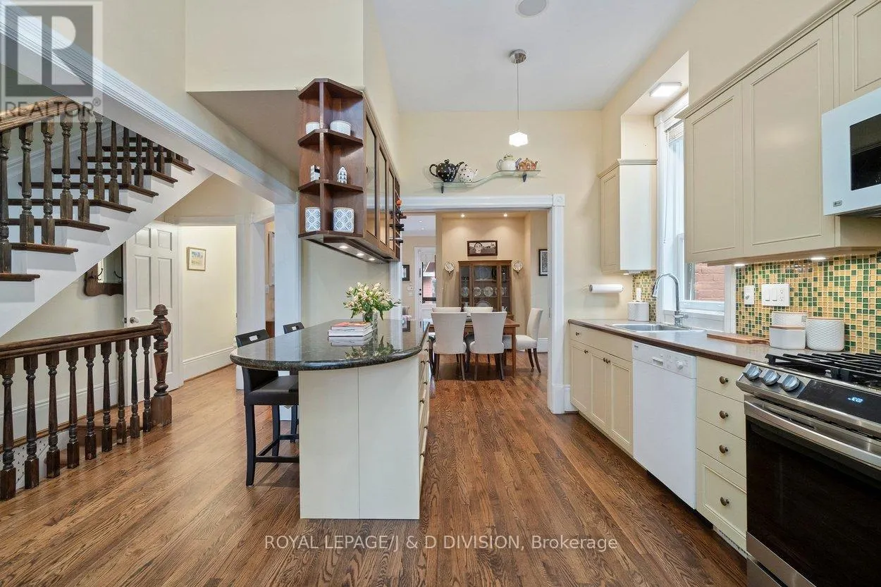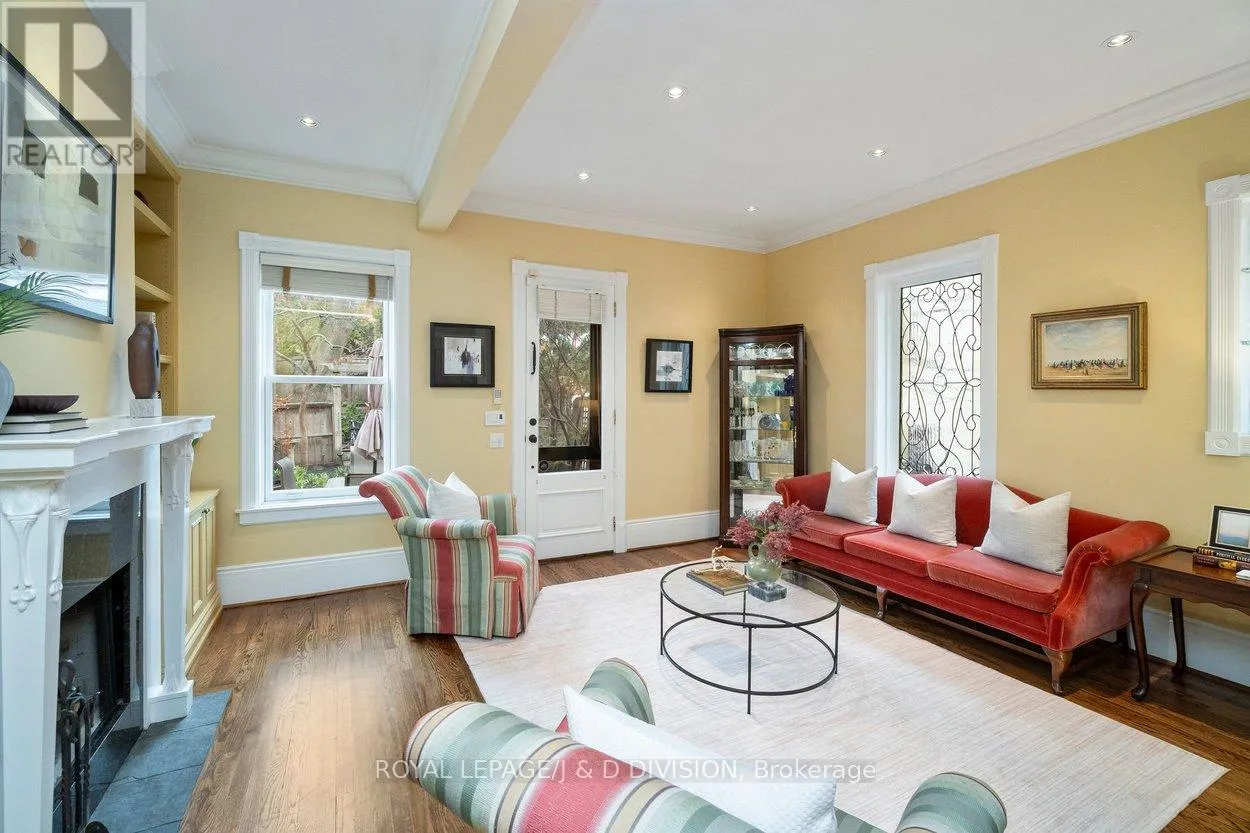 Cross Streets: Avenue Road and Cottingham Street. ** Directions: West on Cottingham from Avenue. Tucked into the Republic of Rathnelly, one of Toronto's most unique and tightly held neighbourhoods, this striking Gable-Front Victorian offers a rare combination of scale, character, and location. Set on a quiet, tree-lined street where neighbours know each other and homes rarely come to market, this is the kind of address buyers wait years for. Inside, soaring ceilings on every level create a sense of volume rarely found, with a main floor that blends elegance and function through a formal living room with wood burning fireplace, a dining room with gas fireplace, and a kitchen that anchors daily life and entertaining. The second floor offers two bedrooms plus a flexible den easily converted back to a fifth, along with laundry and a primary suite with California Closets built-ins. The third floor adds two more bedrooms, including one with an integrated study area, and a walkout terrace above the city. A largely unspoiled lower level with wine cellar and side walkout offers exceptional future potential. Detached garage via shared drive with potential for additional rear parking. Steps to Summerhill, Nordheimer Ravine, Pump Park, transit, and within the coveted Brown School catchment. A rare opportunity in a true neighbourhood setting. (id:27476)