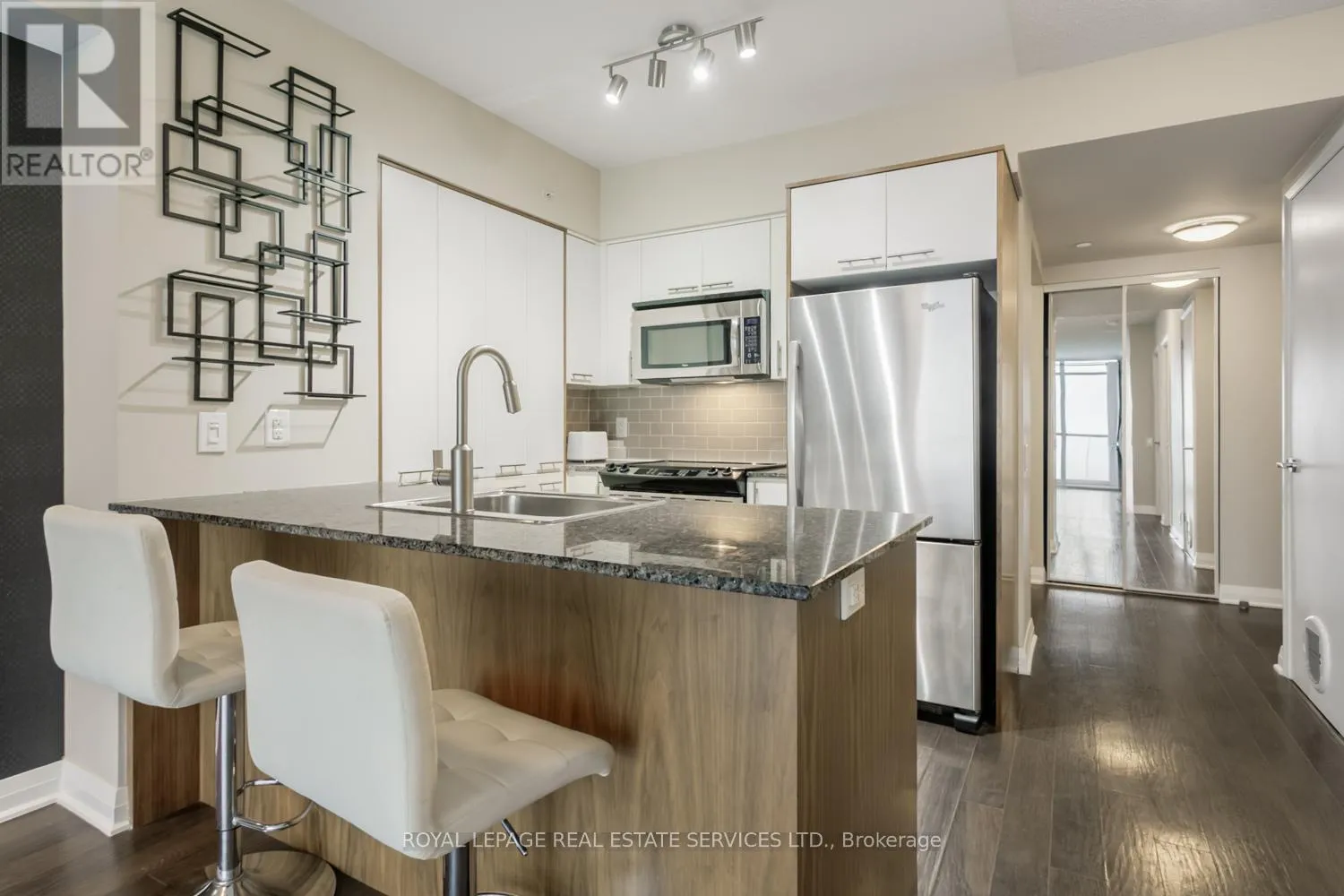 Cross Streets: Bloor St W & Hwy 427. ** Directions: Bloor St W & 427. Bright. Stylish. Effortlessly Yours. Welcome to 1 Valhalla Inn Rd - a space that offers comfort, convenience, and elevated everyday living. This sun-filled one-bedroom plus den, one-bathroom east-facing suite on the 17th floor is designed to feel like home from the moment you walk in. Floor-to-ceiling windows flood the space with natural light, while 9-ft ceilings and a smart, functional layout create an open, airy feel. The sleek U-shaped kitchen with built-in stainless steel appliances is perfect for everything from quiet nights in to easy takeout dinners. Step out onto your private balcony and enjoy peaceful, elevated views - your own escape above the city. Ideally located, you're just steps to transit, groceries, and everyday essentials, with great local dining options nearby. Quick access to major highways makes commuting and weekend plans seamless. Residents enjoy a full suite of amenities, including a fitness centre, indoor pool, outdoor terrace, and 24/7 concierge - everything you need for convenient, comfortable living. (id:27476)