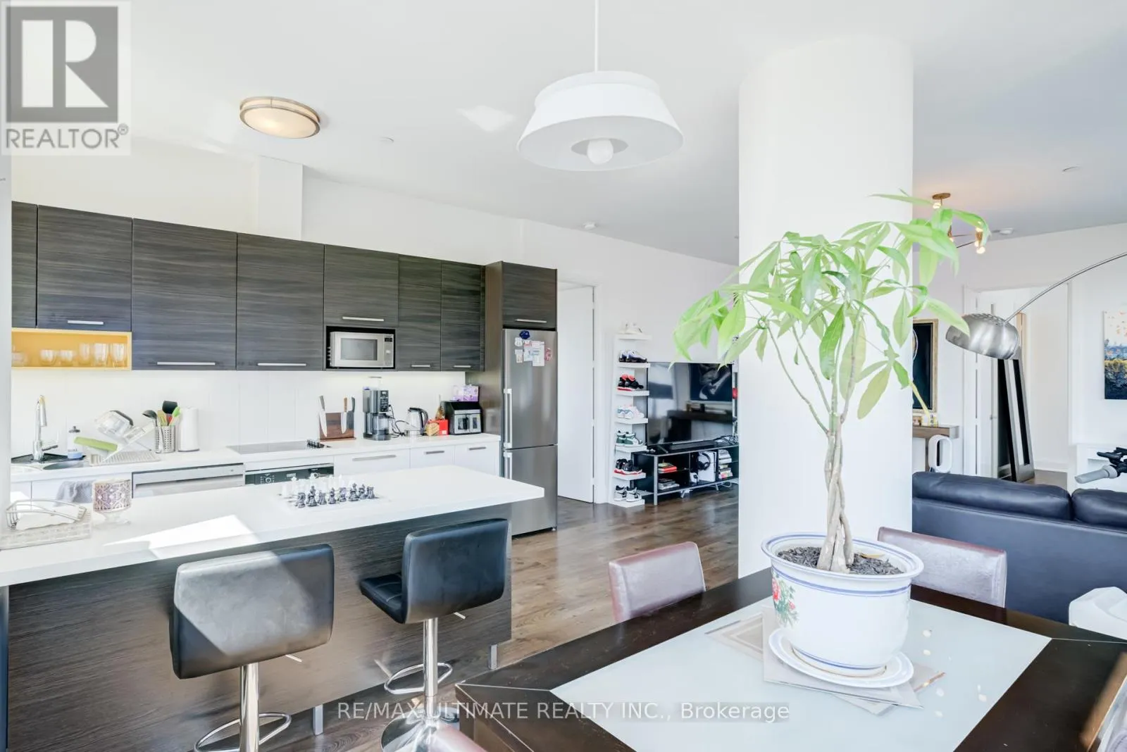 Lake Shore Blvd W & Park Lawn Rd Experience exceptional waterfront living in one of the largest and most desirable layouts at Key West Condos. This sun-drenched 2-bedroom corner suite offers an impressive 1,212 square feet of thoughtfully designed interior space, complemented by an additional 268 square feet of outdoor living across two private balconies. Bathed in natural light from expansive windows throughout, the suite showcases serene southwest views over Mimico's lush, tree-lined surroundings. The functional, open-concept layout offers no wasted space, creating an effortless flow for both everyday living and entertaining. The spacious primary retreat features a generous walk-in closet and a beautifully appointed 4-piece ensuite, while the second bedroom offers its own private 3-piece ensuite and walk-out to a west-facing balcony - ideal for guests, family, or a stylish home office. At the heart of the home, the modern kitchen is equipped with top-of-the-line stainless steel appliances, ample cabinetry, and expansive counter space, seamlessly connecting to the dining area through a convenient breakfast bar - perfect for hosting or casual meals. Set in a vibrant yet peaceful lakeside community, this location offers the best of both worlds. Enjoy effortless access to the TTC, Metro, Shoppers Drug Mart, medical clinics, banks, cafés, and an array of highly rated restaurants, all just steps from your door. For outdoor enthusiasts, the nearby waterfront, scenic trails, and parks provide a stunning natural escape right in your neighbourhood. (id:27476)
