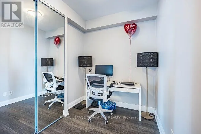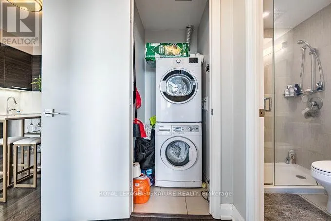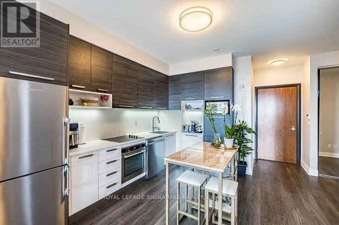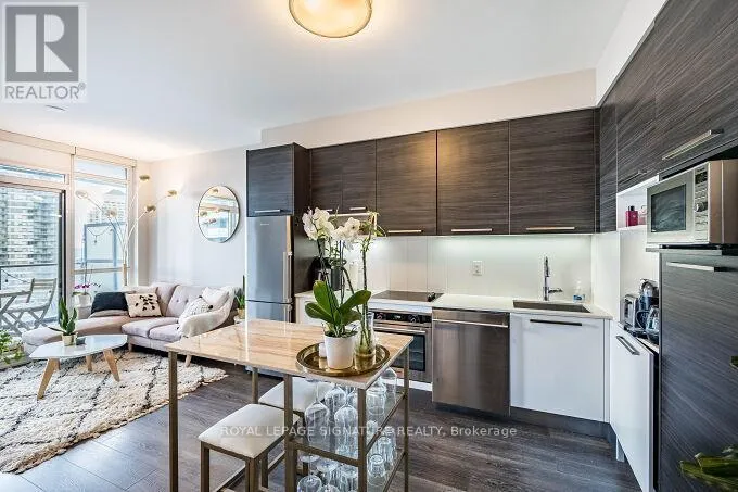 Lakeshore and Park Lawn Road Stunning 1+1 bedroom, 597 sq. ft. suite with 9ft ceilings and a very practical open-concept layout. Features upgraded kitchen countertops, stainless steel appliances, and carpet free flooring throughout. Enjoy a beautiful south facing view in the highly sought after Mimico neighbourhood. Walking distance to the waterfront and scenic walking, biking, jogging, and cycling trails perfect for an active lifestyle. Includes 1 underground parking space and 1locker. Just a short walk to great restaurants, boutique cafes, and parks. Conveniently located near the Gardiner Expressway with quick access east to Downtown Toronto in under 10 minutes, and west to Mississauga and Niagara Falls. Public transit at your doorstep and Metro grocery store next door. Building amenities include guest suites, rooftop deck, gym, party/meeting room, outdoor lounge with BBQ area, 24-hour concierge, and on-site management, everything you need for comfortable, modern living. Property photos and virtual tour are from the previous tenant's contents. (id:27476)