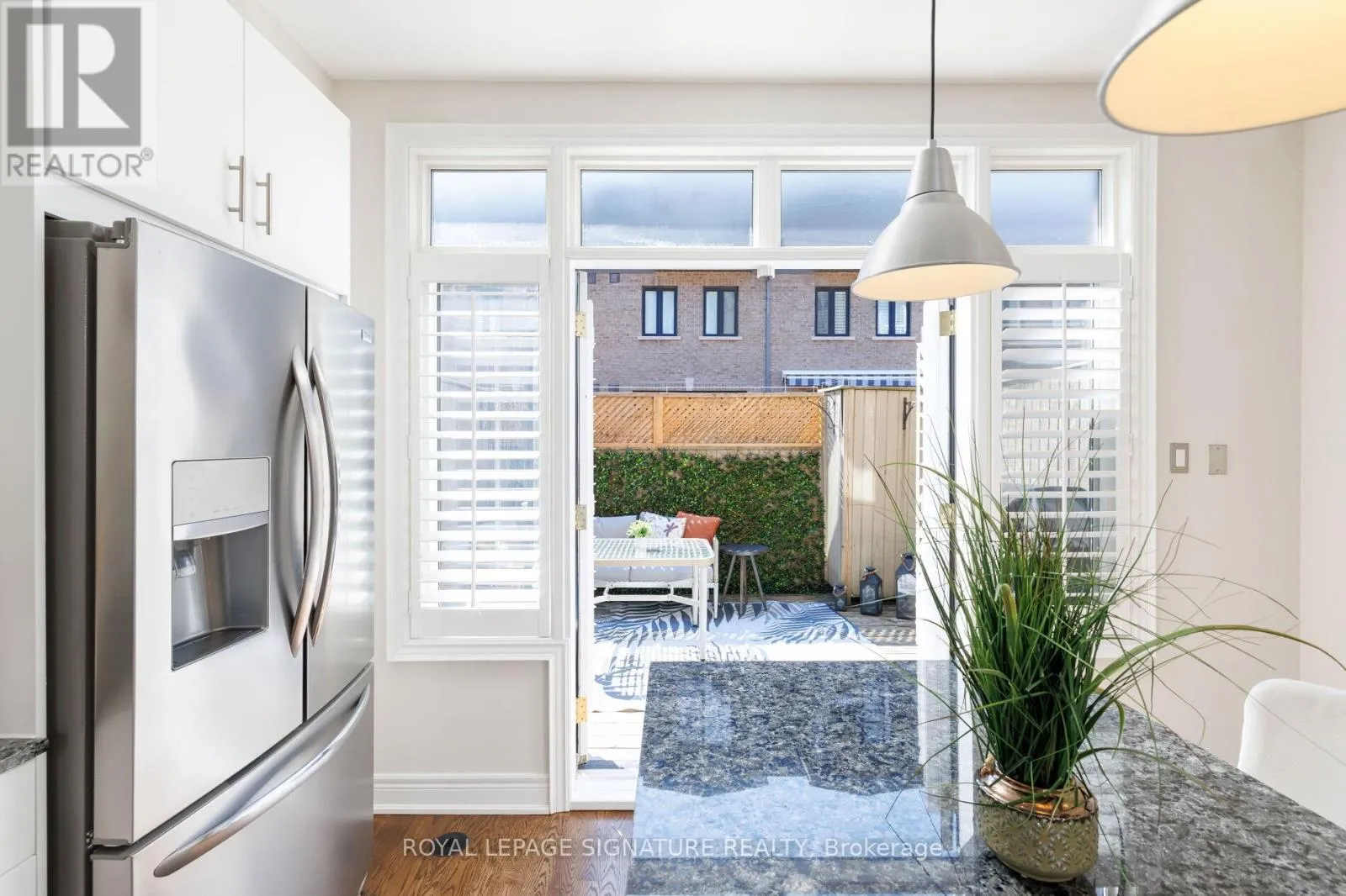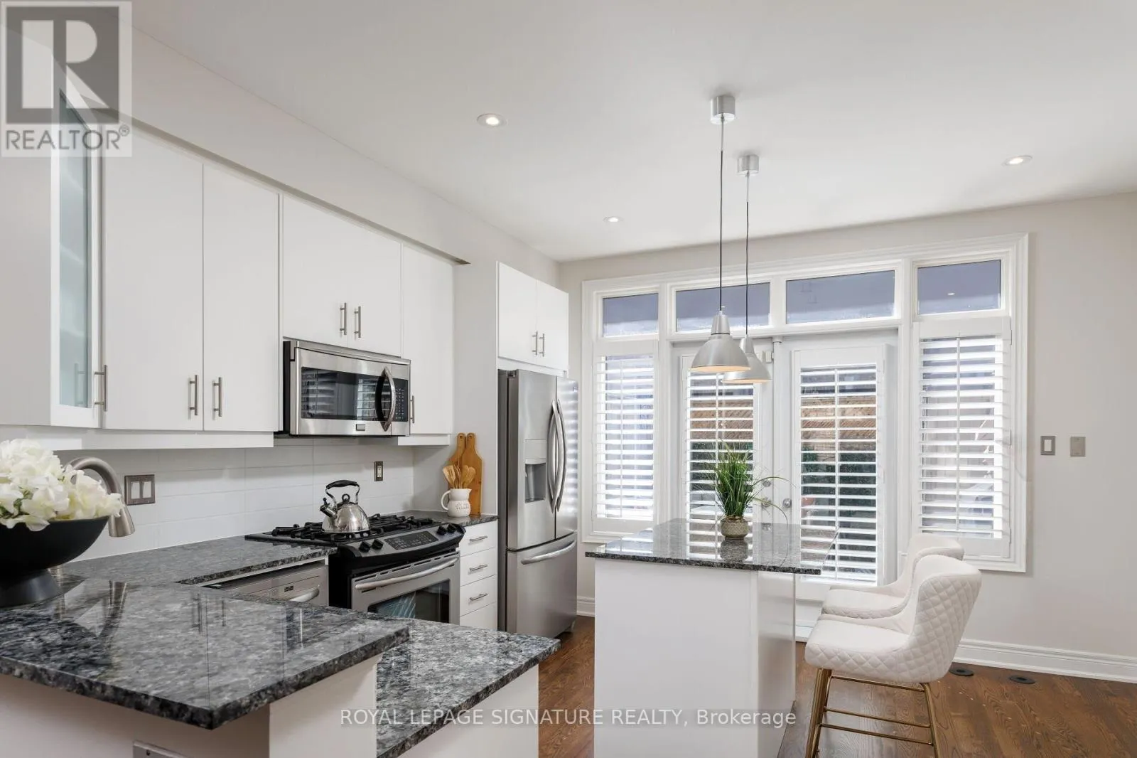 Islington AVe and Bloor St. W Welcome to this Freehold and beautifully upgraded townhome tucked away in a quiet and highly desirable Etobicoke community. This move in ready home offers a perfect blend of comfort, functionality, and lifestyle, with thoughtful upgrades throughout. The main floor features a private office with a door, ideal for working from home, along with an open concept layout enhanced by engineered hardwood floors, flat ceilings, and pot lights. The upgraded kitchen showcases renovated cabinetry with soft closing mechanisms, granite countertops, stainless steel appliances, an under-mount double sink, and a pantry extension for additional storage. Walk out to your private south facing patio oasis, bringing in abundant natural sunlight and complete with a gas hookup and awning, perfect for entertaining. The living and dining areas are elevated with crown molding, an upgraded light fixture, built in speakers, a gas fireplace, and custom cabinetry for added storage. All staircases have been fully renovated with red oak finishes and wrought iron pickets. Upstairs, the primary bedroom offers a true retreat with nine foot ceilings, two walk in closets, and a private balcony. The ensuite features a double sink, five piece layout, pot lights, and a jacuzzi whirlpool tub. Additional bedrooms include hardwood flooring and California shutters throughout. Recent updates include freshly painted areas with low VOC paint, refurbished floors and stairs, and updated grout work. The home also features a tankless system for hot water and heating.The roof has been proactively maintained with flat roof sections resealed using modified bitumen membrane, vents and stacks re caulked, and dormer valleys upgraded with ice and water shield. Located just steps to Islington subway, Kipling GO, parks, schools, and everyday amenities, with low POTL fees covering water, snow removal, garbage, recycling, and landscaping. A rare opportunity to own a turnkey home in a prime location. (id:27476)