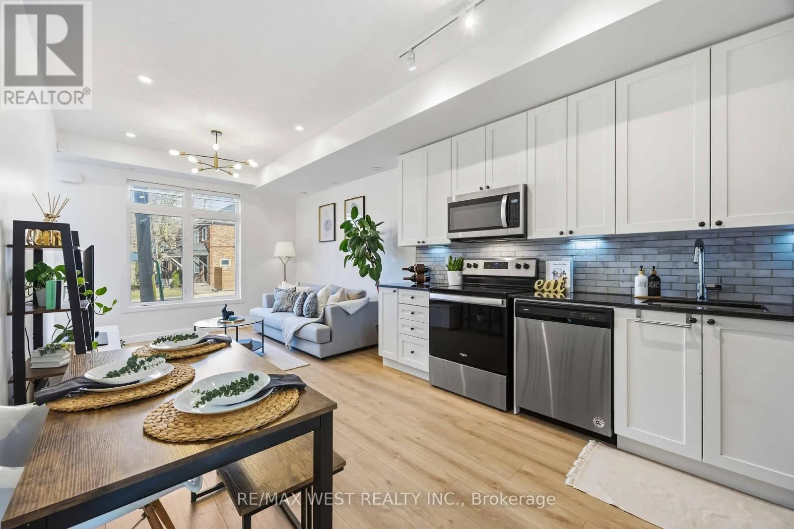 Rogers & Bicknell Welcome to 6 Bicknell Avenue Unit #1!! This bright and spacious, move-in-ready 2-bedroom, 1-bathroom corner unit located in the evolving Keelesdale community is a must see! Located near several shops, parks, libraries, bakeries, grocery, restaurants and so much more within walking distance. Enjoy walkable access to several schools, a 10-minute drive to one of Toronto's highest ranking French Schools, making it a perfect single-family residence. This meticulously maintained unit showcases 9-ft ceilings, upgraded light fixtures and pot lights on dimmable switches, ensuite laundry, stainless steel appliances, beautiful granite counters, a stylish backsplash throughout the kitchen along with new bright flooring within the contemporary open-concept. This unit includes a designated parking spot exclusively for residents, ample visitors parking, convenient bike storage and access to a charming courtyard with a pergola. Excellent transit options include several bus routes near your doorstep leading to the Bloor line, or the now open Eglinton Crosstown LRT at Keelesdale Station within 10 minute walking distance , a 10 minute drive to the Weston UP express with direct access to downtown or the Airport, and the future GO Transit stop at St. Clair-Old Weston Rd-keeping you well connected to city arteries. Experience the best of urban convenience in one of Toronto's rapidly evolving communities. Offer welcome anytime. 5% Draft Deposit. Offers submitted via email to investwithsabb@gmail.com Please allow 2 hrs for showing. (id:27476)