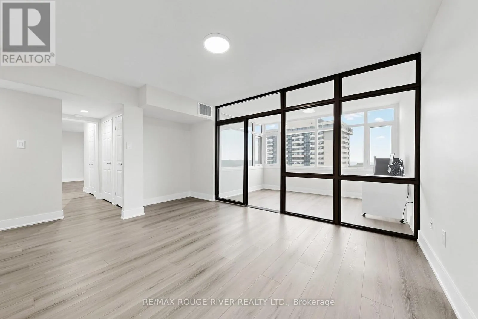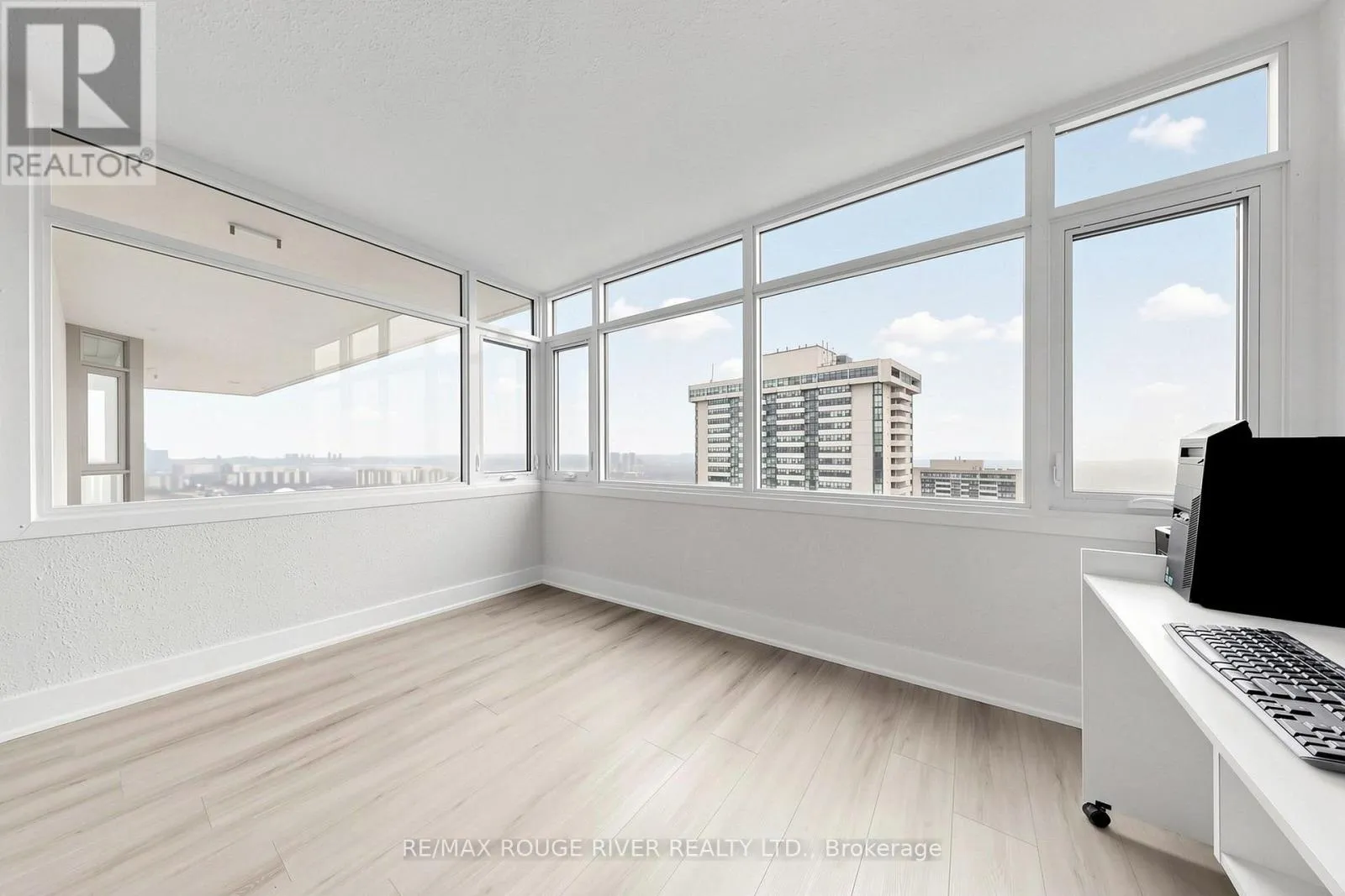 Don Mills/Finch Ave. E Welcome to your huge pie in the Skymark II by Tridel. This spacious 1645 sq. ft. 2+ Bedrooms, 2 1/2 Baths, Highly Desirable South/West facing corner lower penthouse suite with 2 walk outs to a large private balcony with unobstructed multiple views overlooking the City Skyline and Lake is in move in condition. The highly desirable split bedroom layout featuring not only large Living and Dining areas but also a Family Room and an enclosed solarium, perfect as a Work at Home Den. The large primary bedroom has an updated Shower Stall with safety bars, walk in closet and another set of double closets. Ensuite storage/locker room is super convenient. The spacious second bedroom also has a full ensuite bath and walk out to the south facing balcony. The brand new professional updates include: quality vinyl flooring, light fixtures, door hardware, freshly painted through out. The parking spot is very close on P1 just steps from the elevator. Maintenance Fees include ALL utilities and Cable TV, Internet package! Enjoy full access to resort style amenities in this well managed and maintained building. Residents enjoy 24 hour gated security, building concierge, party & recreation rooms, indoor/outdoor pools, extensive gym, squash court, tennis courts, golf simulator, billiards, library, games & card room, beautifully landscaped gardens, ample visitor parking & handicap parking. Prime North York, Seneca Hill Location with easy access to transit just outside the complex , Highways 404, 407, Grocery store, Shopping, Medical, Fairview Malls, Parks and excellent Schools are all close by. Floor plans are attached. (id:27476)