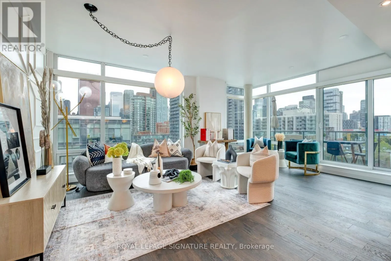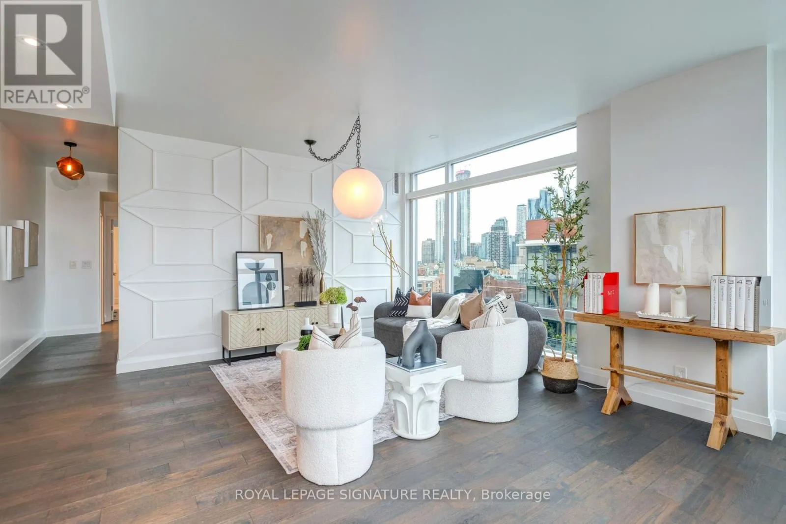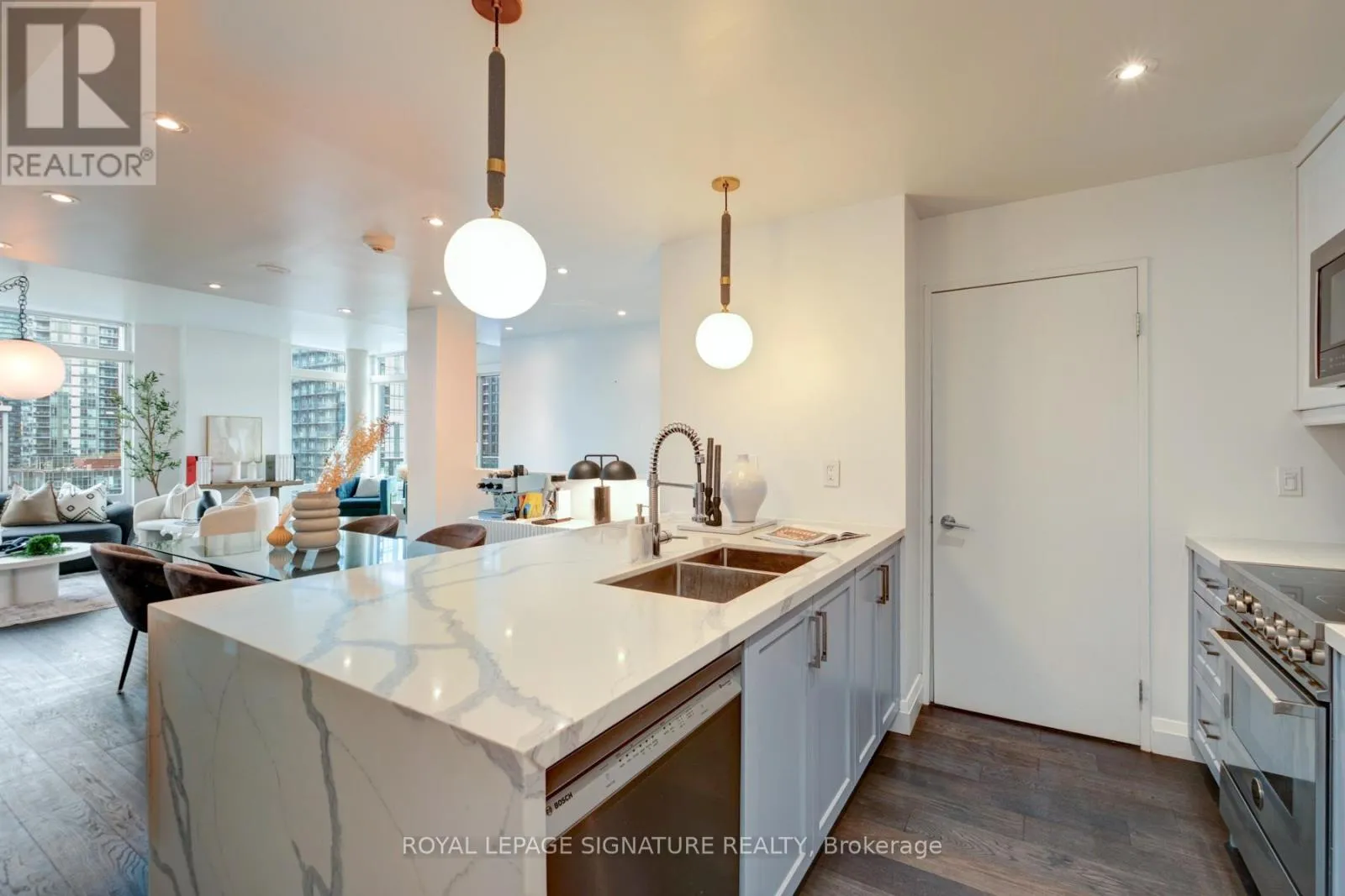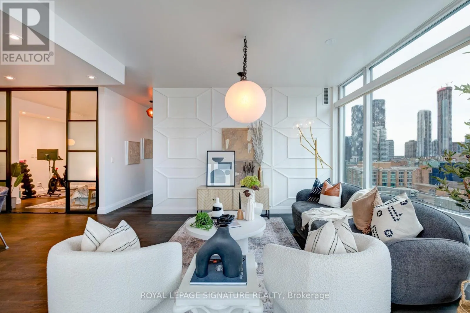 Cross Streets: Adelaide St E/Sherbourne. ** Directions: S/W CORNER OF Adelaide St E/Sherbourne. Experience elevated city living in this stunning northwest corner sub-penthouse with over 1,320 sq. ft. of thoughtfully designed space. With 3 bedrooms, 2 baths, and two private balconies this home is made for entertaining and everyday comfort.Soak in incredible skyline views through floor-to-ceiling windows that flood the space with natural light. The open-concept living and dining area flows seamlessly into a chef's kitchen featuring high-end appliances, sleek cabinetry, and modern finishes that make cooking and hosting effortless.The primary suite offers a peaceful retreat with a custom walk-in closet and a marble ensuite complete with a double vanity and glass shower. The second bathroom has been beautifully updated with a deep soaker tub - the perfect place to unwind after a busy day. Upgraded flooring throughout adds warmth and sophistication to every room.All of this just steps from St. Lawrence Market, King St E, the Canary District, and the Distillery District - where Toronto's best dining, shopping, and culture come together. Designed for those who love style, convenience, and connection, this sub-penthouse is urban living at its best. (id:27476)