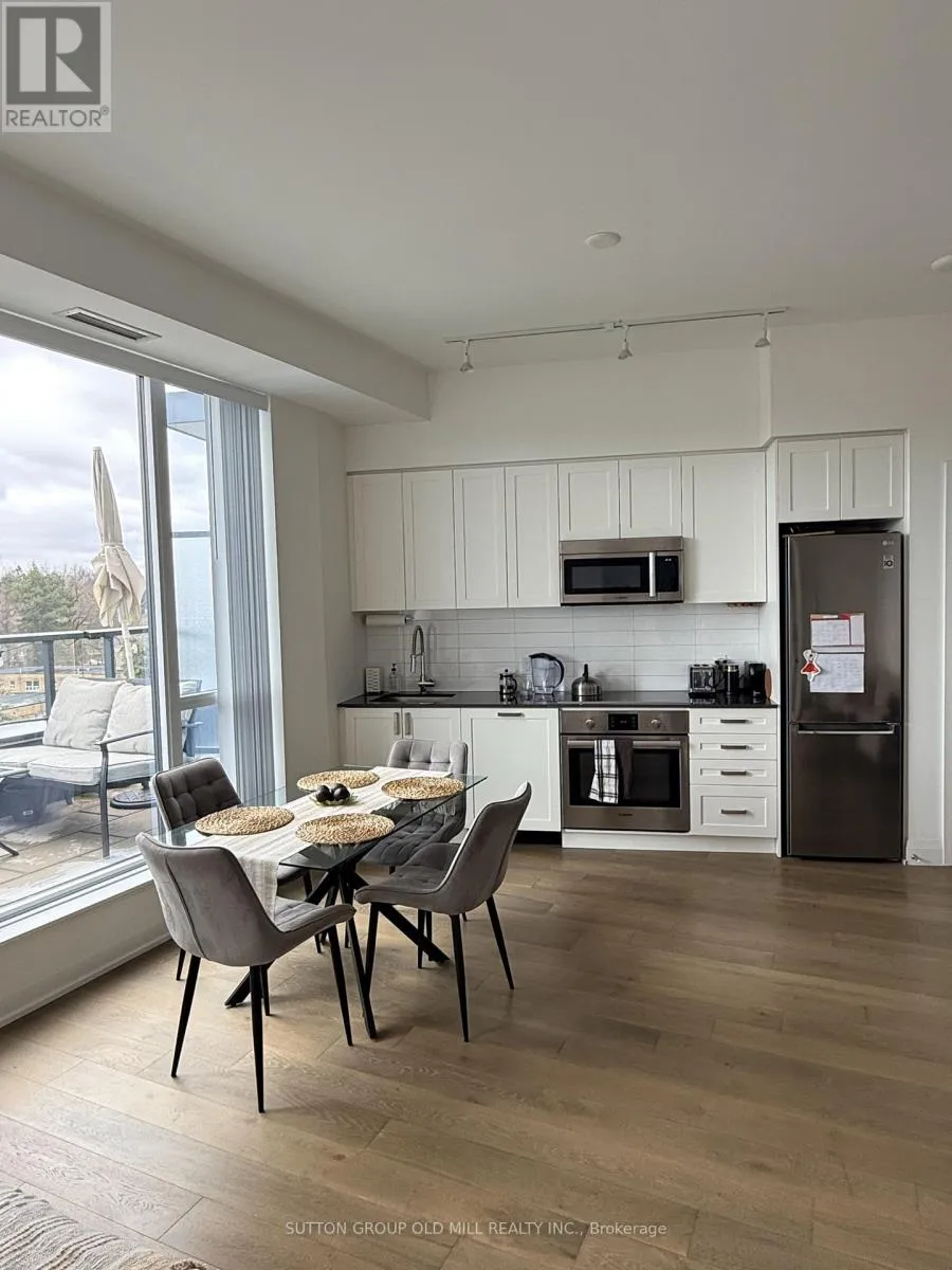 Cross Streets: Royal York/Ashley. ** Directions: North East of Ashley/The Kingsway. Refined living at this boutique residence on The Kingsway. This beautifully appointed 1+1 bedroom suite offers a thoughtfully designed open-concept layout, enhanced by soaring 10' ceilings and seamless indoor-outdoor flow. An expansive 31' southwest-facing balcony spans the entire suite, creating an exceptional extension of the living space-ideal for entertaining or quiet relaxation.The contemporary kitchen is finished with quartz countertops and stainless steel Bosch appliances, blending understated elegance with everyday functionality. The spacious den provides flexibility for a home office or guest space, while an extra-large laundry room offers added convenience and storage rarely found in condominium living. Residents enjoy access to an exceptional collection of amenities including concierge service, guest suites, fitness studio, rooftop terrace with BBQs, party room, private dining room, screening room, business centre, meeting room, games lounge, pet wash station, electric vehicle charging stations, and bicycle parking. Situated in one of Etobicoke's most prestigious neighbourhoods, just steps to Humbertown Plaza, and within close proximity to top-rated schools, parks, public transit, golf, and major highways. A sophisticated lifestyle opportunity in a highly sought-after Humber Valley Village address. (id:27476)