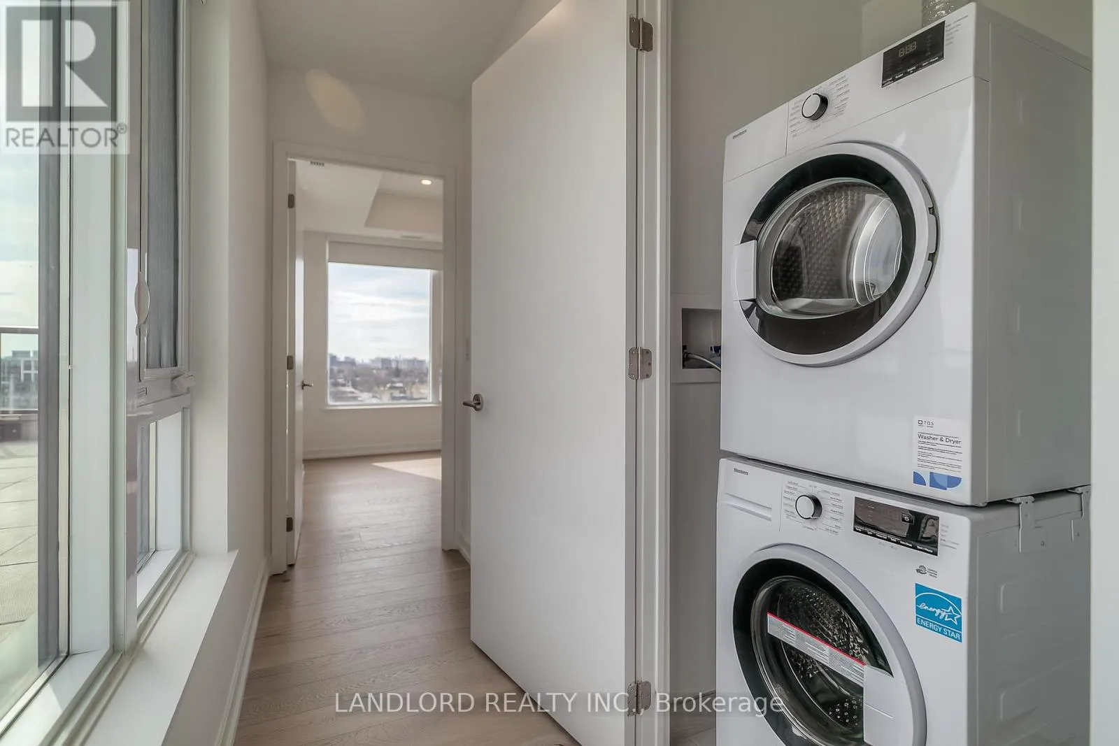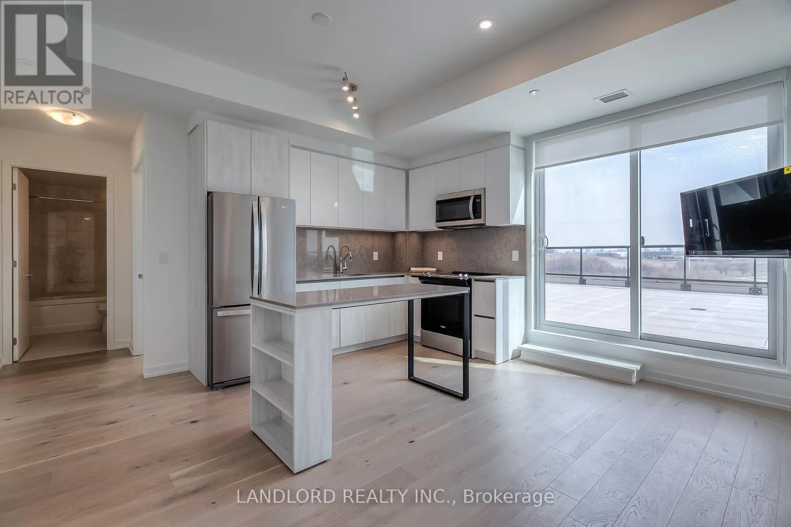 Cross Streets: Keele St & Maryport Ave. ** Directions: via 3100 Keele lobby. Straight from the Builder & HST-exempt! Never-occupied penthouse-level 893 sqft suite with incredible 1230 sqft terrace overlooking Downsview Park! This 2-bedroom 2.5 bathroom suite includes one parking and locker plus option to add another of either. A part of The Keeley community: the new development overlooking the lake of Downsview Park and walking distance to Downsview train & subway stations (little as ~20 minutes ride to downtown)! A split bedroom layout with 9' ceilings, open plan kitchen/living area that walks out to the east-exposed terrace, a 4pc bathroom past the kitchen, matching kitchen island, built-in double closet. Primary bedroom (with 3pc ensuite, his and hers closets, east exposure overlooking terrace. Second bedroom (with built-in double closet, adjacent the 4pc bathroom, east exposure overlooking terrace). Floor plan among the listing images and attached to listing. Features and finishes include: engineered wood flooring throughout, stone countertops & matching stone backsplash, Whirlpool stainless steel appliances, Blomberg laundry machines, two-tone kitchen cabinets, tiled tub & shower stalls, pot lights, and more! || Appliances: Fridge, electric range, range microwave, dishwasher, washer, dryer. All existing window coverings. All existing light fixtures. || Building Amenities: Refer to listing images to see all! (id:27476)