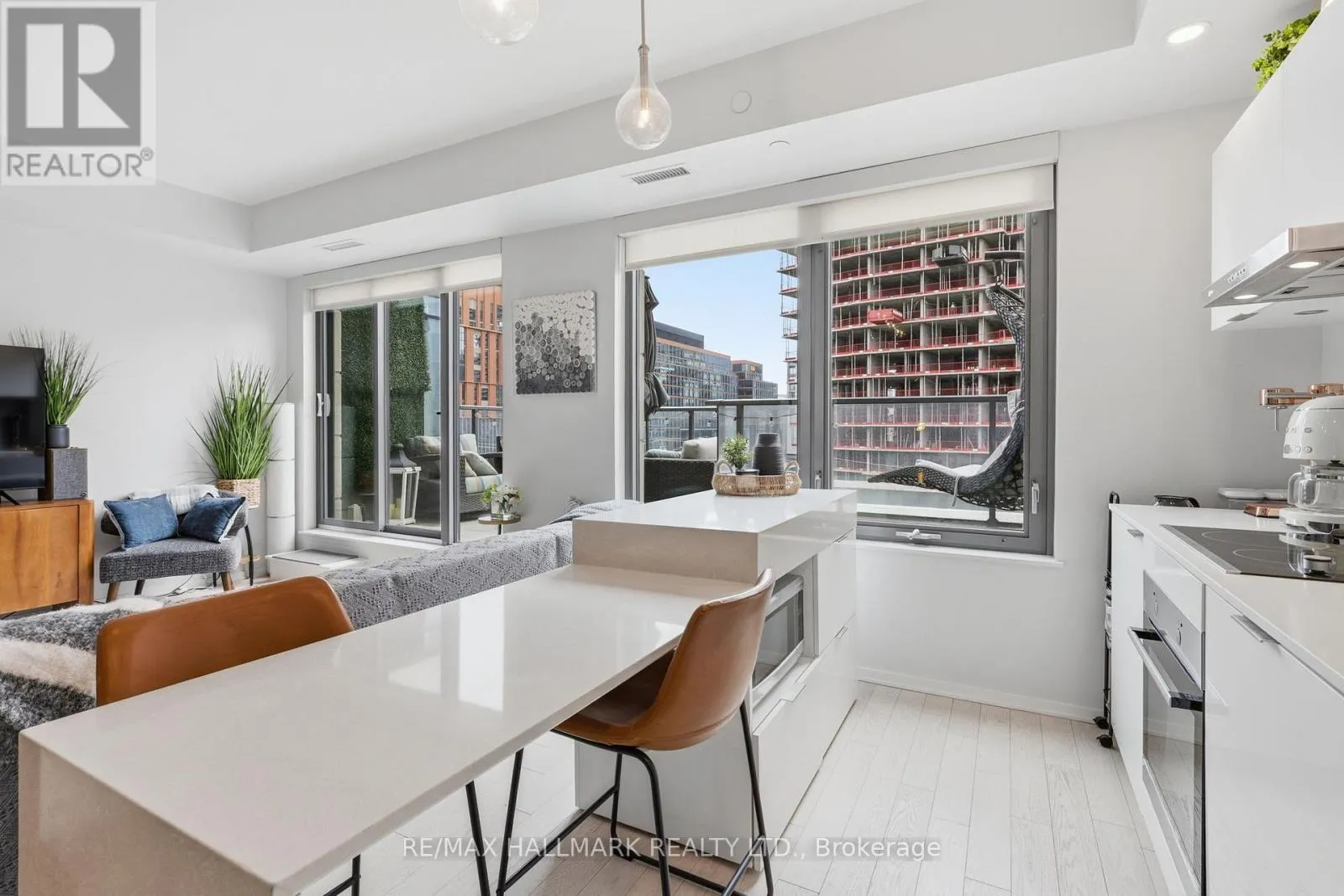 Queens Quay E & Bonnycastle Welcome to the award-winning Monde Condominiums by the esteemed Great Gulf! Discover the tranquil waterfront lifestyle in this beautiful 663 square feet generous sized one bedroom unit with walkout to a large 155 square feet terrace featuring beautiful lake view. This wider layout is unique and provides ample of natural light! Also featuring 9 feet smooth ceilings, upgraded kitchen cabinets with Caesar Stone countertops, and centre island. Includes Parking and Locker unit (located on same floor for extra convenience)! Sunbathe by the rooftop pool, work up a sweat in the state of the art gym, and enjoy the living wall in the lobby. There is so much to discover in this Leed Certified Building! Close to TTC, steps to Waterfront, George Brown Campus, Distillery District, St Lawrence Market, Sugar Beach, Toronto Island Park, Grocery Stores, LCBO, Restaurants, Cafes, and so much more! (id:27476)
