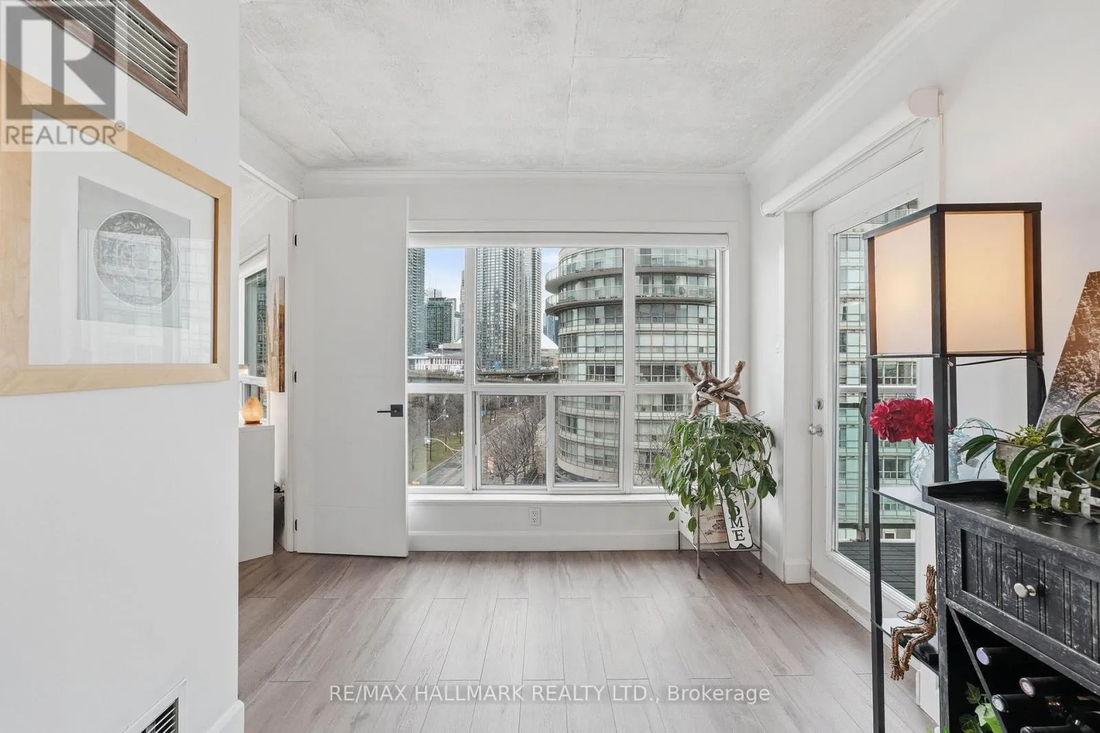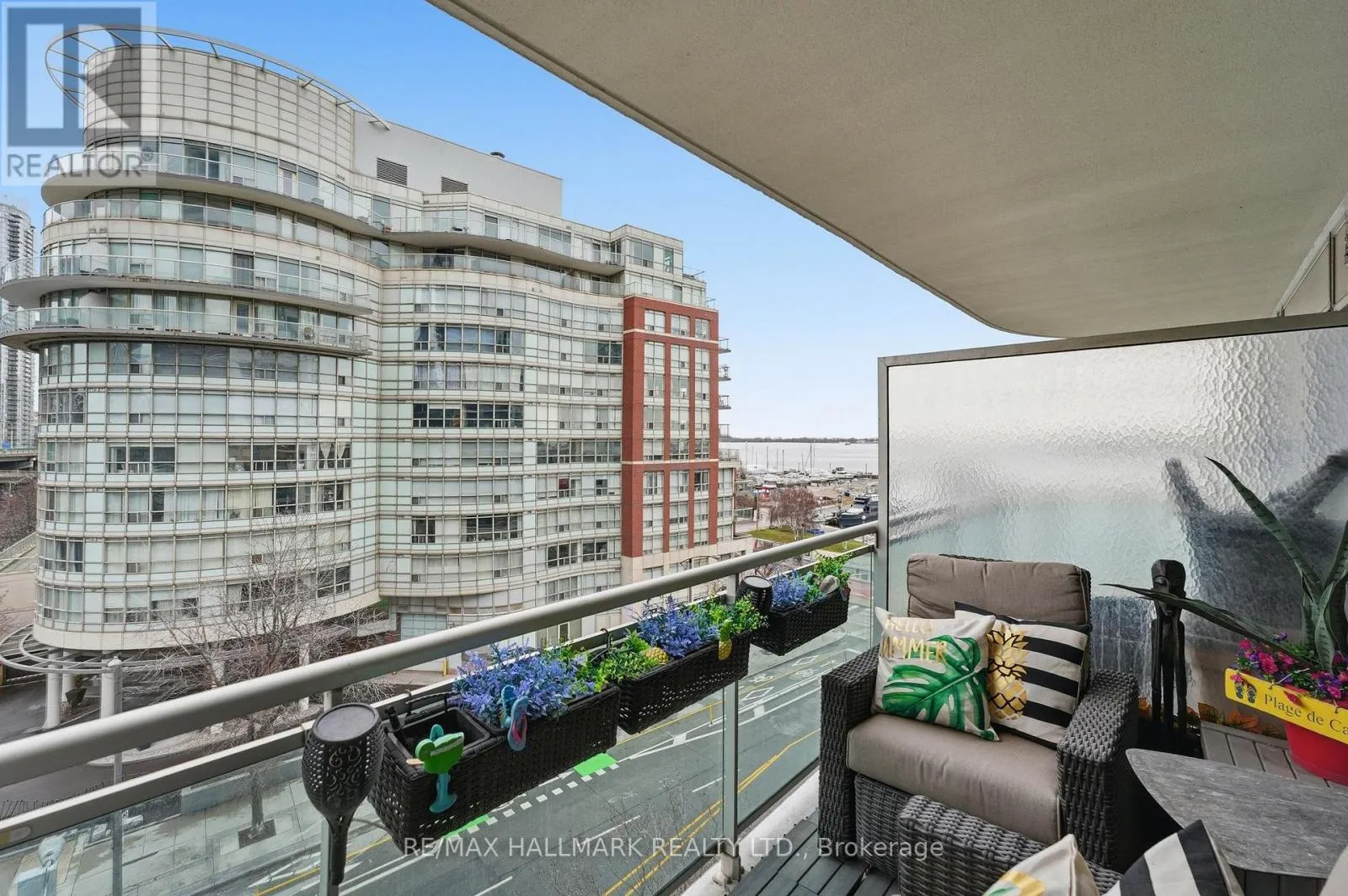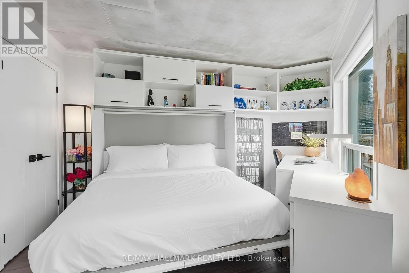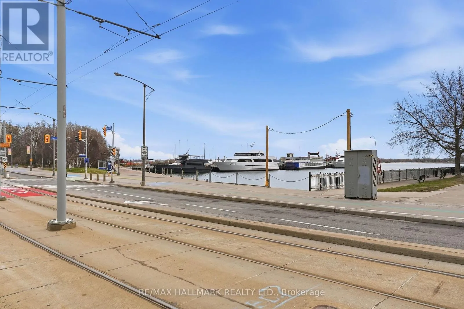 Cross Streets: Queens Quay West & Dan Leckie Way. ** Directions: South on Dan Leckie Way, West on Queens Quay West. This Queens Harbour 2 bed suite, tucked along Toronto's downtown waterfront, blends nearly $95K in modern upgrades, custom finishings, and exposed concrete ceilings for a subtle loft-like feel. The layout is thoughtfully designed, with defined living spaces, separated bedrooms, a fully renovated shared 4pc bath, and two walk-outs to a southeast-facing balcony with lake and city views. The kitchen anchors the open concept living and dining space with a custom granite peninsula, breakfast bar, matching backsplash, and LG stainless steel appliances. The primary bedroom comfortably fits a king-size setup, features a custom walk-in closet, and a clean, modern 5pc ensuite. The second bedroom, enclosed with double doors, shifts easily between a dedicated bedroom, guest room, office, or an open extension of the living space depending on the day. Daily errands are simple, with Loblaws, Farm Boy, LCBO, Shoppers Drug Mart, and more just a short 4 minute walk away, while evenings and weekends can take you to Blue Jays or Maple Leafs games, headliner concerts, or vibrant King West restaurants all within 20 minutes on foot. TTC streetcar service runs right outside the building with a direct 15-20 minute connection to Union Station transit lines. Well-managed building with all utilities included in maintenance fees - water, heat, central A/C, hydro, common elements, building insurance, one parking space and a good-sized locker. (id:27476)