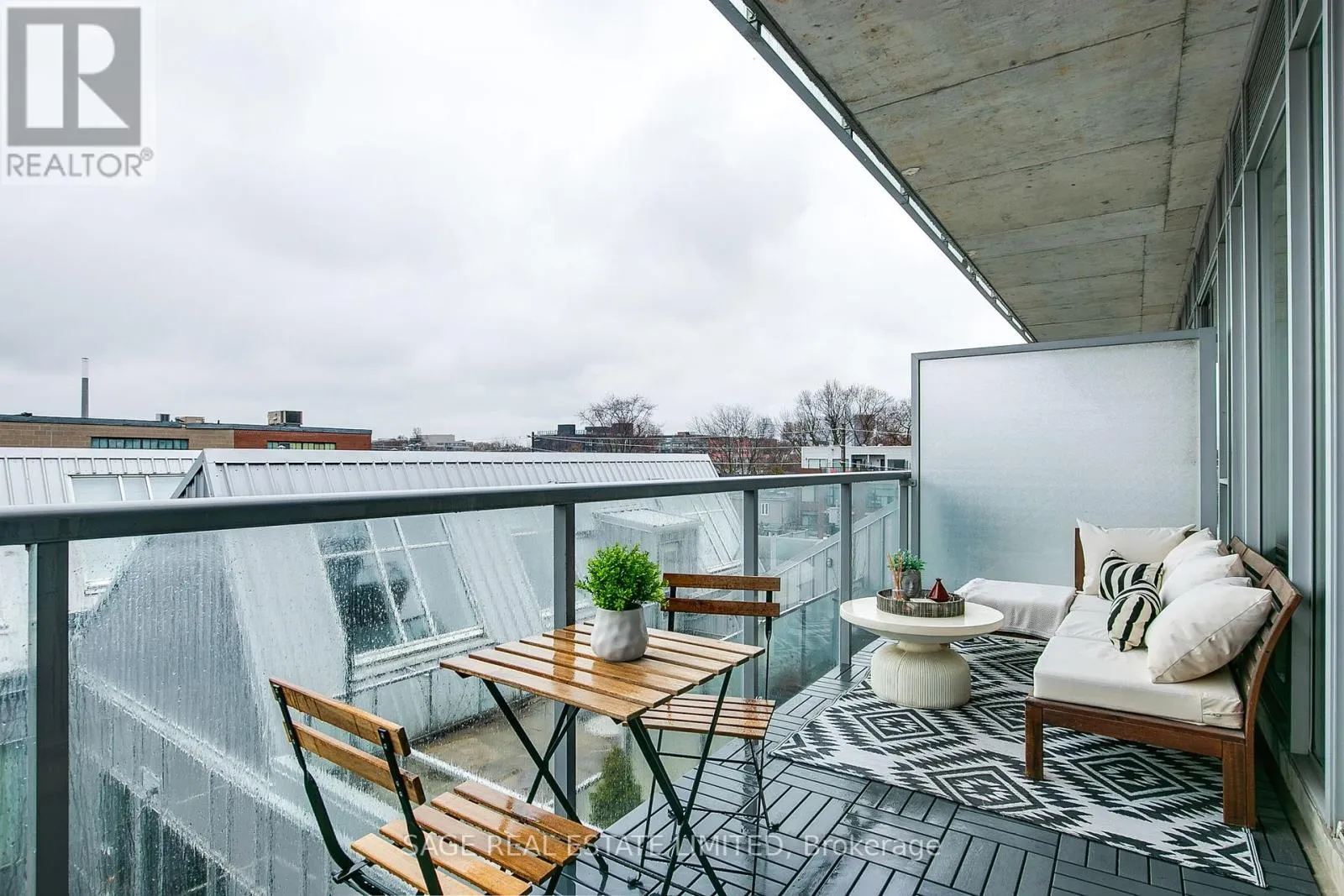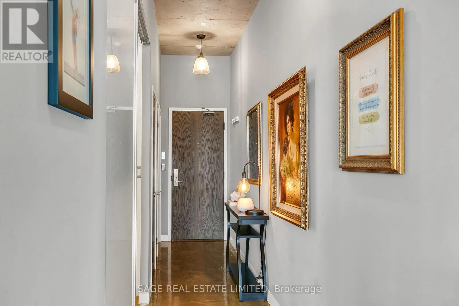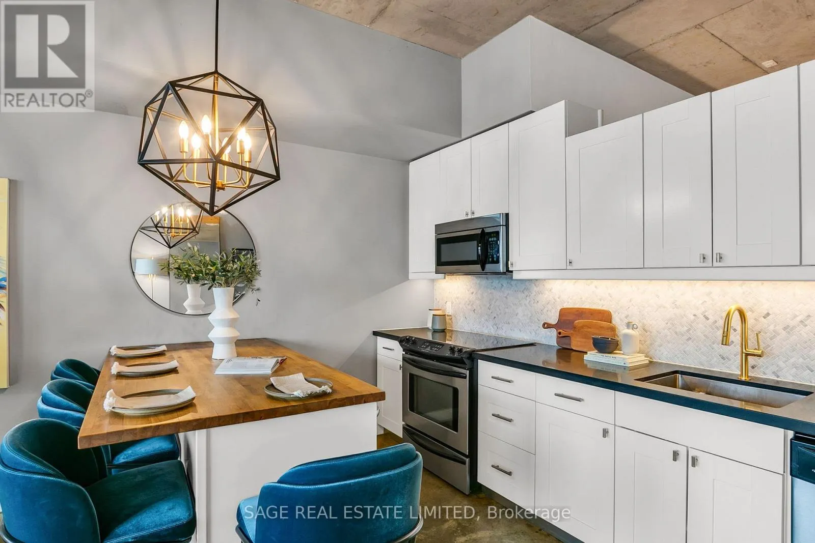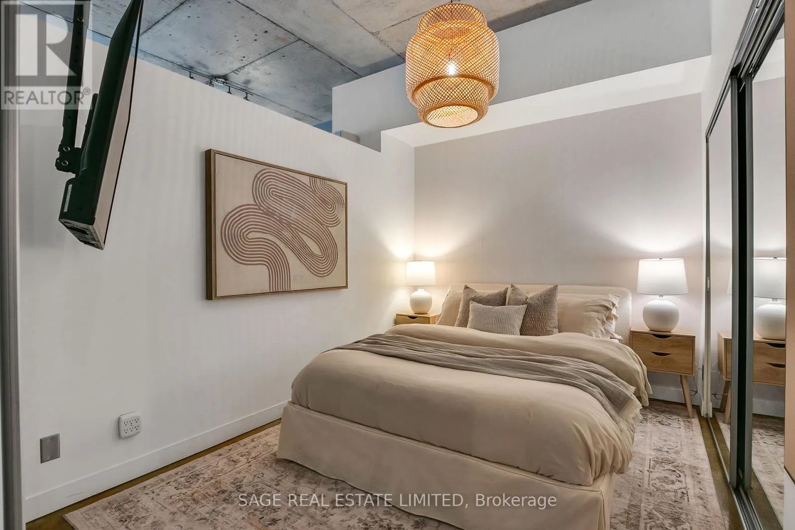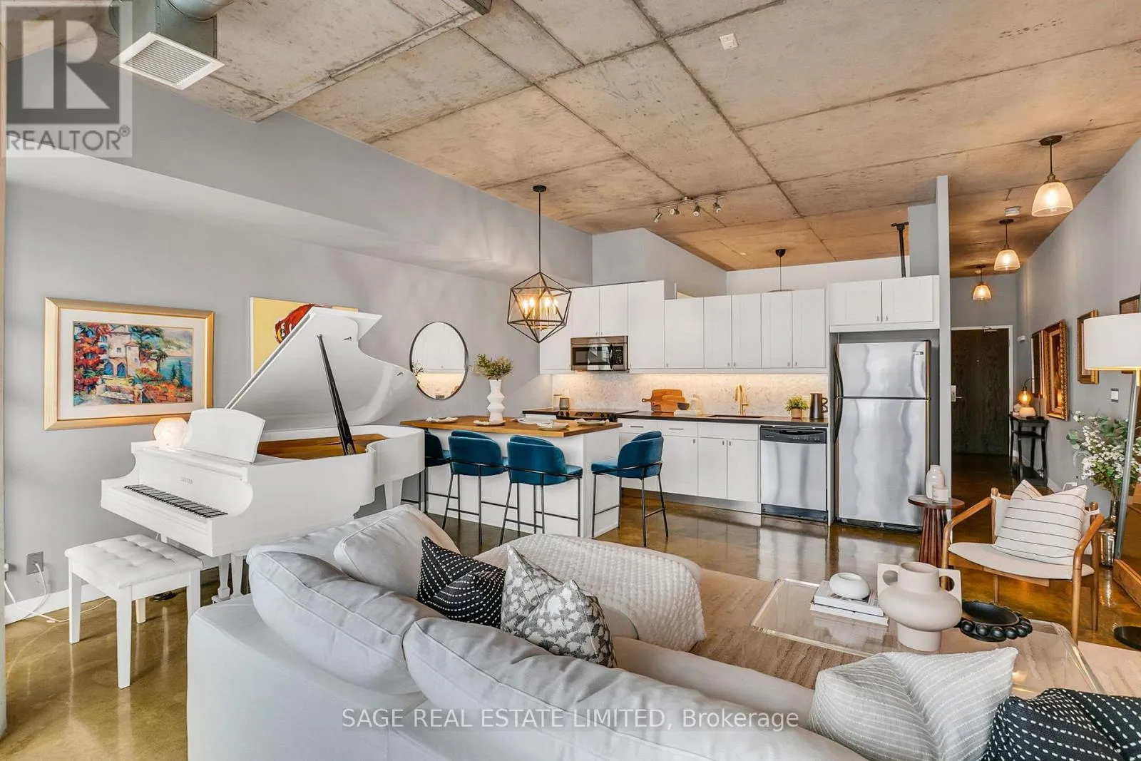 Cross Streets: Queen St E & Carlaw Ave. ** Directions: From Queen St E: north on Carlaw Ave, east on Dundas St E, south on Boston Ave (park on Boston). Welcome to The Printing Factory Lofts in the heart of Leslieville, Toronto's east-end neighbourhood known for its independent spirit, vibrant Queen Street corridor, and authentic hard loft conversions. This south-facing 1 bedroom, 1 bathroom residence offers over 700 square feet of thoughtfully designed living space in one of the area's most coveted industrial buildings. Inside, original green stained concrete floors ground the space in true hard loft character. A soaring heritage pillar is revealed as you move through the unit, intentionally positioned to let the layout unfold with subtle architectural drama. The updated kitchen and modernized bathroom feature clean, contemporary finishes that contrast beautifully with the building's industrial roots. Nothing to renovate. Nothing to rethink. Just move in. Living here means stepping directly into the rhythm of Leslieville. Morning runs to Woodbine Beach. Winter skating at nearby neighbourhood parks. Swim at local community pools. Patio evenings along Queen Street East. A two-minute walk to Crow's Theatre. Quick streetcar access downtown and easy routes out of the city via the DVP and Lakeshore. Ideal for young professionals seeking a stylish Toronto hard loft with downtown access, or for end users who value authentic architecture, community energy, and lifestyle over cookie-cutter condo living. This is for buyers who understand that location is not just proximity. It is immersion. This is where Leslieville actually happens. (id:27476)