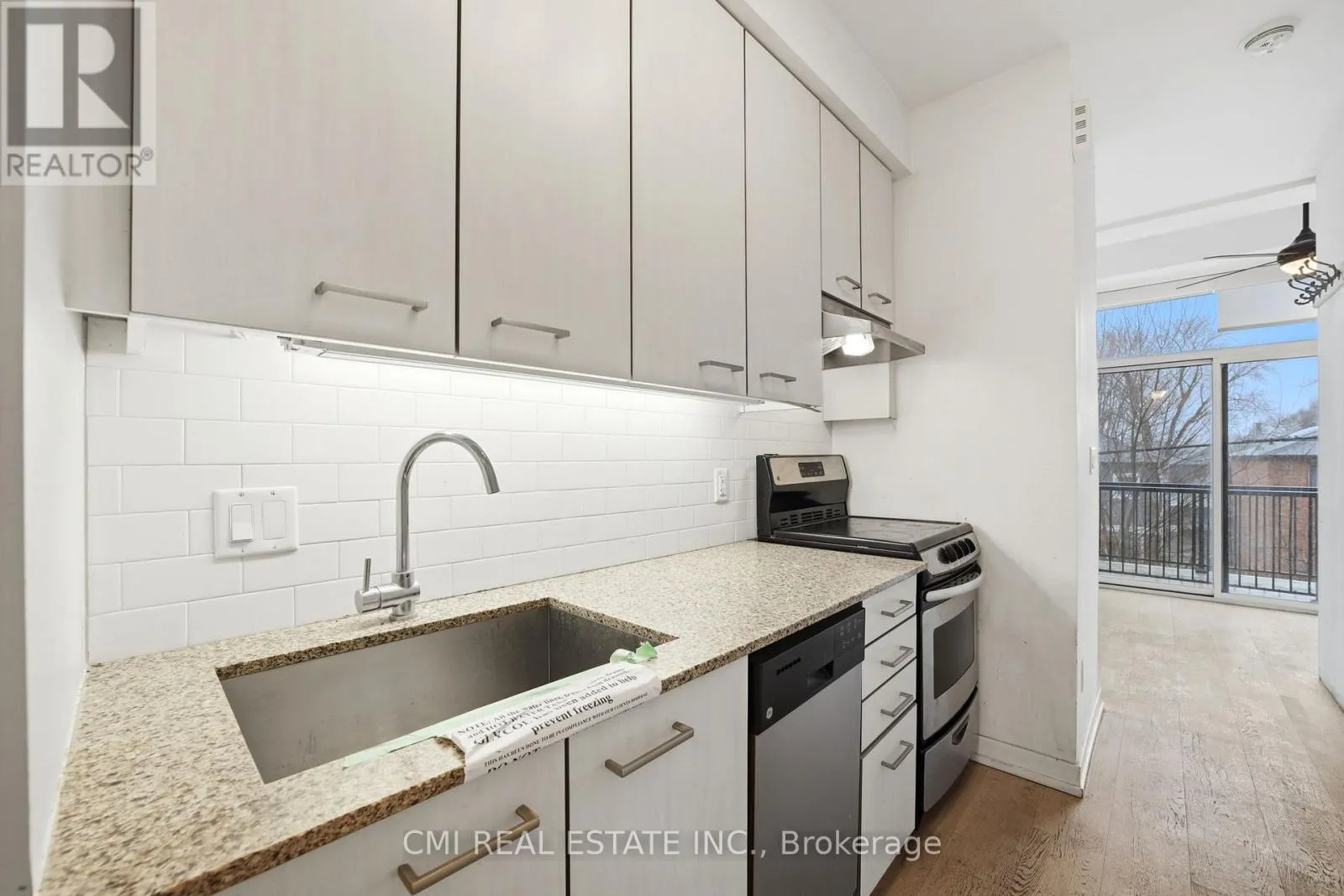 Gerrard & Greenwood Modern and private one-bedroom condominium in boutique East Village Leslieville. This upgraded end unit features contemporary designer finishes throughout, including engineered hardwood flooring, a sleek kitchen with quartz countertops, custom cabinetry, and thoughtfully selected designer details. Expansive south-facing windows flood the space with natural light. Enjoy outdoor living on the large 112 sq. ft. ground-floor patio with unobstructed southern exposure and peaceful backyard views, complete with a gas BBQ hookup. Ideally located just steps to Leslieville shops, the farmers' market, Michelin Guide-listed restaurants, streetcar access, live music venues, parks, and more. (id:27476)