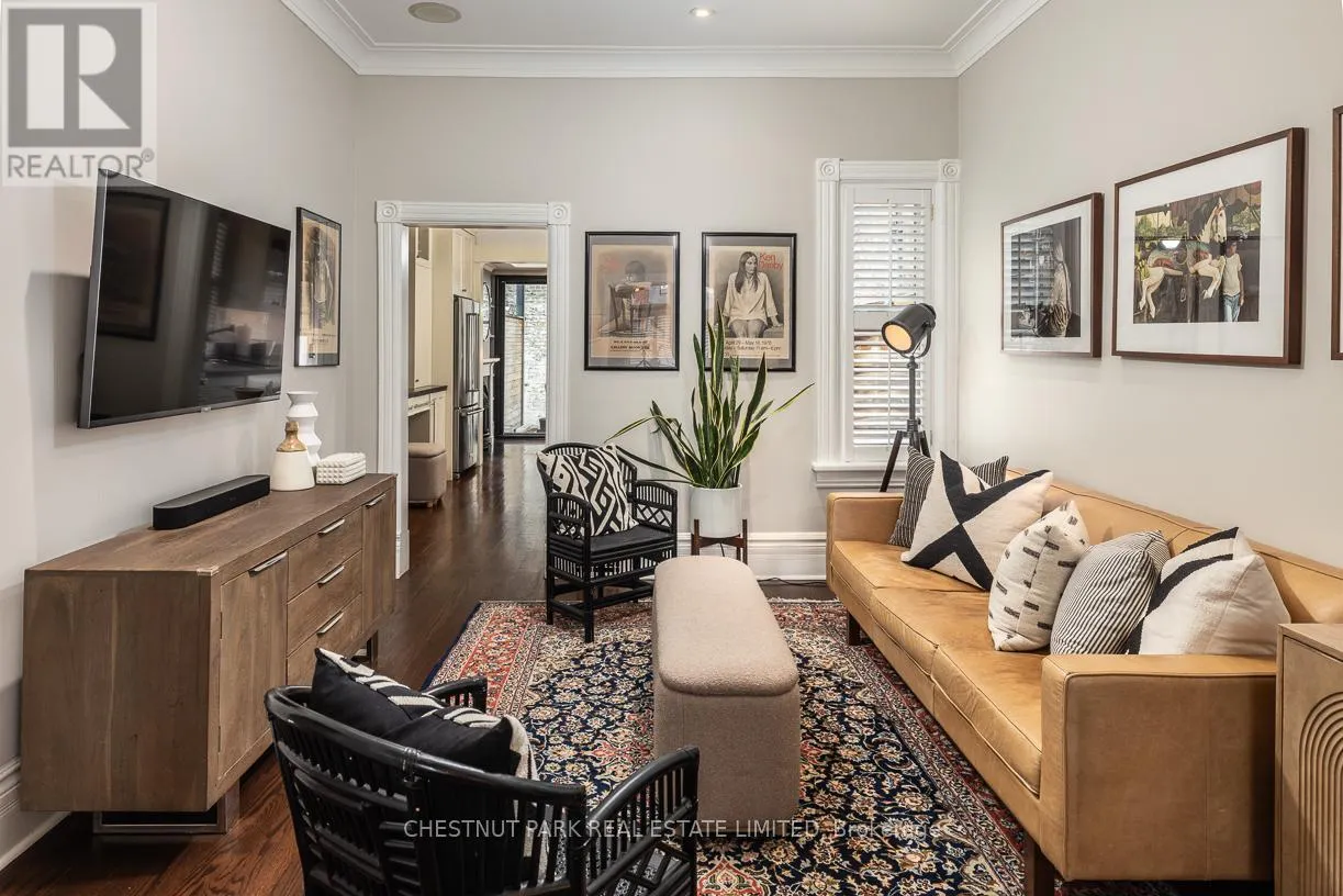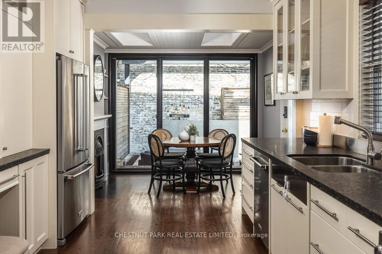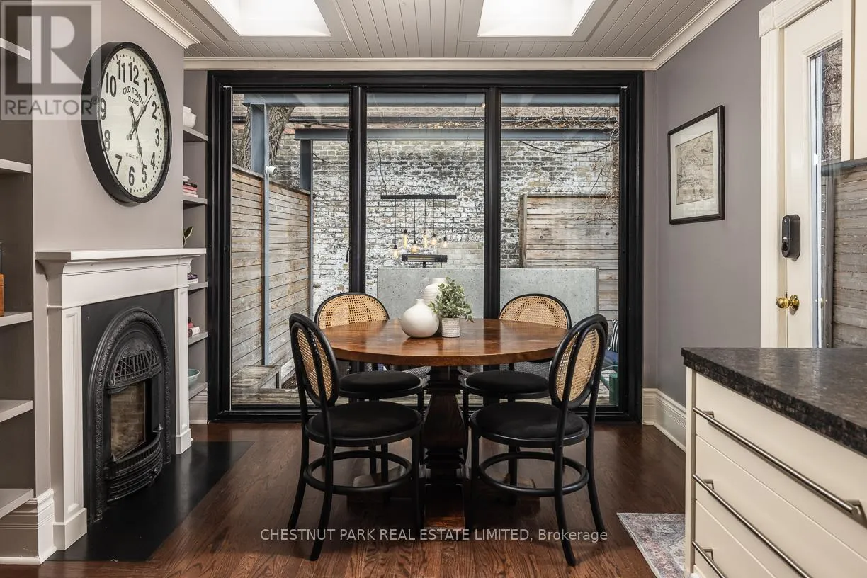 Yonge St & Shaftesbury Ave Summerhill coveted end-of-row townhome on a quiet cul-de-sac, featuring a very highly desirable façade. Extensively renovated while maintaining the home's original character. This home is located in the sought-after Cottingham Jr. PS district. Some wonderful features include custom millwork in all three bedrooms and KitchenAid stainless steel appliances in the kitchen. Enjoy the covered front porch, perfect for reading or morning coffee. The main floor extension offers a cozy family room or possible breakfast area off the kitchen, complete with an electric fireplace, floor-to-ceiling sliding glass doors, and windows that look out onto a backyard with stunning exposed brick feature wall. Spacious dining room, ideal for entertaining and hosting holidays. The second bedroom features a skylight and a large double closet. Functional laundry room with new Bosch washer and dryer (2025). Situated on an incredibly bright, west-facing lot. The fully landscaped, low-maintenance front and backyard feature decking, built-in planters, and stylish steel accent beams. Enjoy the benefits of end-of-row living with the feel of a semi-detached home, complete with unobstructed south and west light and direct backyard access. Thoughtfully designed exterior side storage accommodates garbage and recycling bins, bikes, and equipment, complemented by a backyard shed offering additional storage, with a Tesla EV charger conveniently installed at the rear. Just a 3-minute walk to Summerhill Subway Station and the area's shops and amenities, including Scrivener Square (flagship LCBO), Terroni, The Toronto Lawn Tennis Club, B&R, and the York Racquet Club. Steps to the Rosedale Ravine system with scenic walking and hiking trails, and just minutes to David Balfour Park. A stylish and functional opportunity to own in one of Toronto's most desirable neighbourhoods of Rosedale / Summerhill. (id:27476)