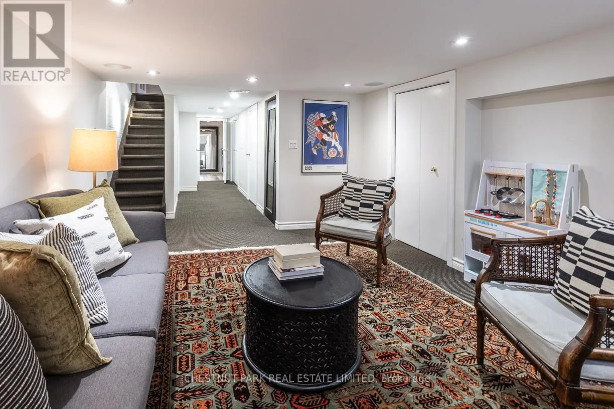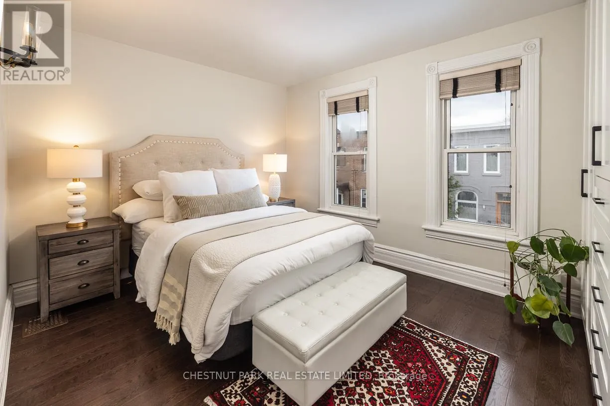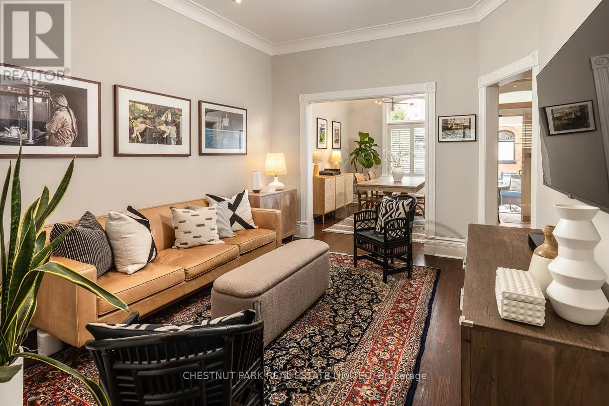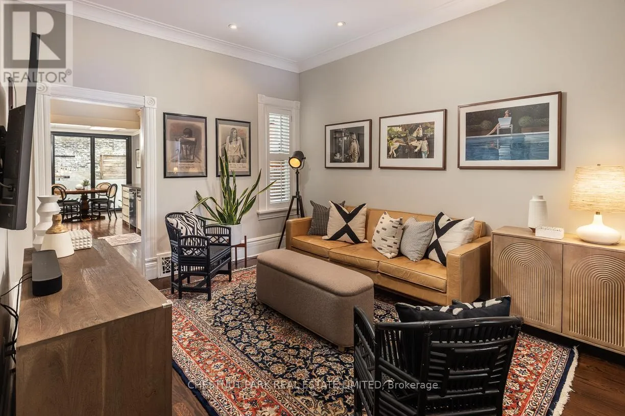 Yonge St & Shaftesbury Ave Summerhill coveted end-of-row townhome on a quiet cul-de-sac, featuring a very highly desirable façade. Extensively renovated while maintaining the home's original character. This home is located in the sought-after Cottingham Jr. PS district. Some wonderful features include custom millwork in all three bedrooms and KitchenAid stainless steel appliances in the kitchen. Enjoy the covered front porch, perfect for reading or morning coffee. The main floor extension offers a cozy family room or possible breakfast area off the kitchen, complete with an electric fireplace, floor-to-ceiling sliding glass doors, and windows that look out onto a backyard with stunning exposed brick feature wall. Spacious dining room, ideal for entertaining and hosting holidays. The second bedroom features a skylight and a large double closet. Functional laundry room with new Bosch washer and dryer (2025). Situated on an incredibly bright, west-facing lot. The fully landscaped, low-maintenance front and backyard feature decking, built-in planters, and stylish steel accent beams. Enjoy the benefits of end-of-row living with the feel of a semi-detached home, complete with unobstructed south and west light and direct backyard access. Thoughtfully designed exterior side storage accommodates garbage and recycling bins, bikes, and equipment, complemented by a backyard shed offering additional storage, with a Tesla EV charger conveniently installed at the rear. Just a 3-minute walk to Summerhill Subway Station and the area's shops and amenities, including Scrivener Square (flagship LCBO), Terroni, The Toronto Lawn Tennis Club, B&R, and the York Racquet Club. Steps to the Rosedale Ravine system with scenic walking and hiking trails, and just minutes to David Balfour Park. A stylish and functional opportunity to own in one of Toronto's most desirable neighbourhoods of Rosedale / Summerhill. (id:27476)