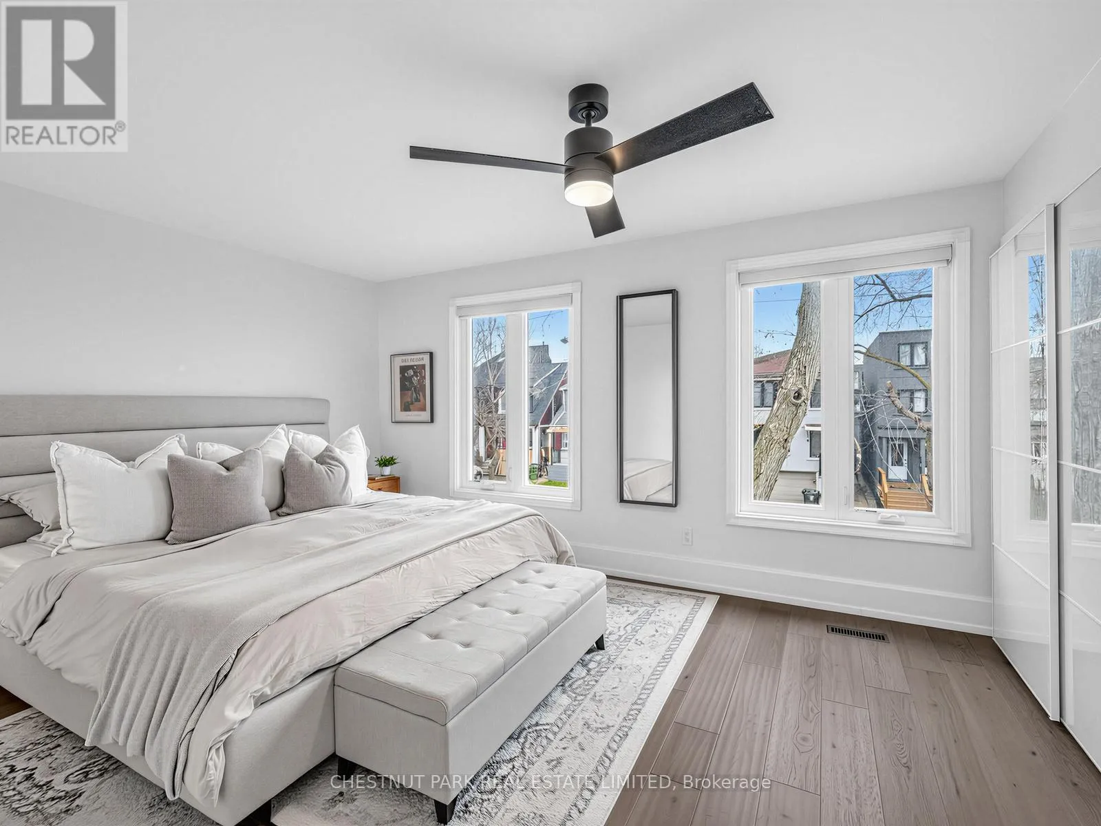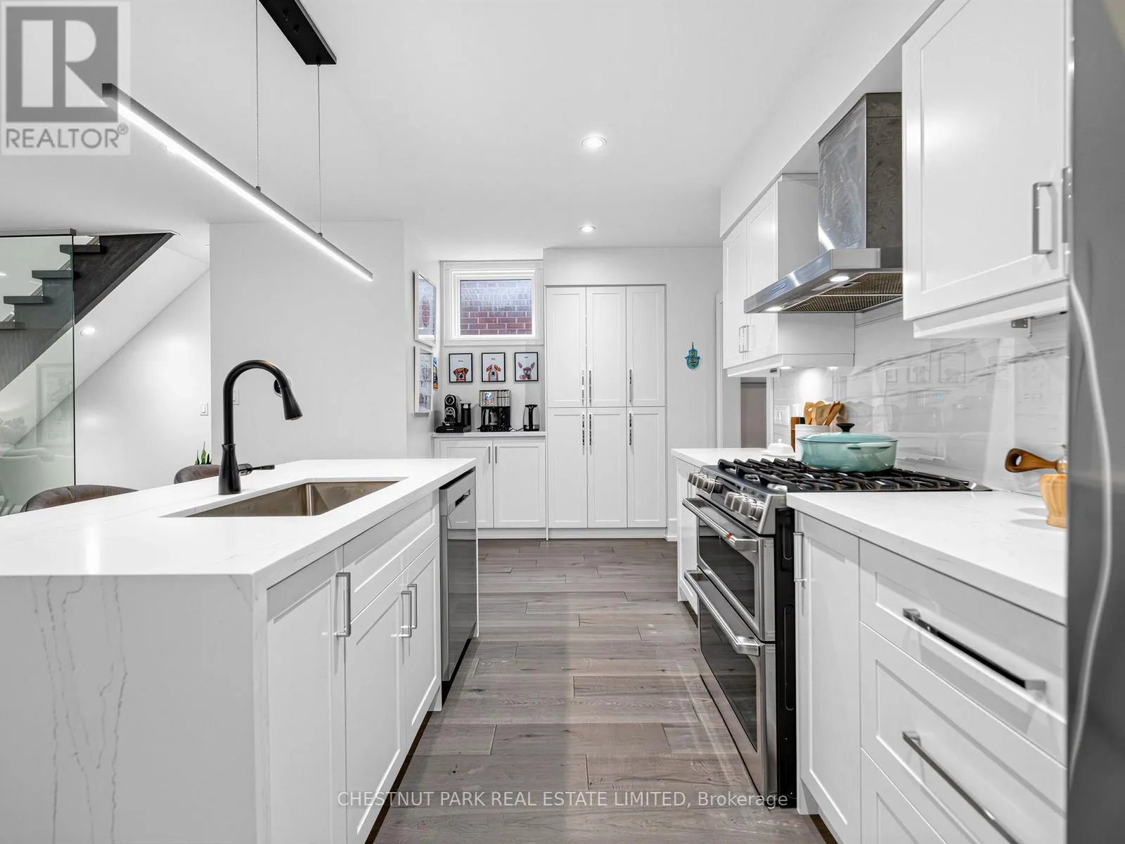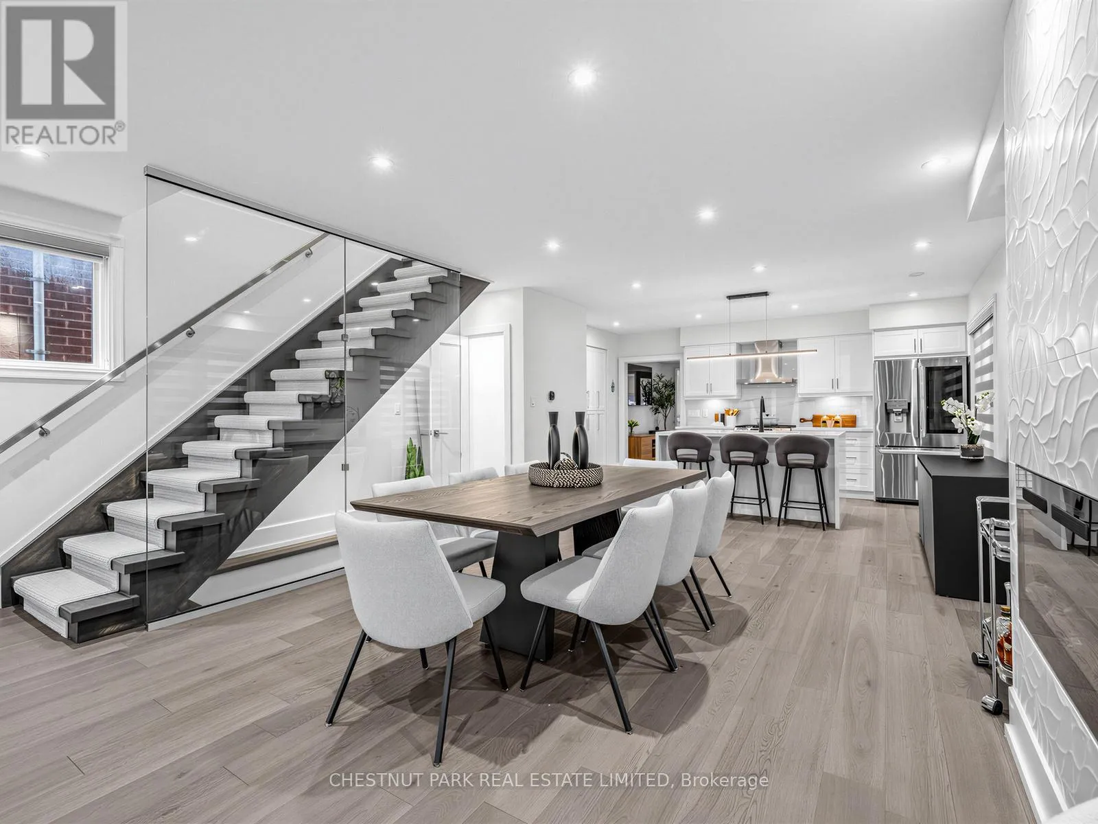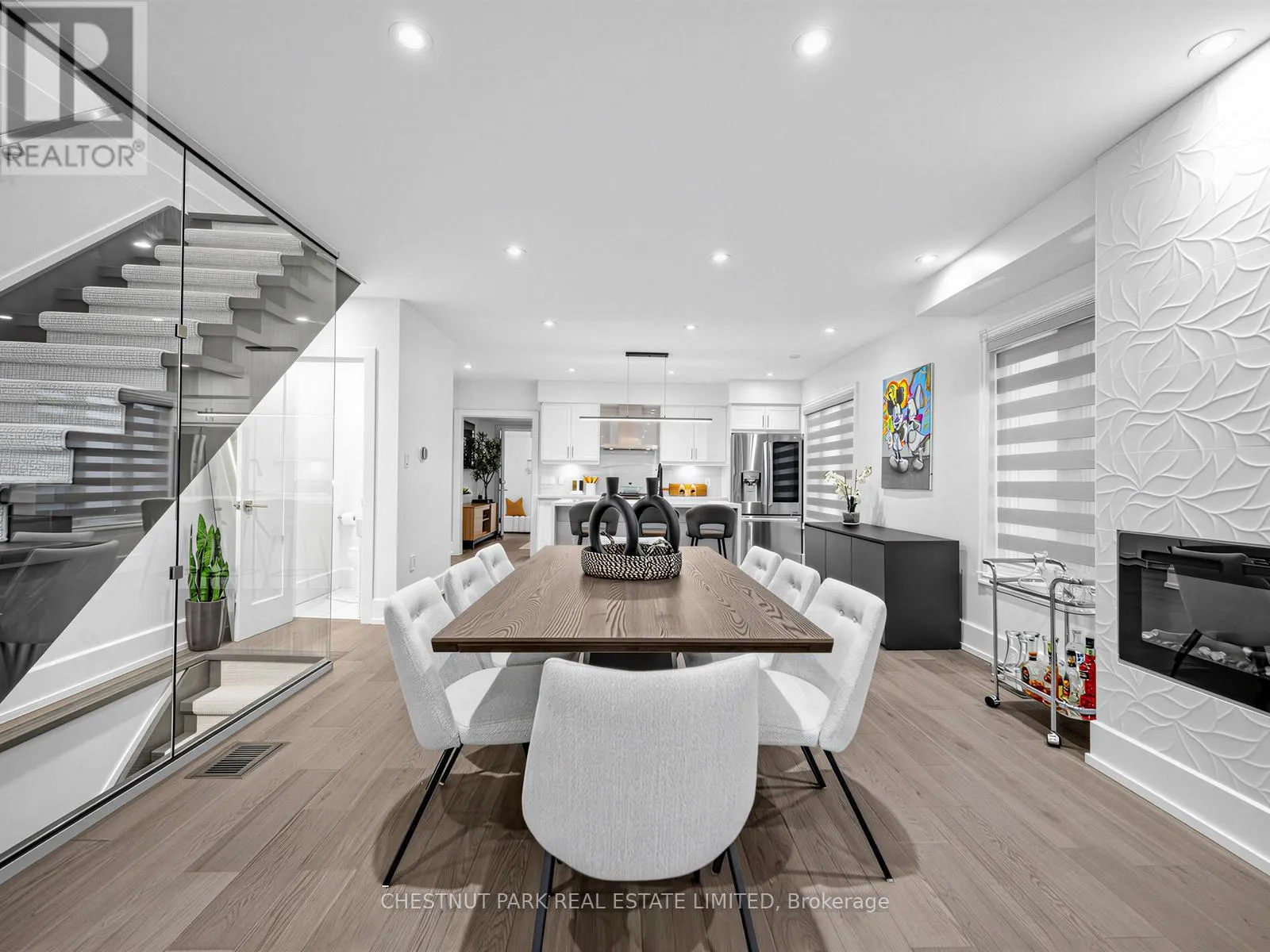 Oakwood/St Clair Oakwood Village at its finest-steps to Humewood-Cedarvale. Fully renovated, move-in ready, and done right. This modern open-concept home delivers clean lines, designer finishes, and exceptional functionality for family living. Engineered oak hardwood floors on the main and upper levels, striking glass railings, and curated lighting set the tone. The chef's kitchen anchors the home with a quartz centre island and premium appliances, flowing seamlessly into open living and dining spaces made for entertaining. Walk out from the family room to a private, oversized backyard, rare for the area and perfect for kids or summer hosting. Upstairs, the primary suite offers a spa-inspired ensuite with a multi-jet shower. The finished lower level adds flexibility with a large rec space and rough-in for a kitchen, ideal for in-laws or future income potential. Loaded with upgrades: central vac on all 3 levels, sump pump with waterproofing, 200-amp service, owned furnace, Ecobee smart system, LED lighting, and heated electric fireplace. Turnkey. Stylish. No compromises. Get in before it's gone. (id:27476)