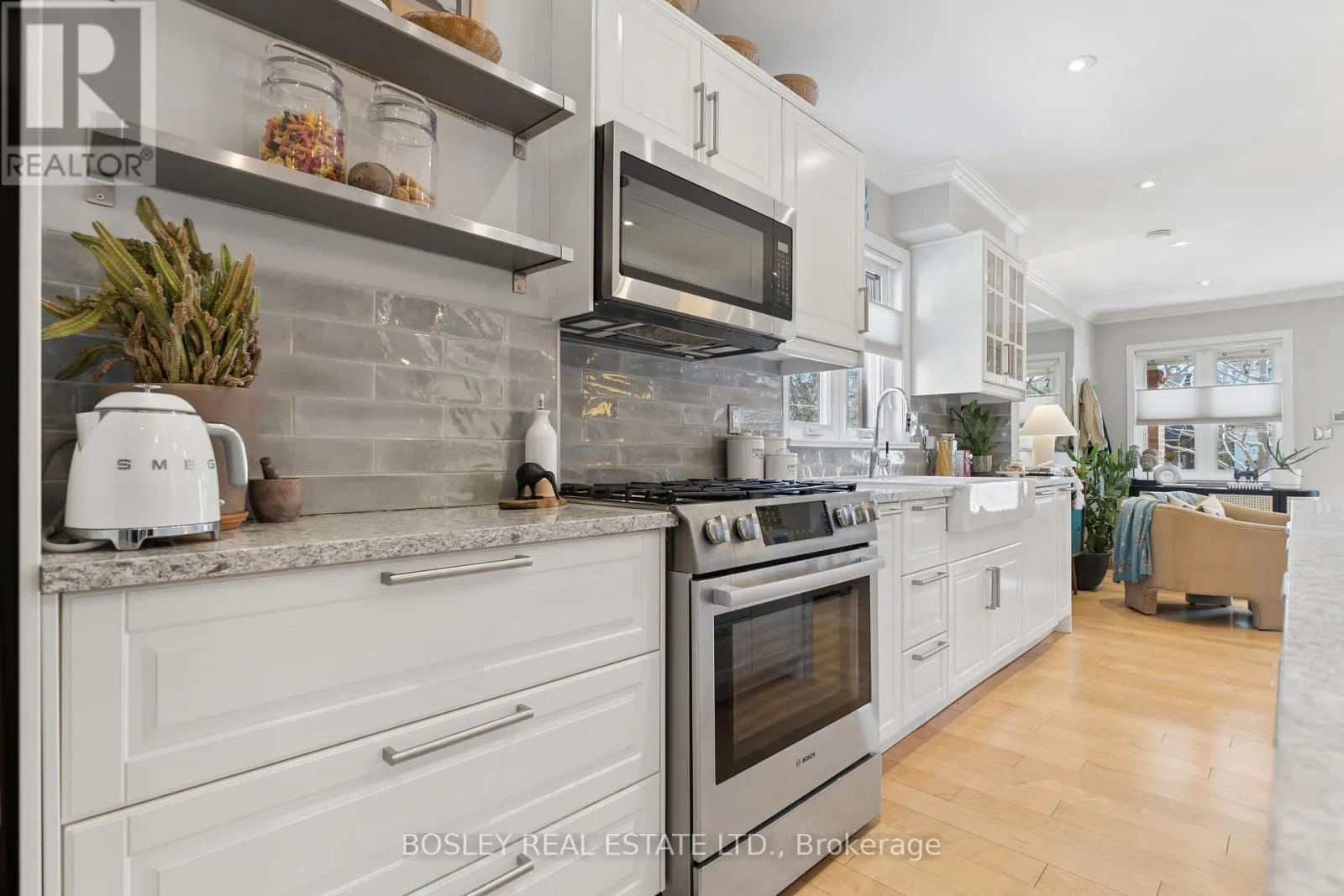 South of Lakeshore and Islington Stunning renovated home featuring a bright and inviting open-concept main floor designed for modern living. Engineered hardwood flooring and elegant crown moulding add warmth and sophistication throughout the main level. The stunning renovated kitchen is a true focal point,showcasing a large centre island, quartz countertops, stainless steel appliances, and is adjacent to the dining area. A newly built deck off the kitchen extends the living space outdoors, perfect for entertaining or relaxing. The home offers two bedrooms and 3 washrooms, including a newly renovated main-floor 3-piece bathroom with a spacious walk-in shower. Upstairs, two bright and comfortable bedrooms provide private retreat spaces filled with natural light.The finished basement features offers excellent flexibility with a rough-in for a kitchen and living area, a 4-piece bathroom, and laundry-ideal for extended family, guests, or potential income opportunities. Outside, enjoy a low-maintenance yard, patio, ample parking, and a large detached double garage. The house has an electric gate beside the deck and in front of the garage. Plus, an electrical outlet installed behind the gate and could be used/adapted to be a charger for an EV charger. This thoughtfully renovated home showcases quality craftsmanship and attention to detail throughout. Ideally located within walking distance to the lake and local shops, this property delivers contemporary style, everyday functionality, and an unbeatable lifestyle location. See list of upgrades attached to listing (id:27476)
