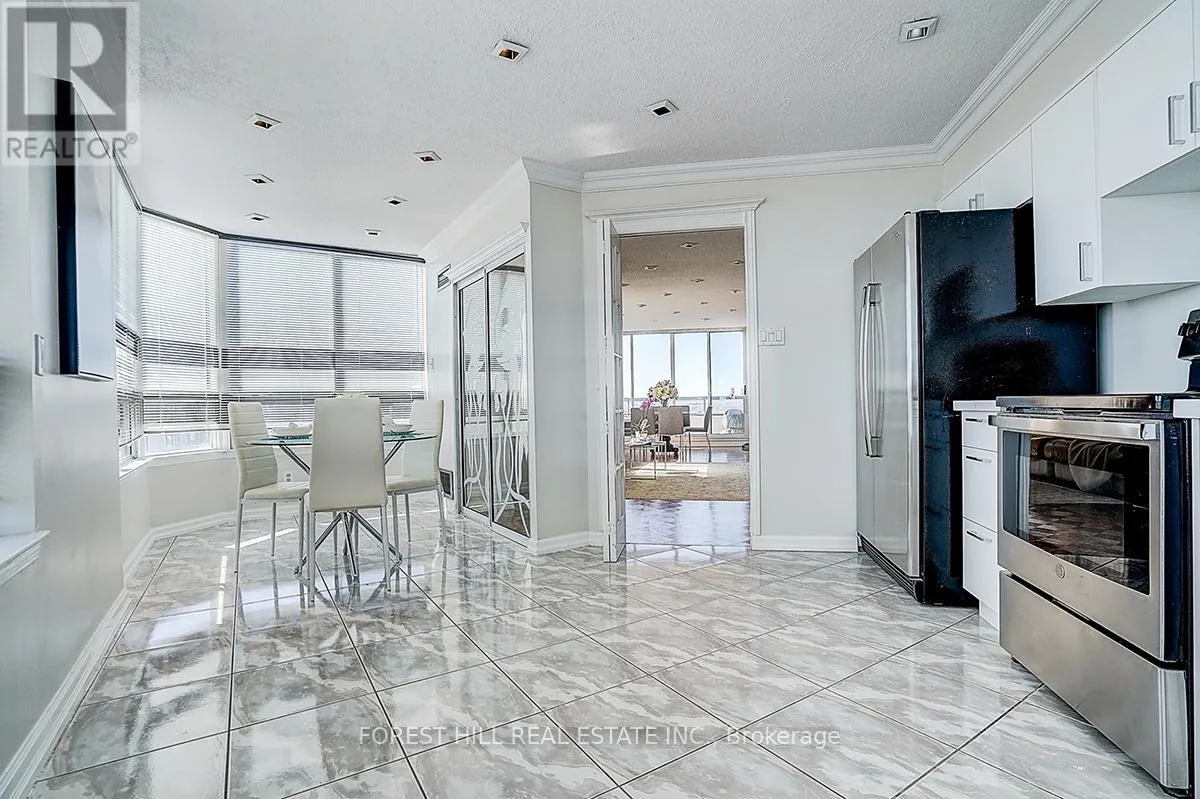 Cross Streets: BATHURST AND STEELES. ** Directions: WEST OF BATHURST AND SOUTH OF STEELES. **Luxury Primrose Condominiums - Spacious & Bright Penthouse Living** Welcome to this stunning 2-bedroom, 2-bathroom Penthouse offering approximately 1,400 sq ft of beautifully designed living space in the highly sought-after *Primrose Condominiums*. This sun-filled suite features **expansive living and dining areas**, perfect for entertaining, with a walk-out to a private balcony. The **spacious upgraded kitchen** includes a large breakfast area-easily convertible into a Solarium as per the original floor plan. The **generous primary bedroom** offers double closets and a private 4-pc ensuite bathroom. A well-sized **2nd bedroom** provides excellent flexibility-ideal as a bedroom, guest room, or home office. Enjoy the convenience of **2 tandem underground parking spaces and 1 locker**, along with access to **beautifully maintained grounds**. Unbeatable Location! Steps to Bathurst & Steeles plazas. Easy access to public transit. Direct bus routes to Finch Subway and Steeles West Subway. Exceptional Building Amenities Include: 24-hour Gatehouse security, Outdoor pool, Gazebo & Tennis courts, Exercise room, Squash/racquetball court, Indoor Whirlpool & Saunas, Library/billiards room, Party & conference room, Upgraded lobby & elevators ** All-Inclusive Maintenance Fees: ** Heat, Hydro, Water, Central air, Cable, and Internet are all included for worry-free living. **Vacant and move-in ready** (id:27476)