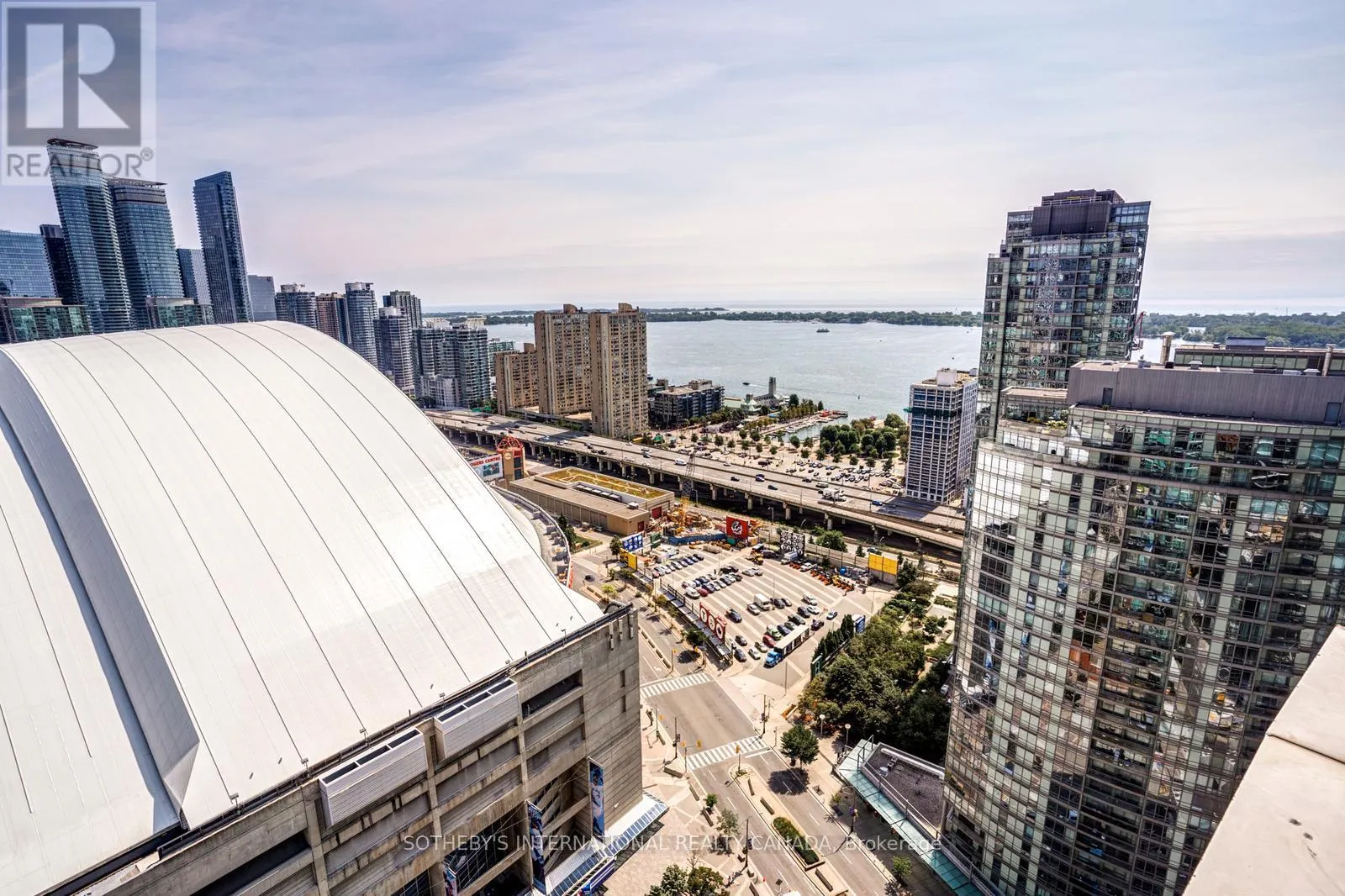 Cross Streets: Spadina and Bremner. ** Directions: Follow your GPS. Stunning Unit where the views are not duplicated. Not stock, fully renovated with highest quaility finishes. Chefs kitchen, luxury finishes throughout, priate seperte entrance with 2 Fob security (only 3 units with this), 2 parking spots. No expenses spared on this entertainers dream, watch the Blue Jays and concerts from your balcony, see clear across the lake while watching the city lights reflect the stunning CN Tower, minutes to downtonw, hotels, quality facilities, gym, guest suite, theatre room, X-high ceilings. This unit is an absolute must view as has the ultimate "WOW FACTOR" and is truly one of a kind! (id:27476)