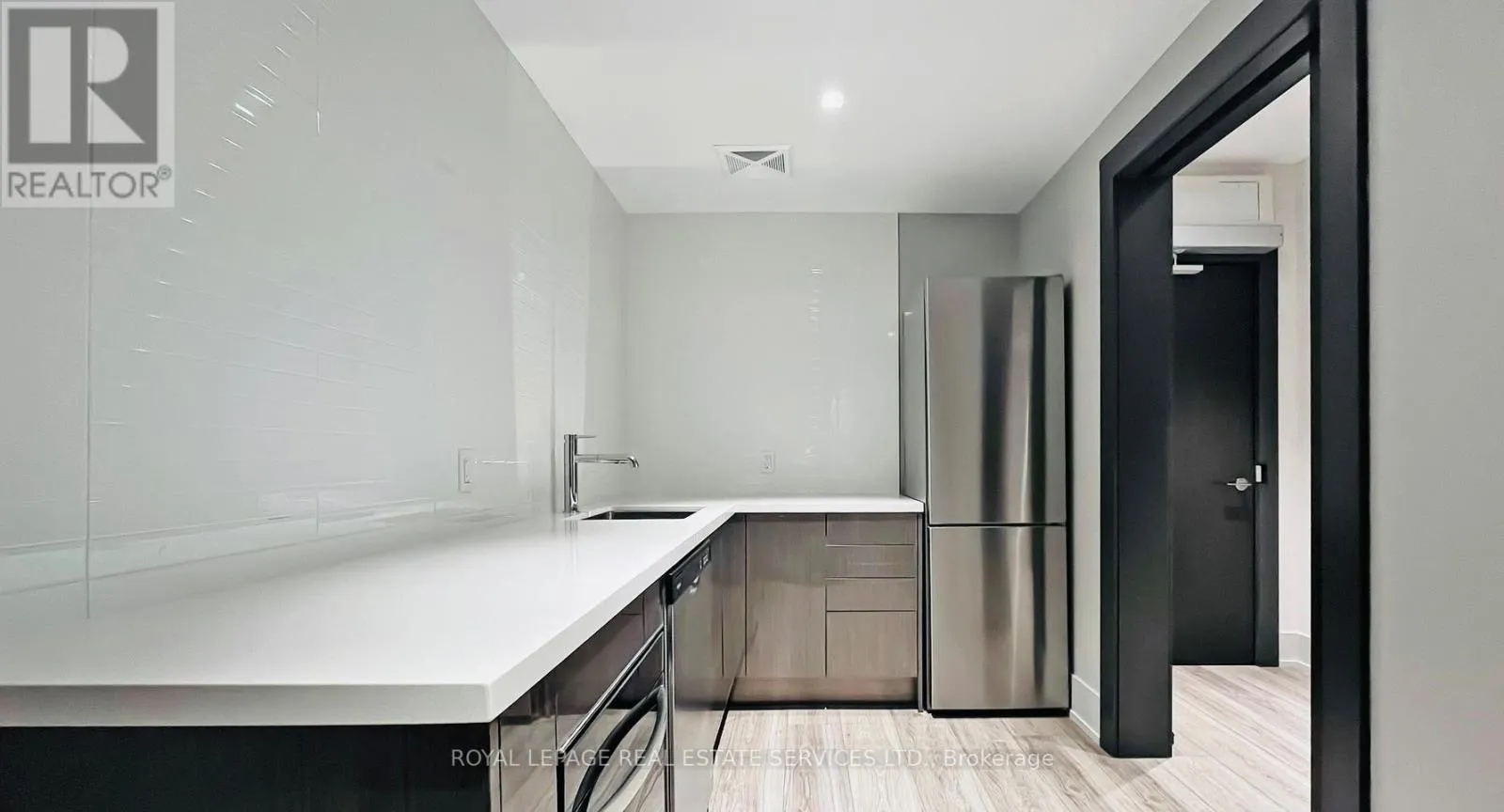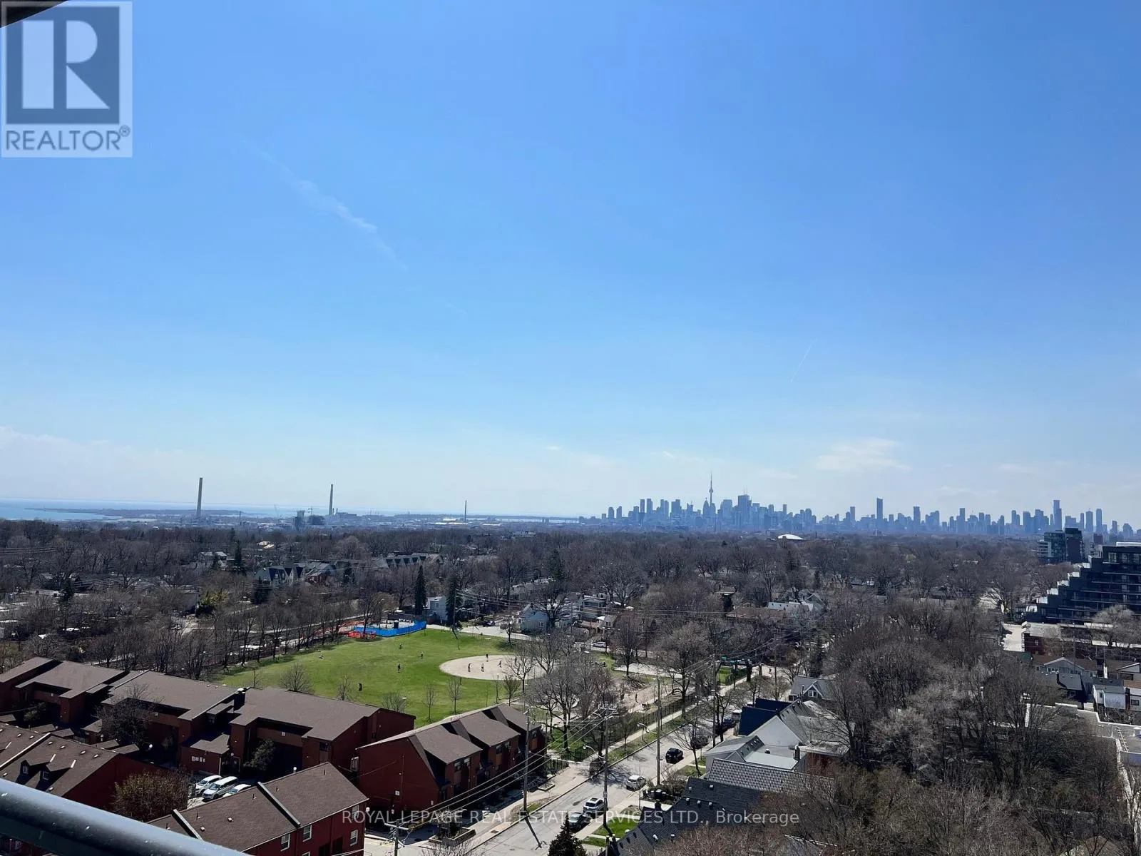 Cross Streets: Main St & Danforth Rd. ** Directions: Main Street / Danforth. What a lovely place to live. A bright condo with a beautiful panoramic view of the City and Lake. Light neutral floors throughout. Large den with door could be a second bedroom. Beautiful kitchen with built-in fridge and dishwasher, stainless steel cook top, oven and microwave, penny tile backsplash, dine at your handy island, complete with quartz countertops. Enjoy City views from your large sun-filled bedroom window. Double closet for more storage. Impressive building amenities include a well equipped gym, a party room, a bar room, a board game room, a play room and a concierge. Amazing walk score of 98 within close proximity to shopping, lcbo, shops and restaurants, two subway stations and the Danforth GO Train. Available May 15, 2026 for a one year lease to non smokers without pets. (id:27476)
