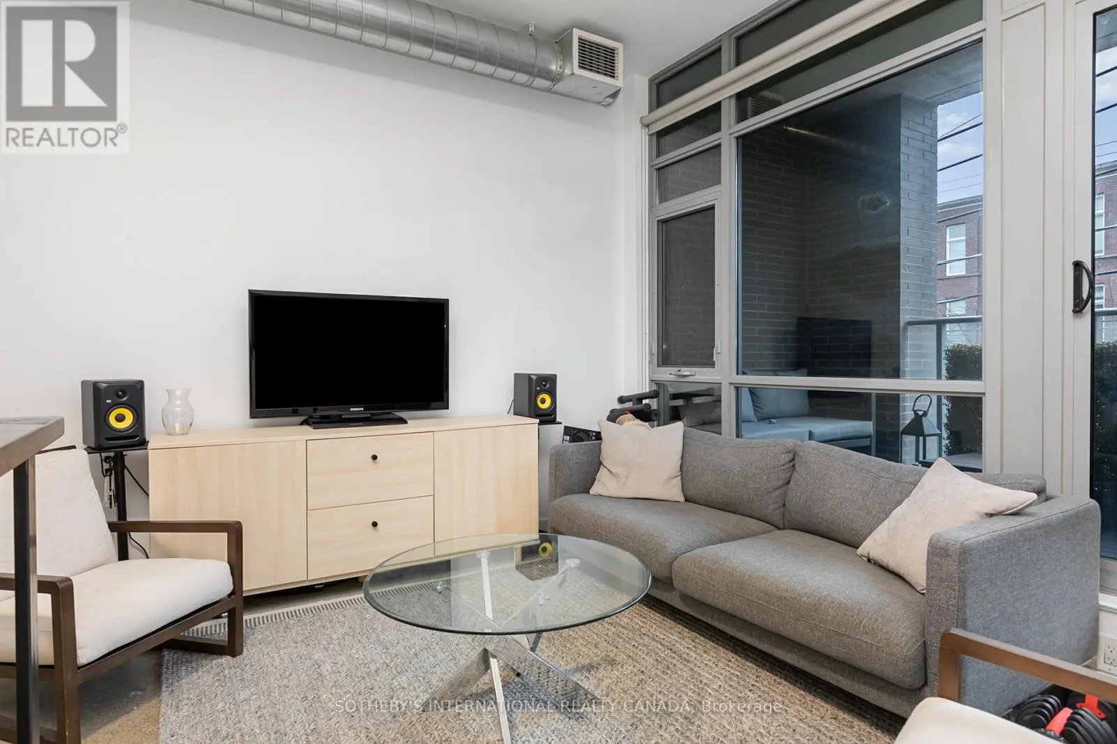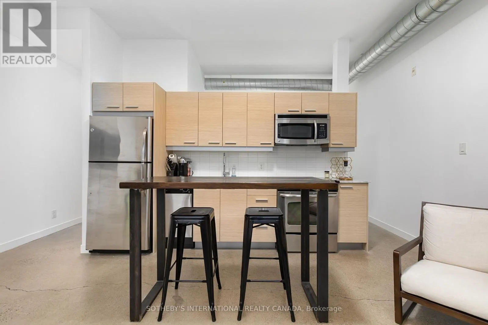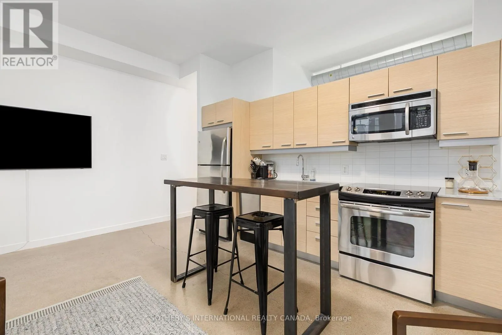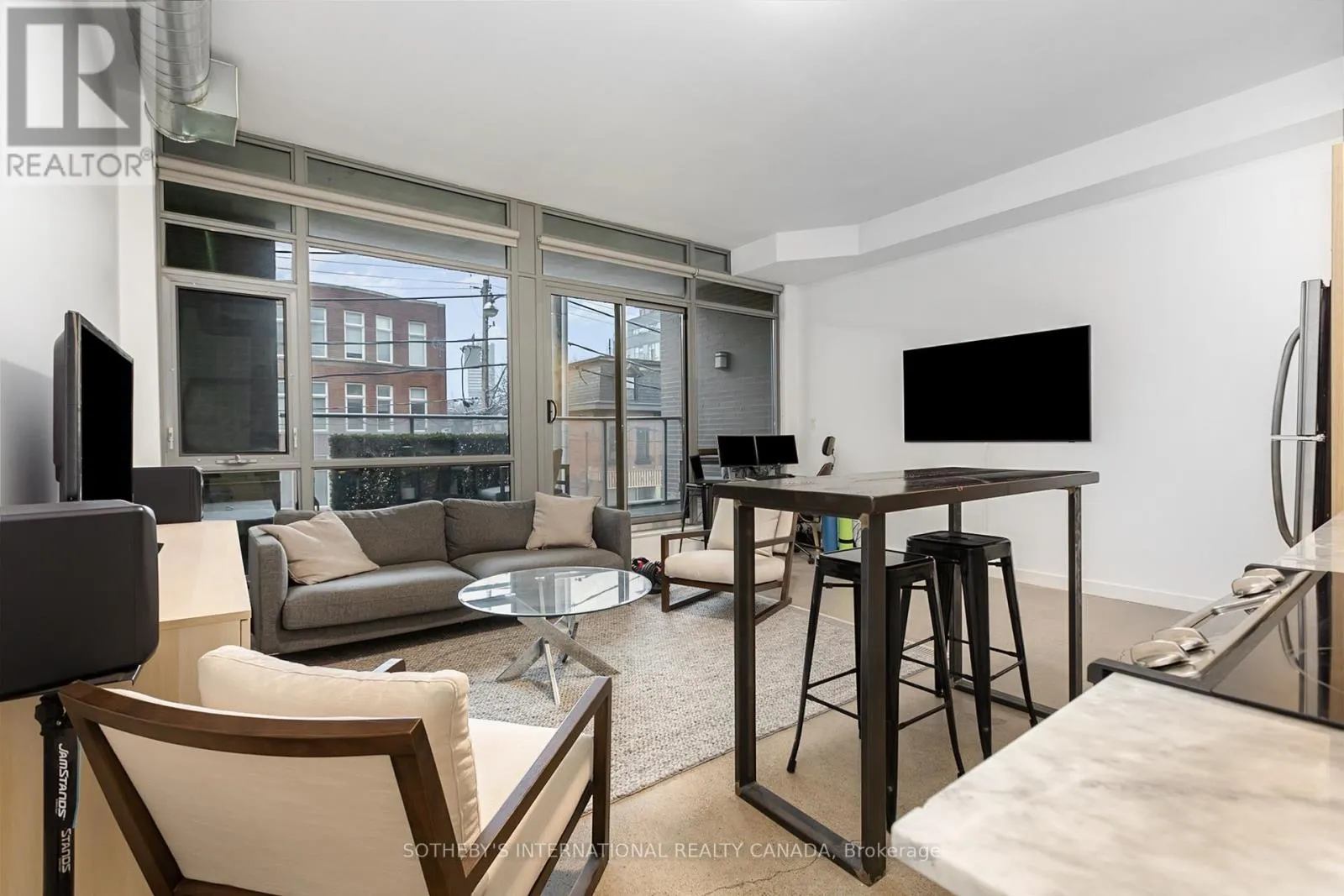 King Street E & Sumach Discover this bright and beautifully appointed one-bedroom condo in Toronto's vibrant Corktown community. Tucked within an intimate six-storey boutique residence at King & Sumach, this spacious suite offers approximately 631 sq. ft. of interior living space, complemented by an oversized 107 sq. ft. private terrace, perfect for relaxing or entertaining outdoors. Inside, rare 10-foot ceilings, exposed ductwork, polished concrete floors, and wall-to-wall, floor-to-ceiling windows create a striking urban aesthetic while filling the space with natural light. The open-concept layout seamlessly connects the modern kitchen, living, and dining areas, offering an inviting setting for both everyday living and hosting. The generously sized bedroom features a walk-in closet for added comfort and convenience. Just minutes from downtown and only a few stops to the Financial District, this location places you close to Riverside, Leslieville, the Canary District, and the Distillery District. Residents also enjoy access to the amenities of the neighbouring Corktown II building, including a fitness centre, party room, and visitor parking. With the King streetcar at your doorstep and easy access to the DVP, Gardiner Expressway, and Union Station, commuting is effortless. A stylish blend of boutique charm and modern urban living in one of the city's most connected east-end neighbourhoods. (id:27476)