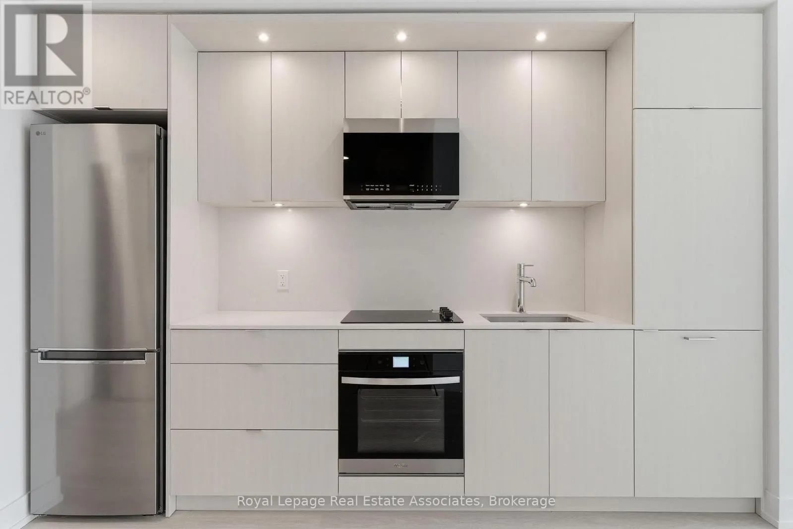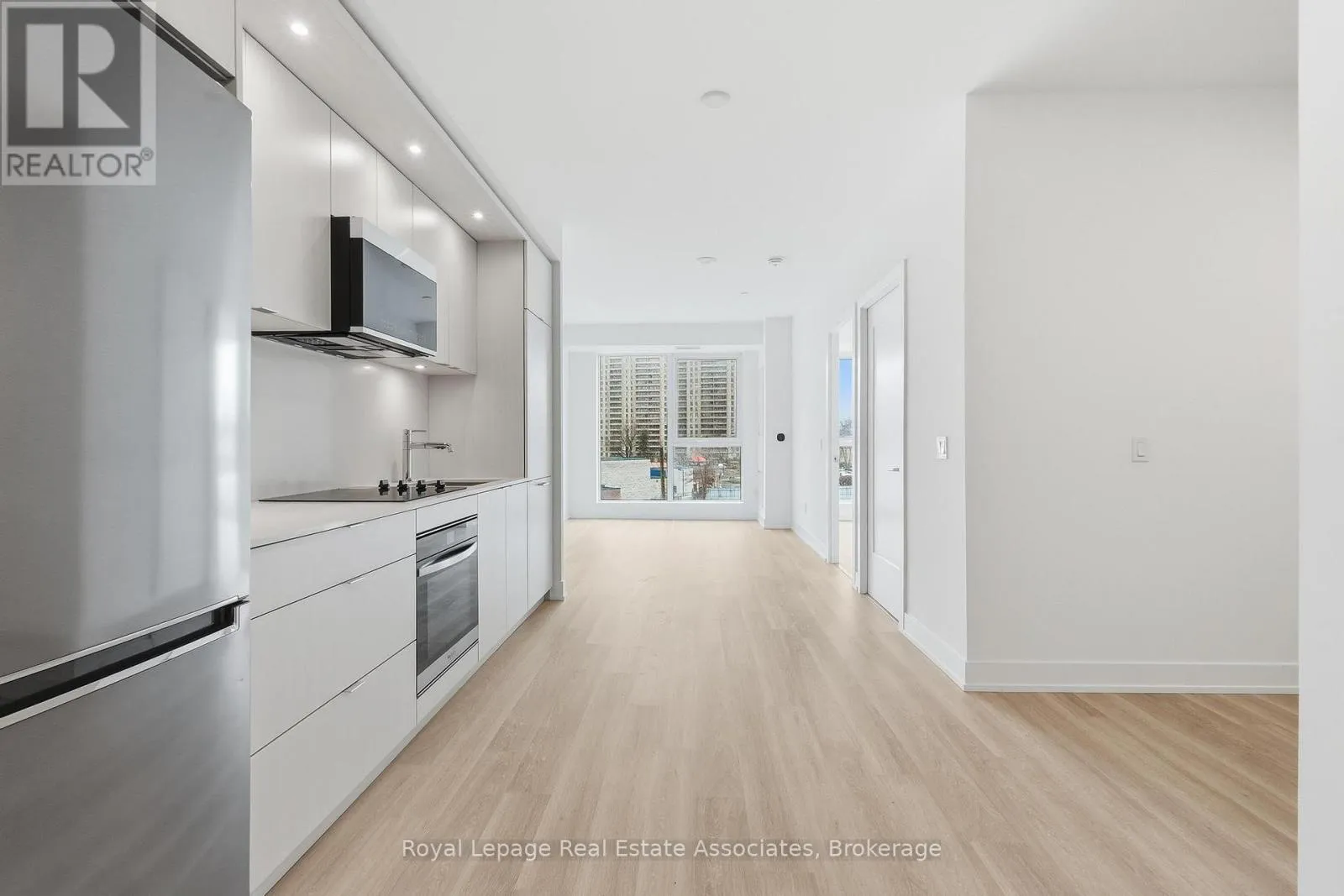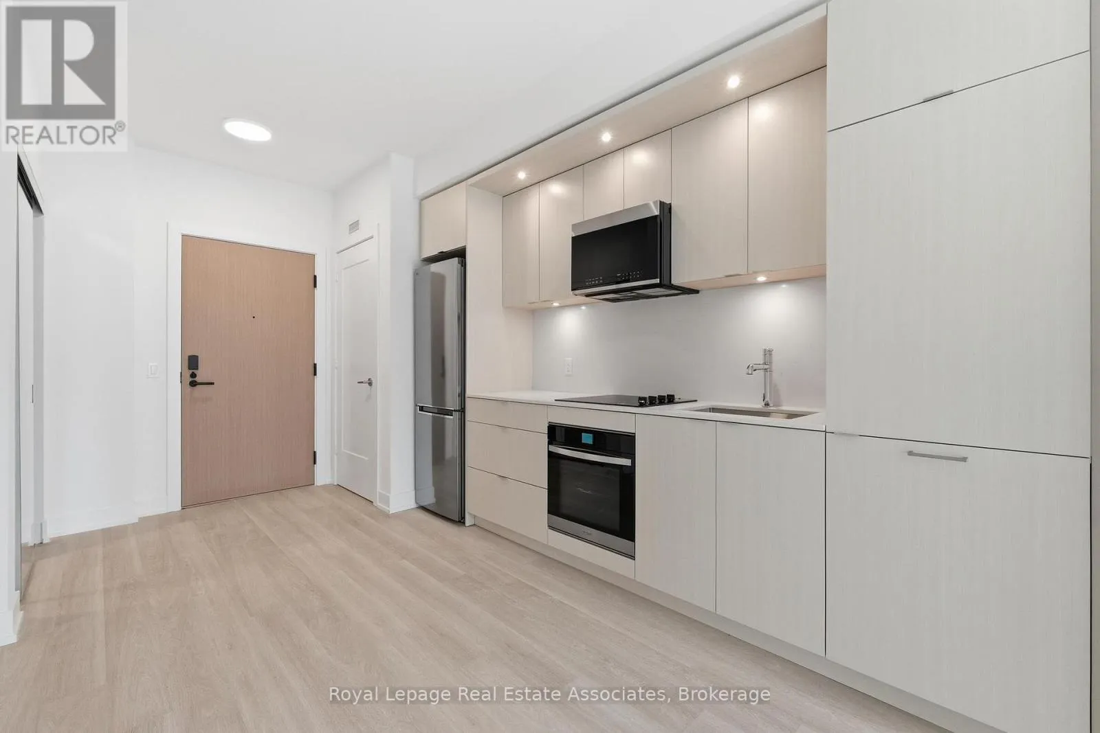 Bloor & Islington *** WITH PARKING *** Welcome to Westerly 1 at 25 Cordova Avenue, where contemporary design meets everyday convenience in the heart of Islington-City Centre West. This brand-new 1-bedroom plus den suite offers 640 sq. ft. of thoughtfully designed interior space, featuring a bright, carpet-free layout and modern finishes throughout, complete with an exclusive parking space for added convenience. The modern kitchen features built-in stainless steel appliances and sleek cabinetry, flowing seamlessly into the combined dining and living area. Floor-to-ceiling windows enhance natural light throughout the open-concept living space, creating an inviting setting for both everyday living and entertaining. The bedroom offers a comfortable layout with a large closet and floor-to-ceiling window, while the separate den provides flexible space well suited for a home office or additional living area. A contemporary 4-piece bathroom is finished with clean tilework and modern fixtures. In-suite laundry is conveniently located in a dedicated closet, maintaining an efficient and functional layout. Residents enjoy access to amenities including a fitness centre, guest suites, party and meeting rooms, and concierge service. Ideally located steps from Islington Station, parks, grocery stores, cafés, and everyday conveniences, this suite offers comfortable, well-connected urban living in a desirable Etobicoke community. (id:27476)