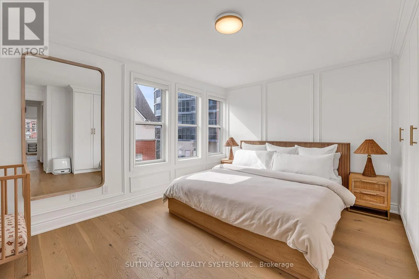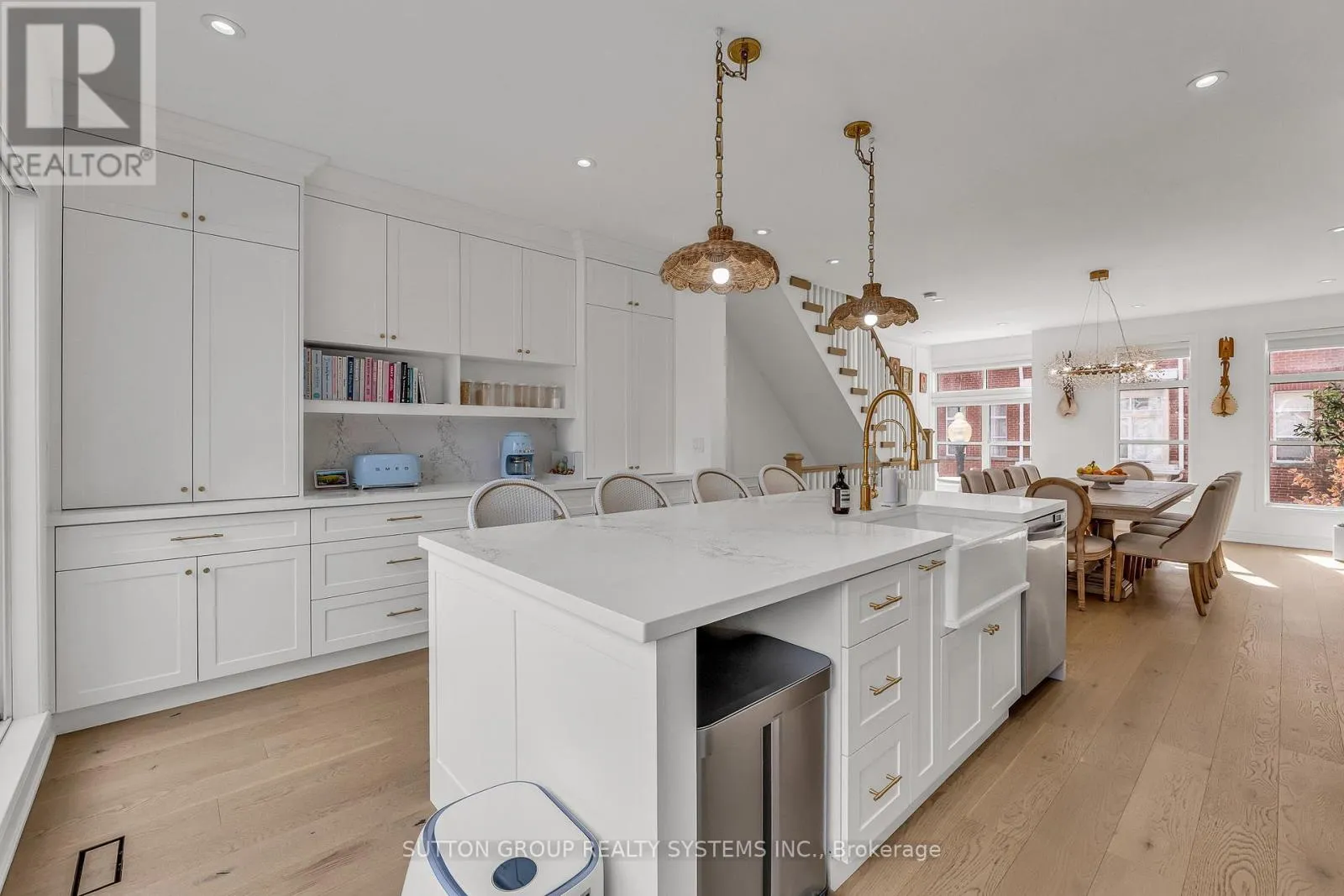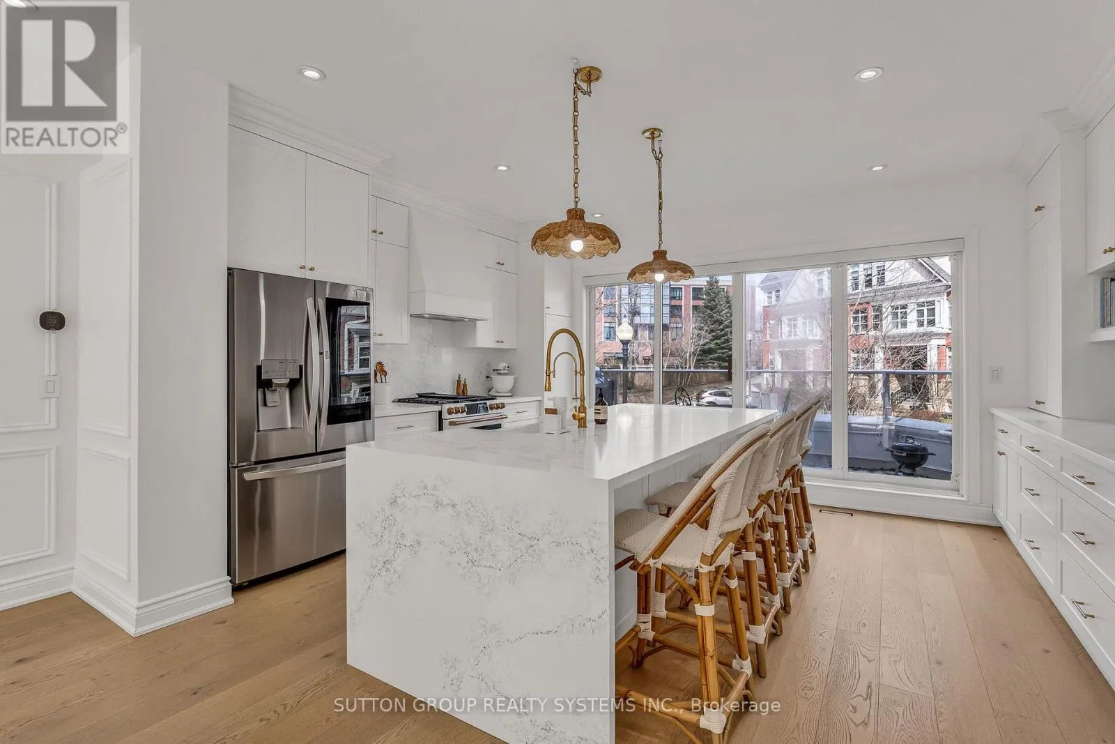 Bloor & Resurrection Rd WOW!! Your Search Ends Here! Prepare to be utterly captivated the moment you cross the threshold of this rarely offered executive townhome - a breathtaking masterpiece of professional design and a flawless top-to-bottom renovation executed with only the finest, highest-end materials and finishes. Every detail whispers sophistication, from the exquisite custom craftsmanship to the impeccable, elevated aesthetic that redefines luxury living. This exceptional 2-bedroom, 2-bathroom residence spans an impressive 1820 sq ft of meticulously curated space, backing directly onto a serene, tree-lined courtyard for rare privacy and lush green vistas in the heart of prestigious Islington Village-Etobicoke's most enviable enclave. The jaw-dropping, high-end custom-built kitchen is the undisputed centerpiece: an oversized 9 ft 4 ft island commands attention, crowned with dramatic quartz waterfall countertops and matching backsplash flowing into bespoke cabinetry. A striking custom range hood anchors the space, paired with a luxurious apron sink, stunning designer island pendants, premium high-end stainless steel appliances including a coveted gas range, and seamless walk-out to a generous balcony with gas hookup-ideal for effortless al fresco entertaining. Wide-plank hardwood floors grace the entire home (including beneath the living room carpet), infusing warmth and enduring elegance throughout. Architectural drama unfolds with jaw-dropping custom wall moldings adorning every room, while the living room boasts a stunning custom media center framing a cozy gas fireplace as the perfect focal point. Ascend the elegant new stairs to the upper level, where refined indulgence awaits: the luxurious primary bathroom is a true retreat, clad in opulent marble tiles, featuring his-and-hers sinks, exquisite high-end faucets, and spa-like finishes. Both bedrooms offer bespoke custom built-in closets for effortless organization and style. (id:27476)