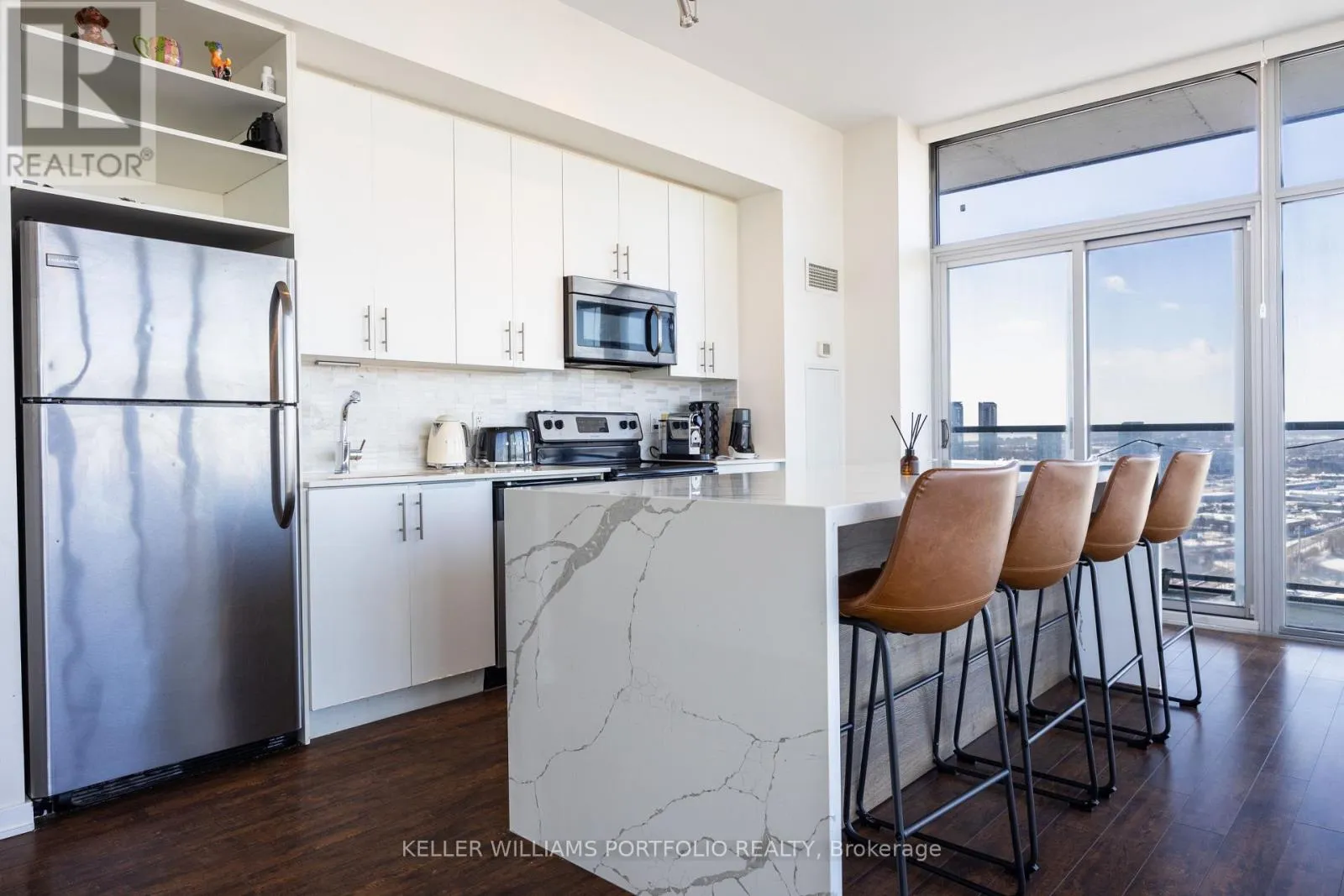 Lakeshore & Windermere Welcome to NXT II, where condo living meets true lifestyle in one of Toronto's most desirable west-end waterfront communities. Suite 3410 is a high-floor, northwest-facing corner unit offering exceptional natural light, functional space, and elevated views of High Park and the surrounding urban landscape. With nearly 900 sq. ft. of thoughtfully designed living space, this suite features two true bedrooms, two full bathrooms, floor-to-ceiling windows, and a split-bedroom layout ideal for real life - perfect for families, professionals, or work-from-home flexibility.The open-concept living, dining, and kitchen area is framed by expansive windows, creating a bright, airy feel throughout the day. The kitchen flows seamlessly into the living space, ideal for both daily living and entertaining. The private balcony extends the living area outdoors, offering a peaceful retreat above the city. Step out onto the balcony and, to your left, enjoy breathtaking, unobstructed views of the lake and waterfront - a rare and valuable perspective that elevates this high-floor corner suite.Located in High Park-Swansea, you are steps to the Martin Goodman Trail, Sunnyside Beach, and waterfront parks, making outdoor living part of everyday life. High Park is minutes away, while Roncesvalles, Bloor West Village, and The Junction offer cafés, restaurants, boutiques, and local amenities. Quick access to the Gardiner, Lake Shore, and TTC provides seamless connectivity to downtown and beyond.Residents of NXT II enjoy resort-style amenities including indoor and outdoor pools, fitness centre, tennis court, party and media rooms, guest suites, 24-hour concierge, and well-maintained common areas. Parking and locker included. Suite 3410 offers space, light, views, and lifestyle in a highly sought-after waterfront community at 105 The Queensway. (id:27476)
