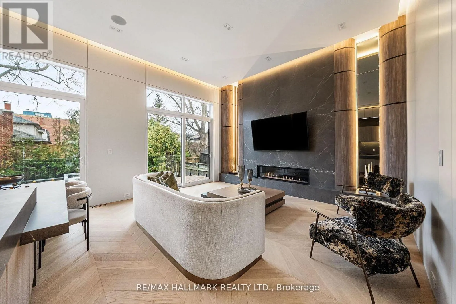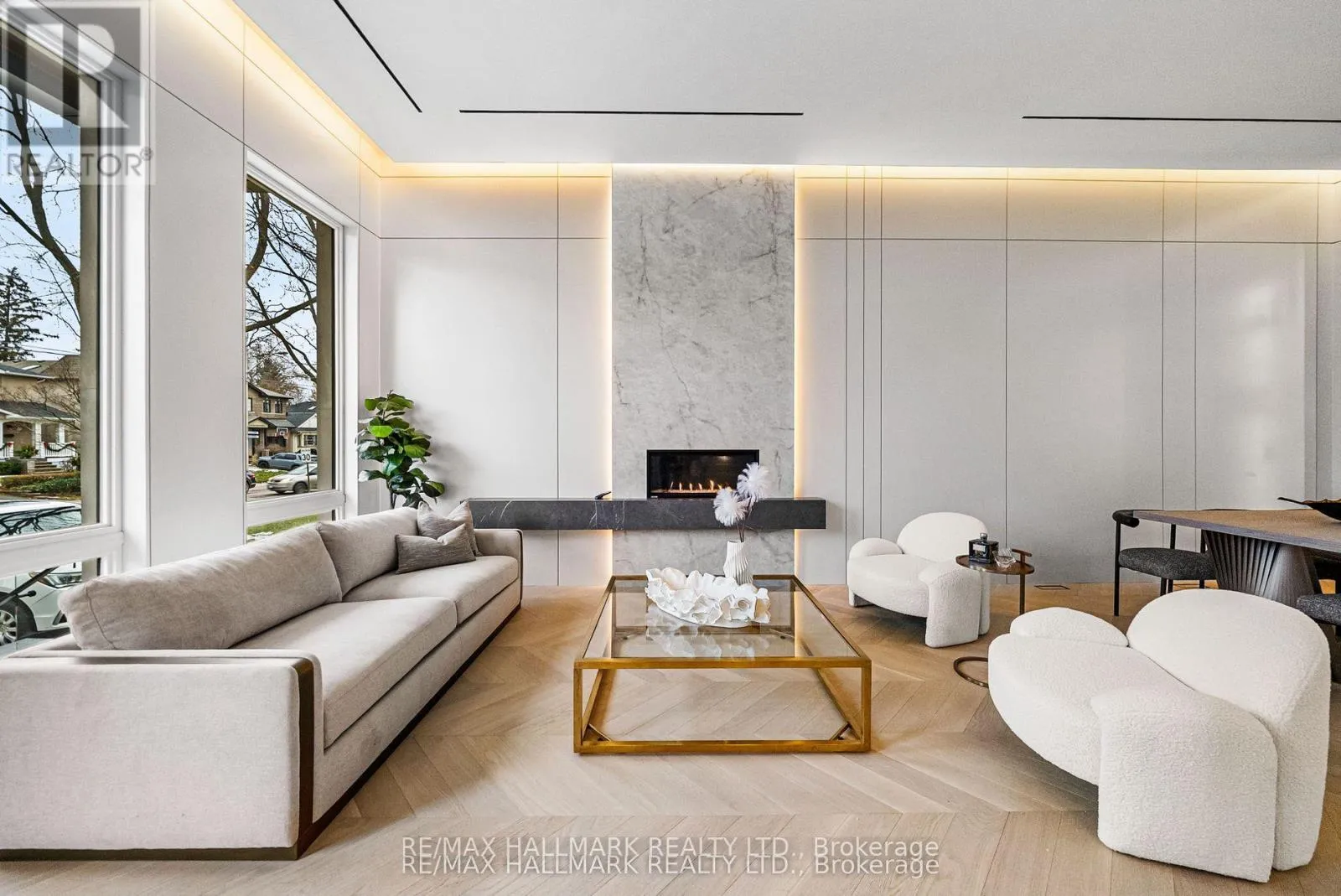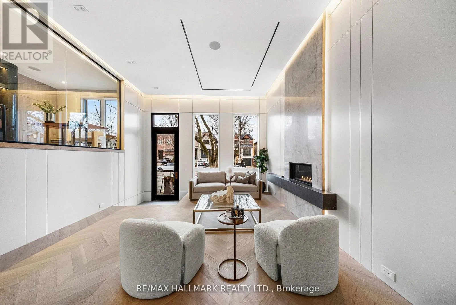 Eglinton Ave E & Laird Dr This exceptional custom-built residence offers luxurious living space, thoughtfully designed to blend timeless elegance with modern convenience, and ideally located in sought-after South Leaside. Step inside to soaring 13-foot ceilings on the main floor and expansive floor-to-ceiling windows that flood the home with natural light. White oak flooring throughout and matching white oak stairs create a warm, contemporary aesthetic, complemented by designer wood paneling, custom millwork, and cabinetry with integrated lighting. The open-concept main level is ideal for everyday living and entertaining, featuring a walkout to the backyard and a chef-inspired kitchen with premium built-in appliances, sleek finishes, and ample storage. A custom stone sitting area with fireplace adds warmth and character, while over 50 custom exterior light fixtures enhance the home's striking presence. Enjoy year-round comfort with a full radiant heated driveway, front steps, and porch, built-in speakers throughout, limestone, and a Control4 smart home system for integrated lighting and audio. The second floor offers four spacious bedrooms, each with direct bathroom access. The primary suite is a private retreat with a luxurious 8-piece ensuite with heated flooring. Laundry on two levels adds everyday convenience. Also equipped with 2 furnace rooms with 2 steam humidifiers. The fully finished walk-out basement with a separate entrance features radiant heated floors throughout , a full kitchen, a media room with built-in speakers, and three additional bedrooms, including an ideal nanny or in-law suite. This home offers approximately 4,500 sq. ft. of living space! Located near Leaside High School and Northlea Elementary & Middle School, as well as parks, shops, and transit, this rare offering combines superior craftsmanship, thoughtful design, and an exceptional location-truly the perfect place to call home. (id:27476)